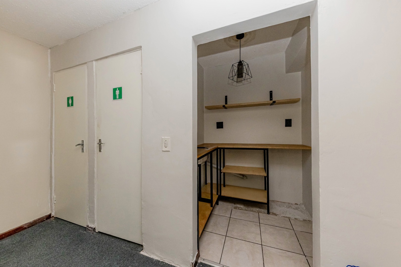 To enhance daily convenience, the property is equipped with separate male and female restrooms, catering to both staff and visitor needs. These facilities are thoughtfully maintained to ensure a clean and pleasant experience for all users. Additionally, a well-appointed kitchenette is available, offering a convenient space for employees to prepare meals, store refreshments, and enjoy their breaks in a comfortable setting.