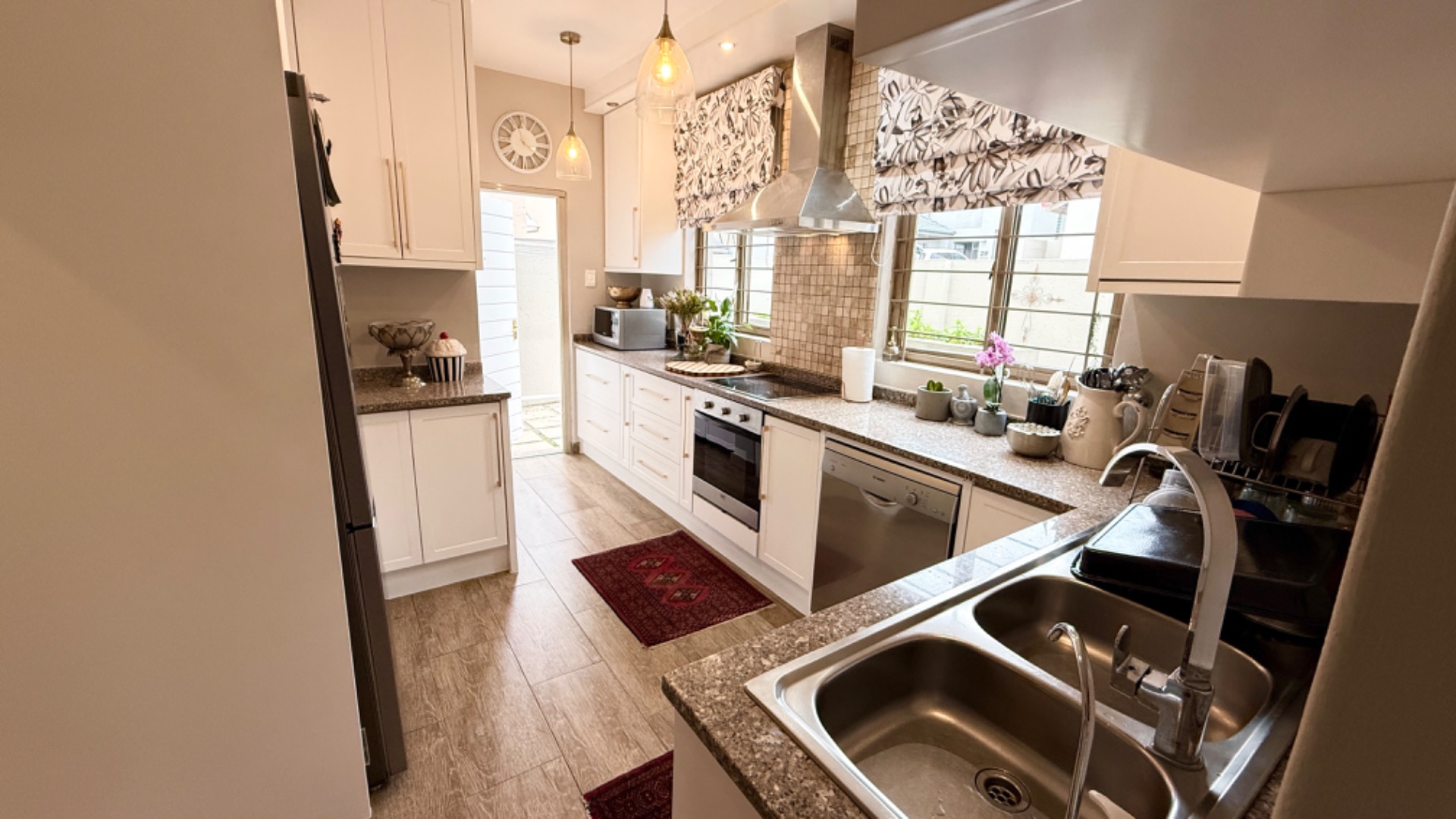 Set on a substantial 490 sqm erf, the outdoor lifestyle is further enhanced by a built-in braai, ideal for hosting gatherings. Security is paramount within this esteemed security complex, featuring 24-hour security, CCTV surveillance, and an intercom system, providing residents with unparalleled peace of mind. This residence is a sanctuary of style, comfort, and secure living.