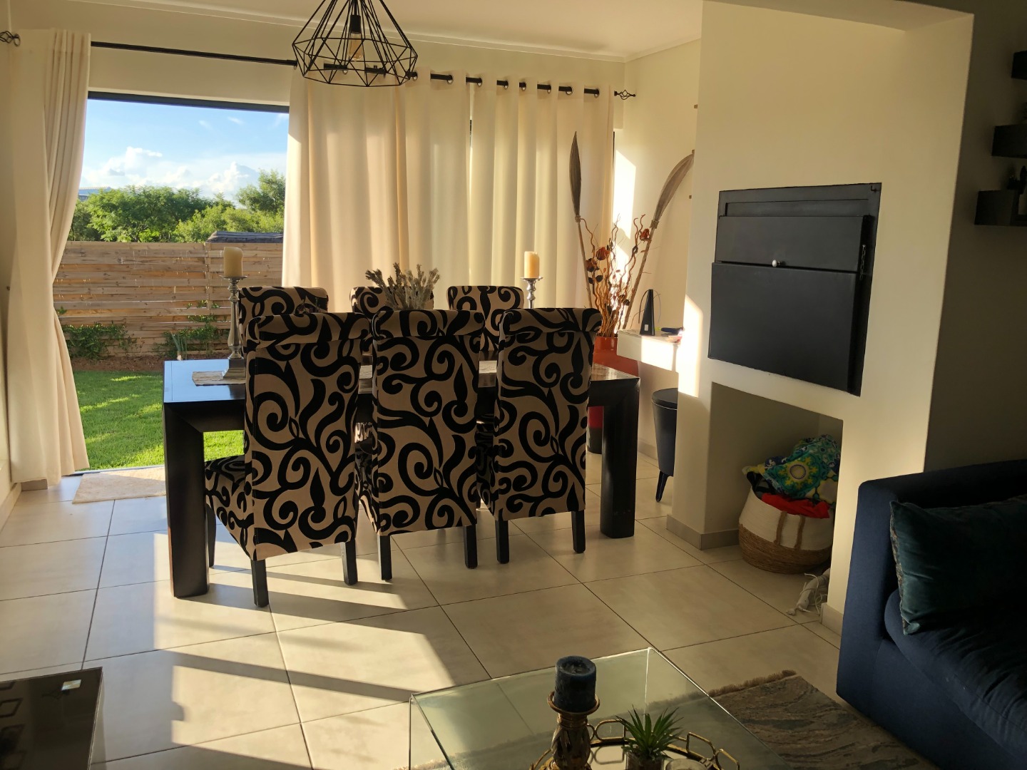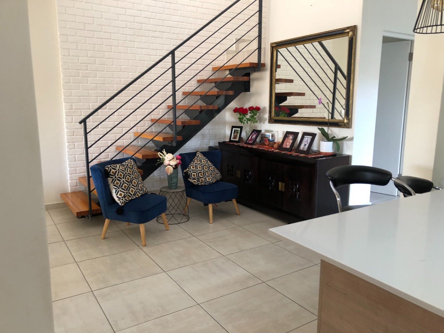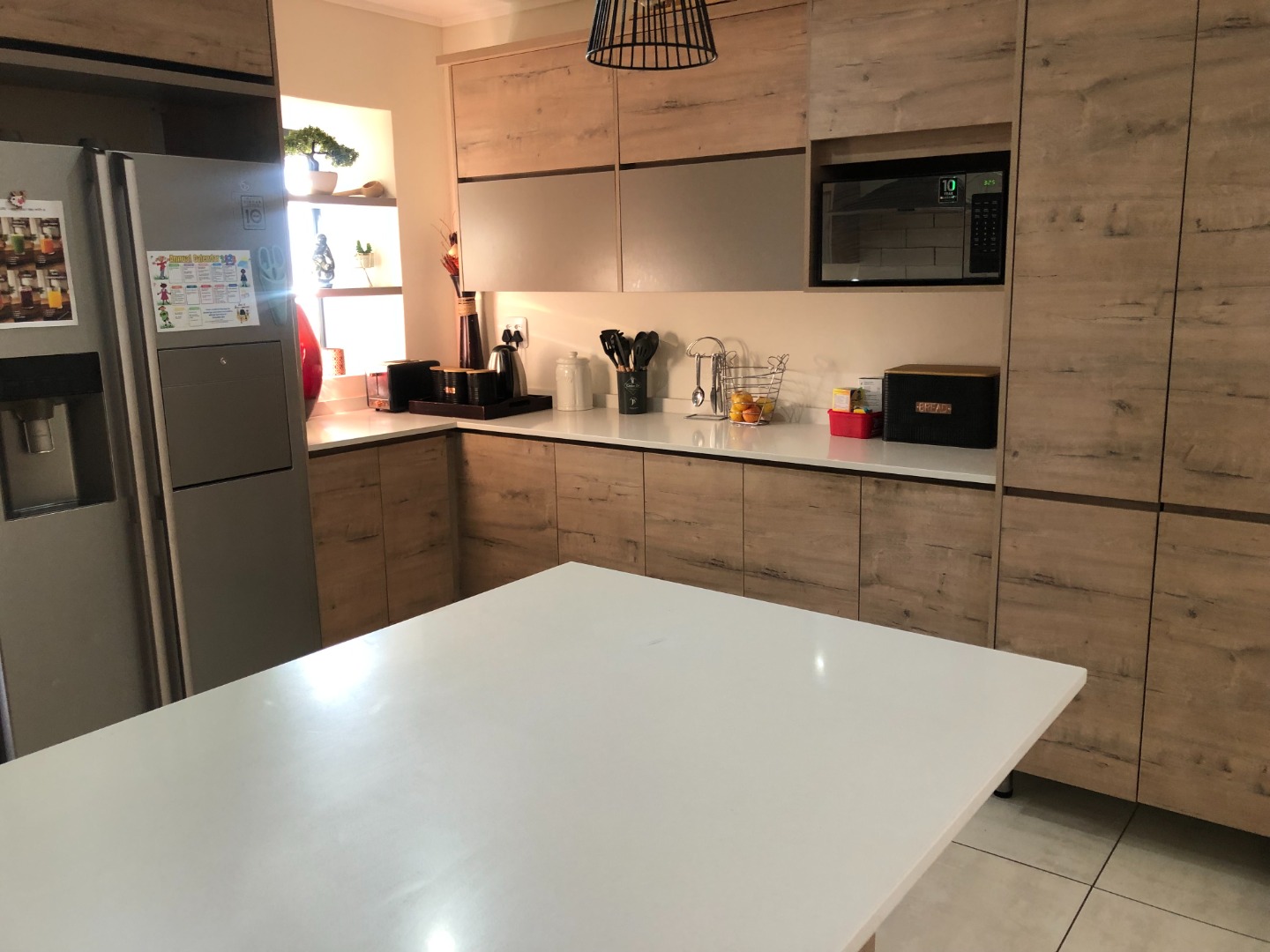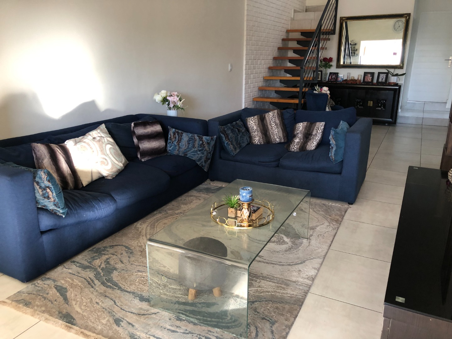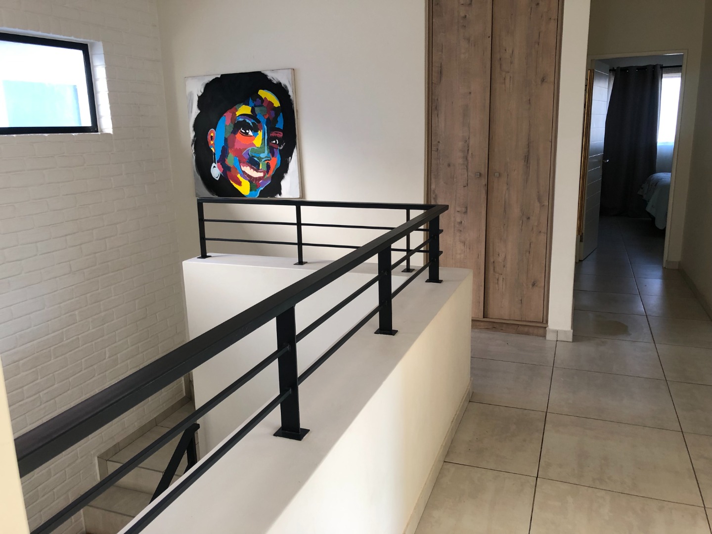Upstairs, four well-proportioned bedrooms await, including a master bedroom with its own en-suite bathroom. A second family bathroom serves the remaining bedrooms, ensuring convenience for all residents. The property benefits from comprehensive security features, including 24-hour security, an access gate, security post, intercom, burglar bars, and security gates, offering peace of mind. Pets are also welcome, making this a truly family-friendly environment.
