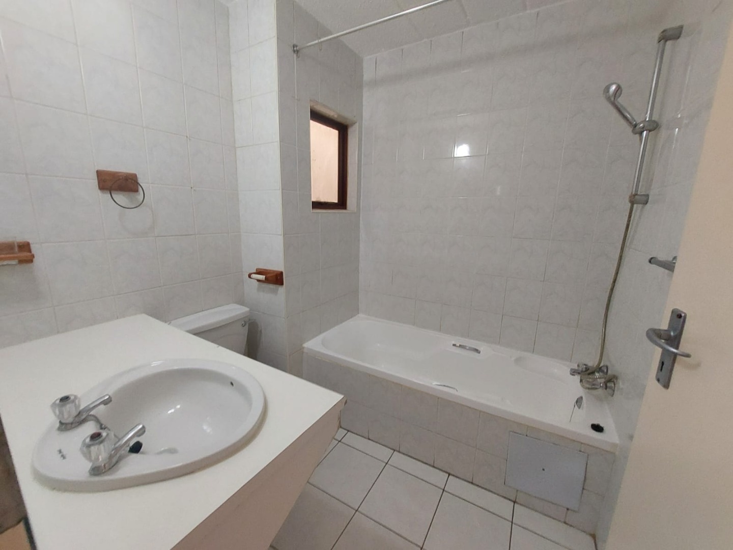 Bathroom with shower over the bath.