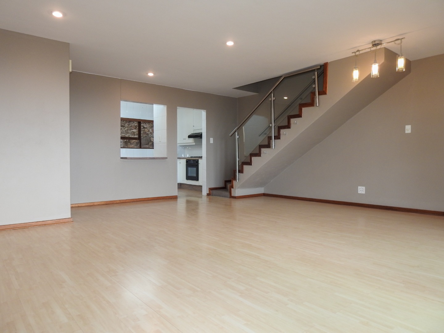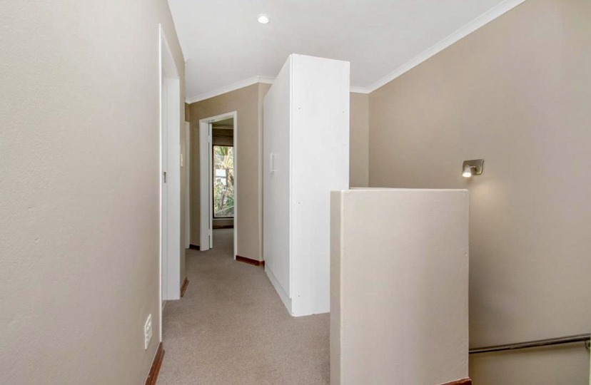 This contemporary multi-story residence, nestled within a sought-after complex in Northcliff, Randburg, South Africa, offers a sophisticated living experience. The property boasts an attractive neutral-toned exterior with multiple balconies and an integrated double garage, providing parking for two vehicles. A securely gated entrance, adorned with lush greenery and a decorative stone fountain, creates a welcoming first impression. Inside, discover a spacious 180 sqm floor plan featuring an open-plan living area with light laminate flooring and neutral walls, illuminated by modern recessed lighting. A striking staircase with a glass railing adds a contemporary touch. The bright lounge area offers abundant natural light and direct balcony access. The functional kitchen, complete with white built-in cabinets, a tiled backsplash, built-in oven, hob, and extractor fan, connects seamlessly to the living space. The home comprises three comfortable bedrooms and two well-appointed bathrooms, including a private ensuite. A guest toilet is also available. Enjoy the outdoor lifestyle with multiple balconies and a covered patio featuring a built-in braai, ideal for entertaining. From these vantage points, residents can savour breathtaking panoramic scenic views of the sprawling city and distant hills. Security is paramount, with an alarm system, electric fencing, and 24-hour complex security ensuring peace of mind. The property is also fibre-ready, offering high-speed internet connectivity. Key Features: * 3 Bedrooms, 2 Bathrooms (1 Ensuite) * 1 Lounge, 1 Kitchen, 1 Guest Toilet * 180 sqm Floor Size * Integrated Double Garage (2 parking spaces) * Multiple Balconies with Scenic Views * Covered Patio with Built-in Braai * Modern Open-Plan Living * Fibre Ready * Alarm System & Electric Fencing * 24-Hour Complex Security
