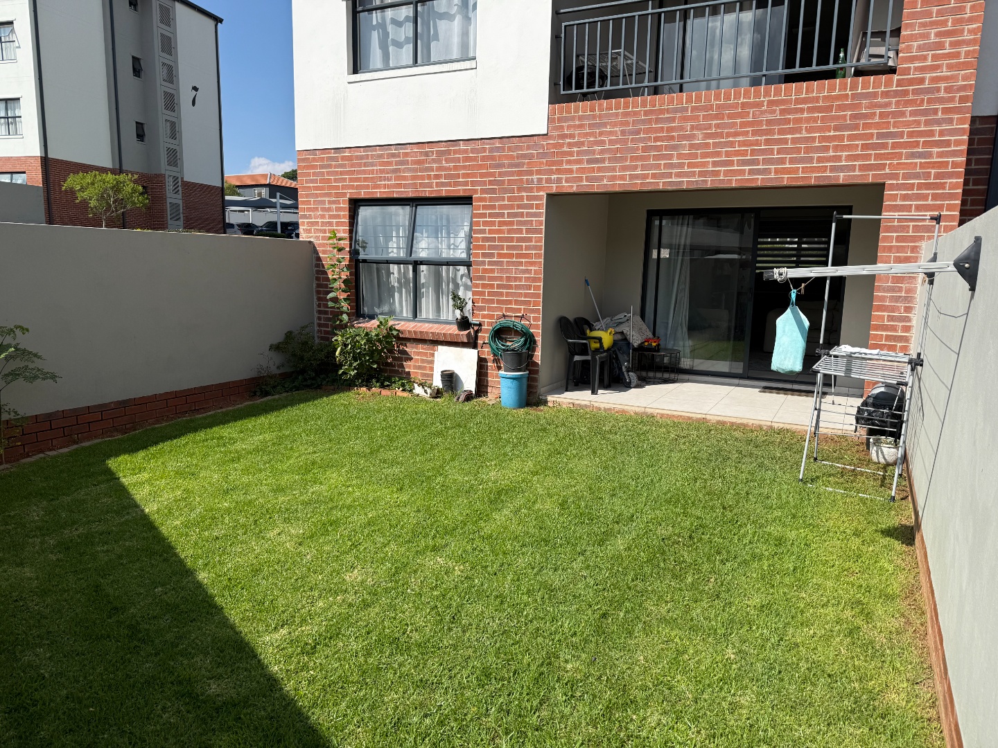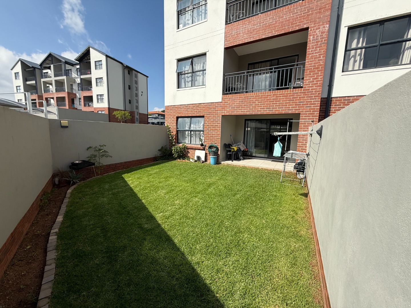 The living area extends to a covered patio that opens onto a lush, private garden—your own peaceful escape or the perfect spot to entertain guests. Whether you're sipping morning coffee outdoors or hosting weekend braais, this garden apartment offers a rare blend of indoor-outdoor living in a secure, well-maintained estate.