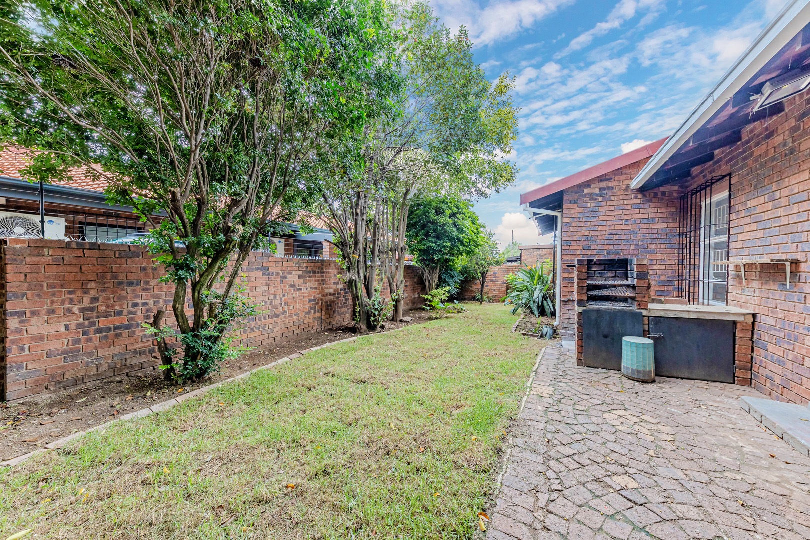 Step outside to discover a private backyard oasis, complete with a built-in braai area—ideal for weekend braai, evening get-togethers, or simply enjoying the outdoors in peace. The outdoor space adds a unique touch to the home’s overall appeal, blending lifestyle and leisure.