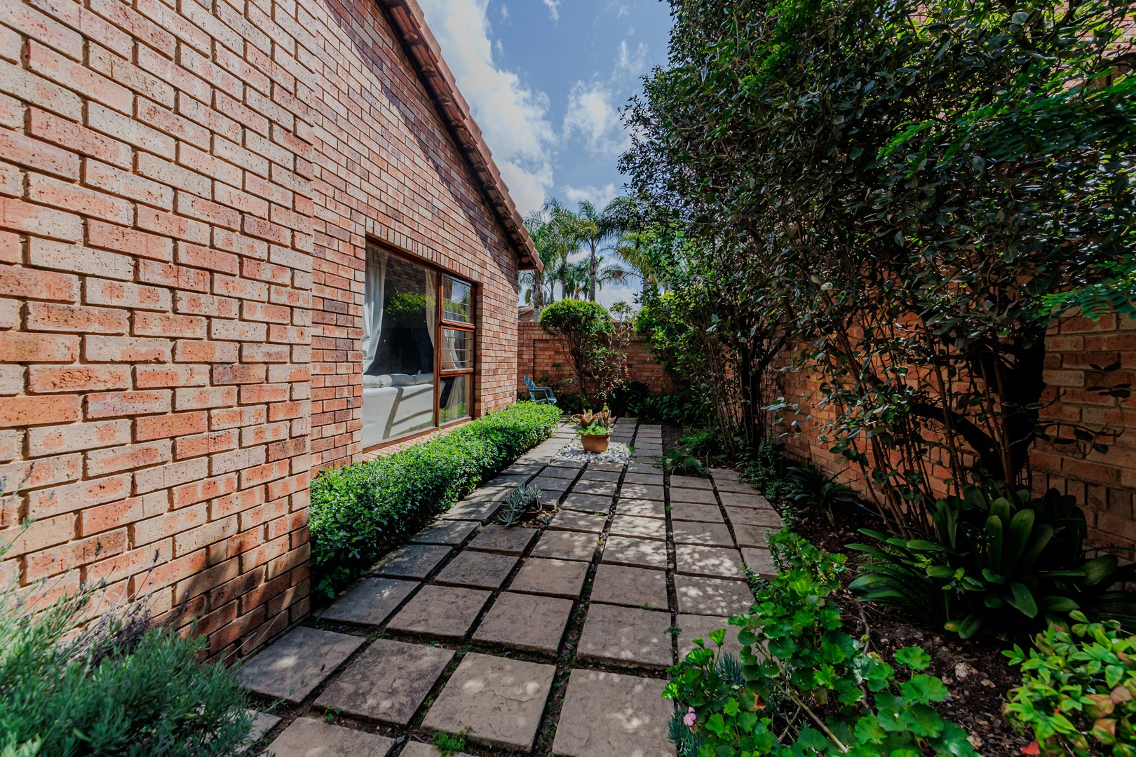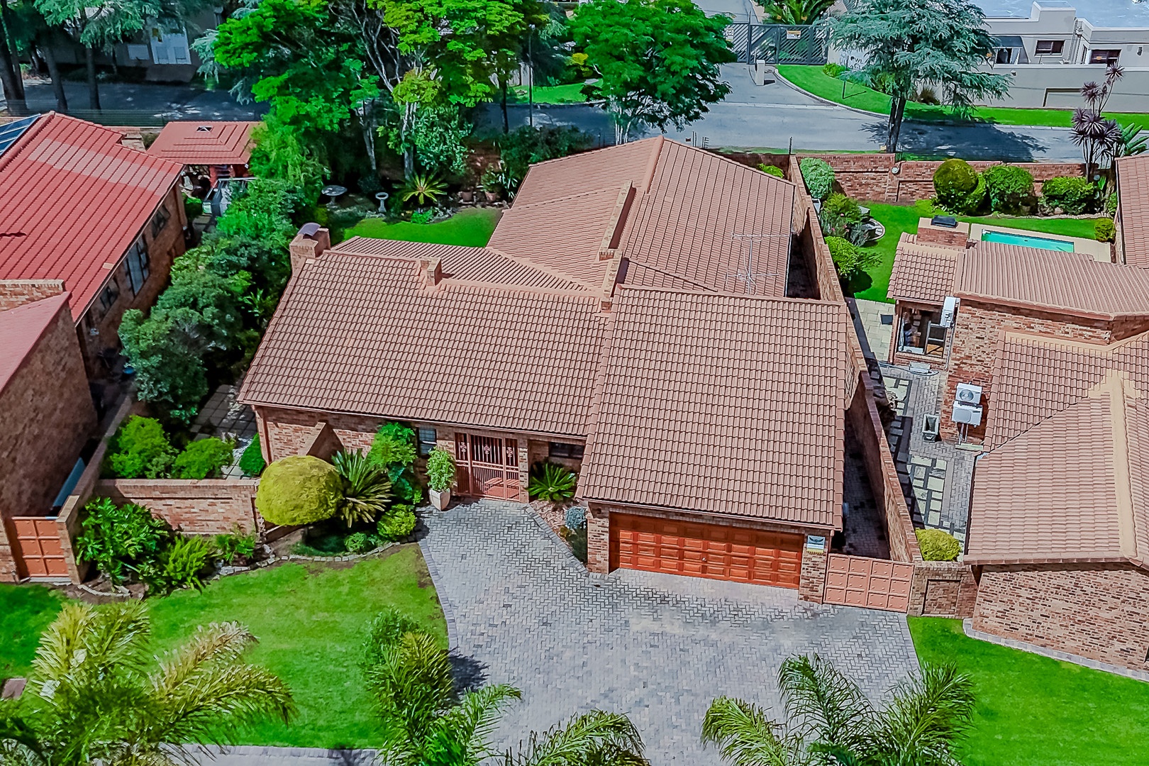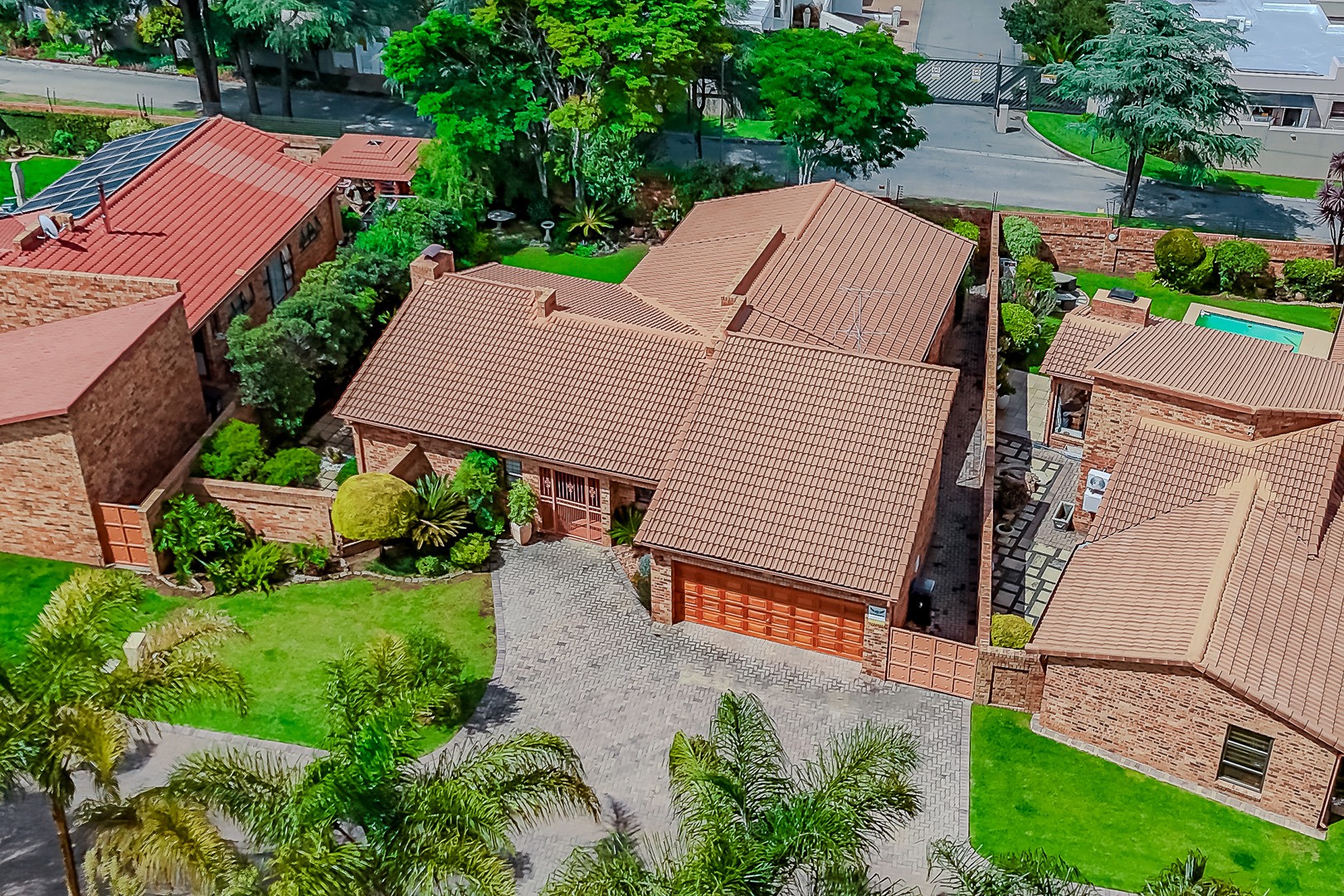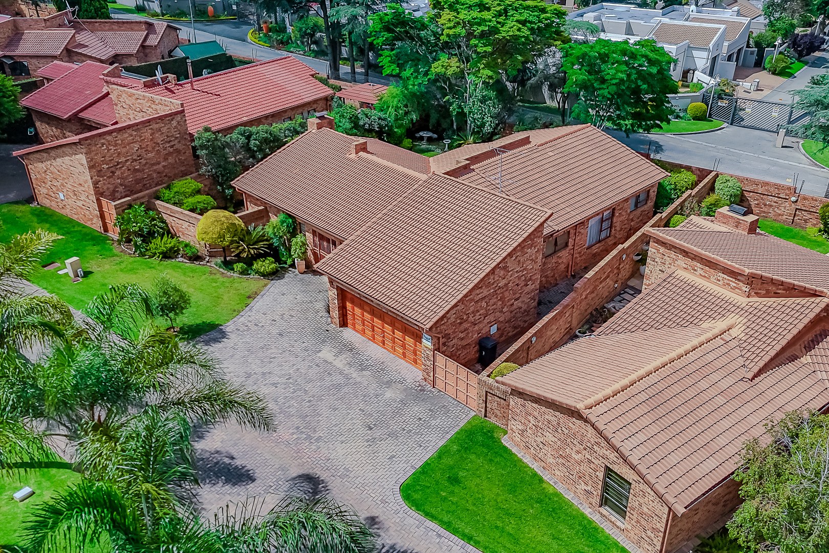 This immaculate residence, situated within a well-maintained complex in Randpark Ridge, presents a timeless brick exterior and traditional tiled roof. Each unit features a private, landscaped garden and a spacious paved driveway leading to a double garage. A secure gated entrance ensures a controlled environment, contributing to the property's neat and organised curb appeal.