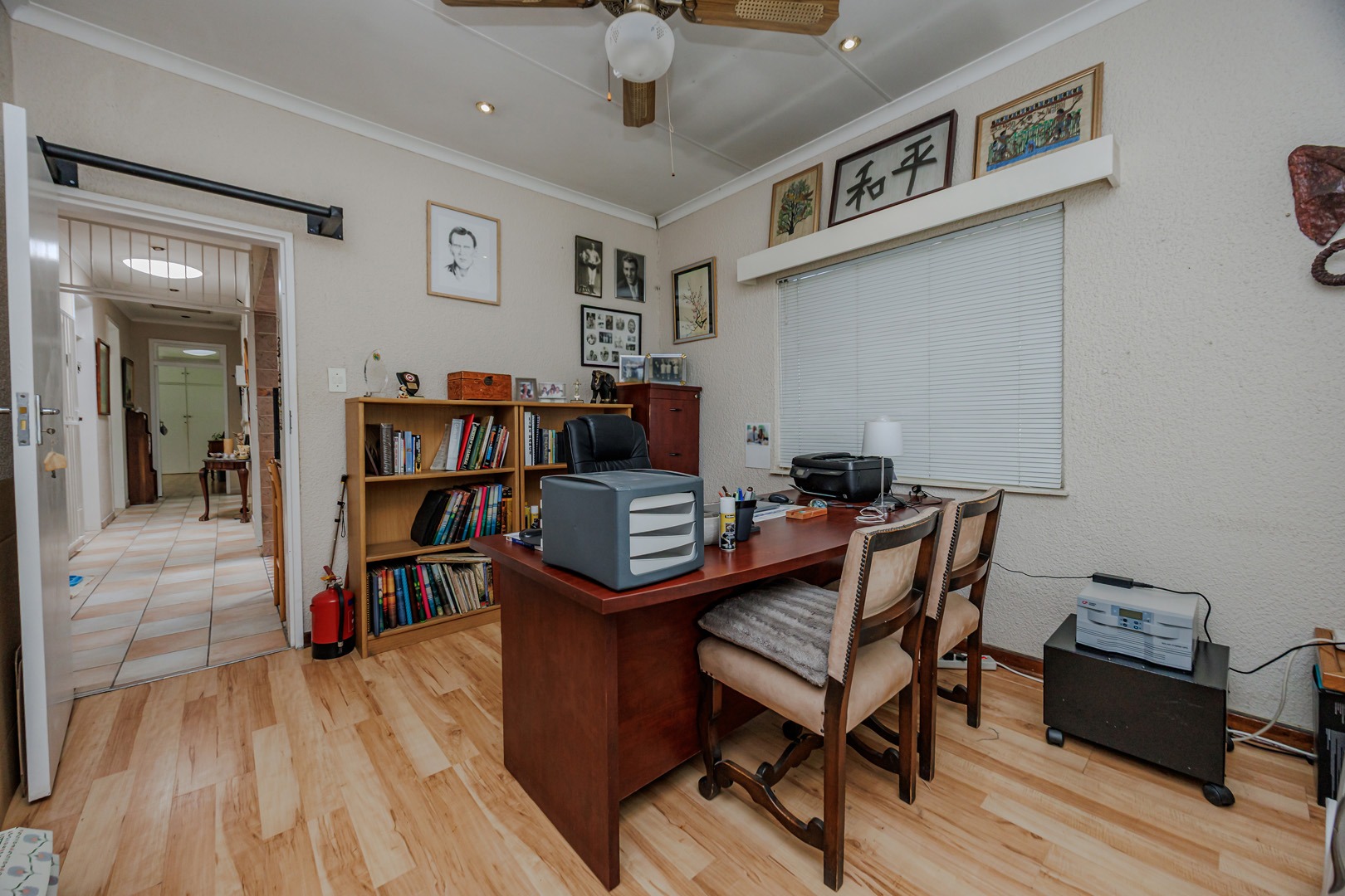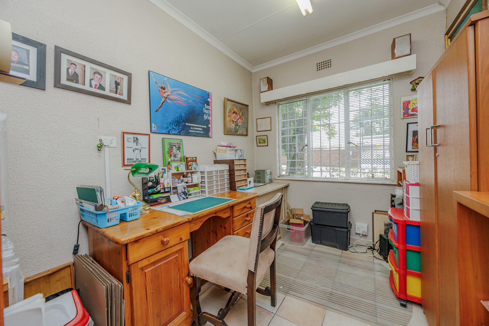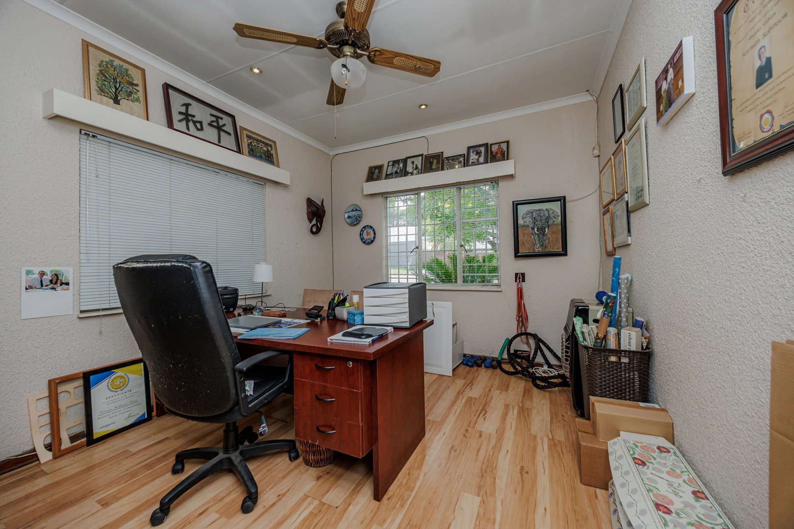 Accommodation includes three comfortable bedrooms and two bathrooms, ensuring privacy and convenience for the household. Additionally, the property features dedicated studies or home office spaces, complete with laminate flooring, natural light, and integrated bookshelves, catering perfectly to modern work-from-home requirements or a quiet hobby area. Security gates are also present, offering an added layer of peace of mind.