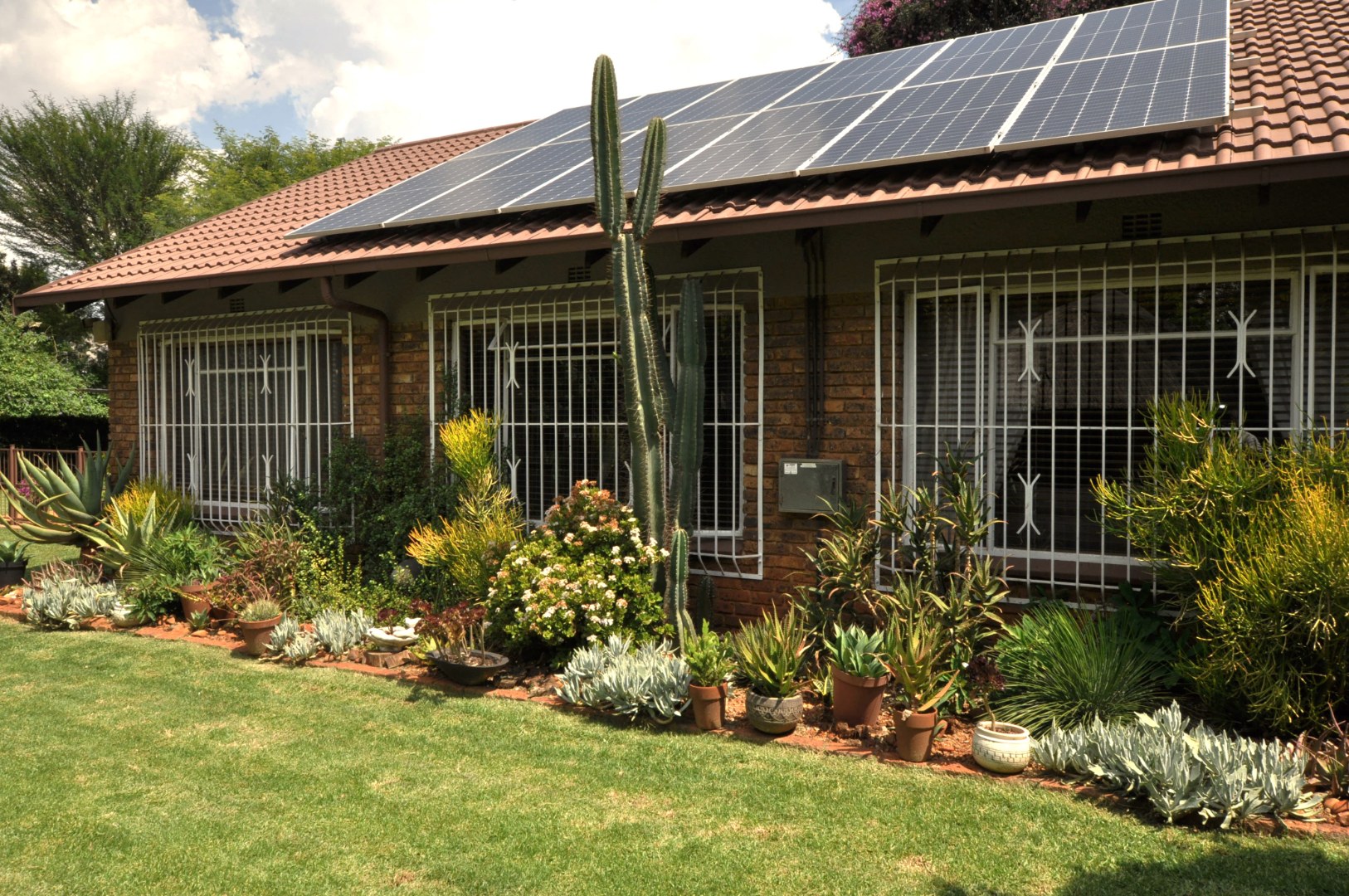 All though the electrical system is labeled as Prepaid, the main secret is the 12 x 460W solar panels with a 5KVA inverter. Two big Jojo tanks runs the rainwater harvesting system to keep the garden beautiful. Fibre provide work from home or streaming, an wonderful addition to the family. The pool, Lapa and buildin braai also helps to create that family memories that will last a life time.