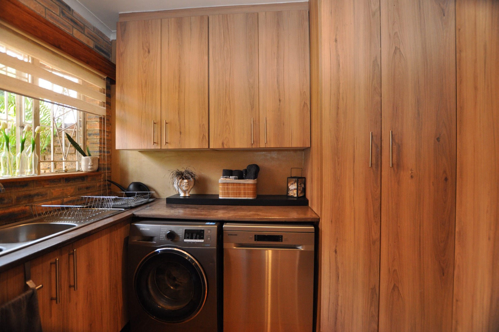 The full home provide 3 bedroom, 2 bathrooms, kitchen with separate scullery. generous dinning room, lounge and a office. There is also a motorized double garage where one side provides extra length for the bigger vehicles. As a bonus there is a carport for additional two vehicles to stop,