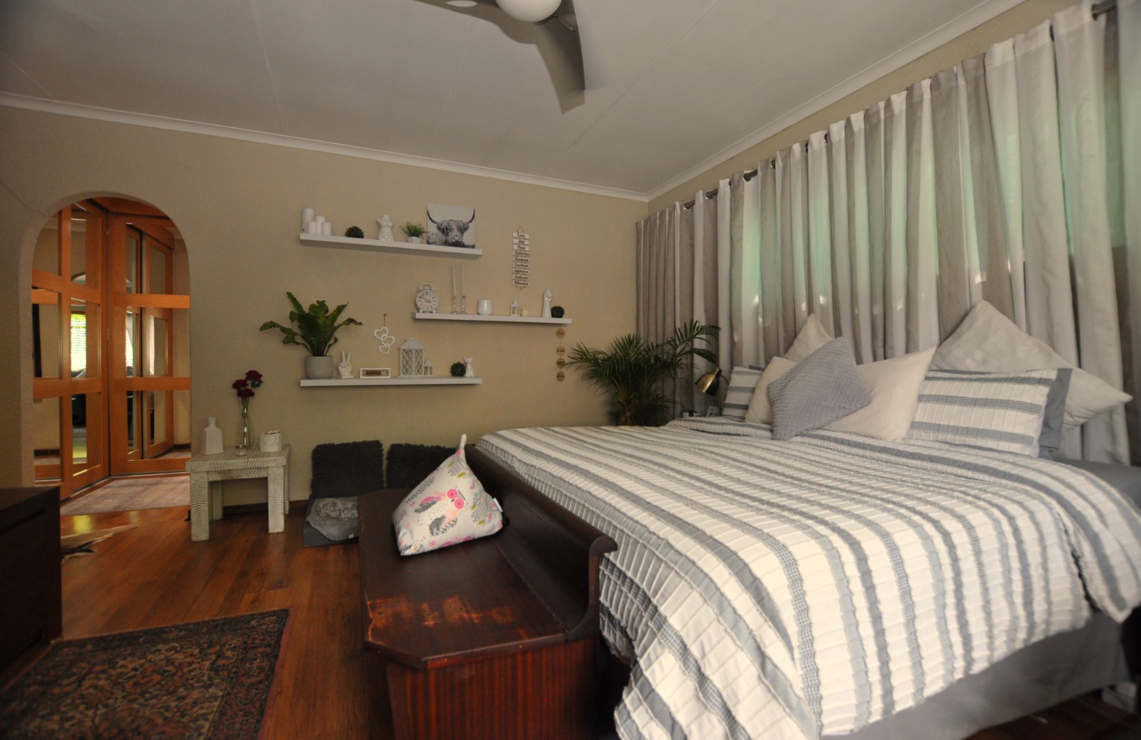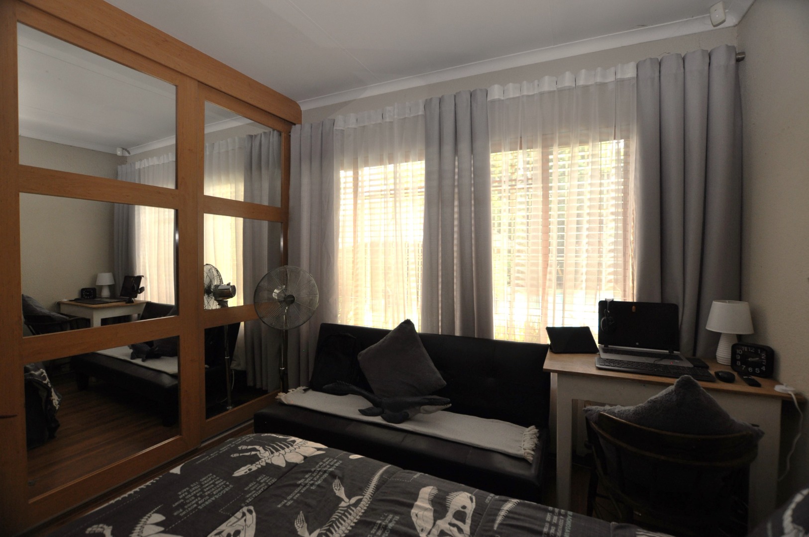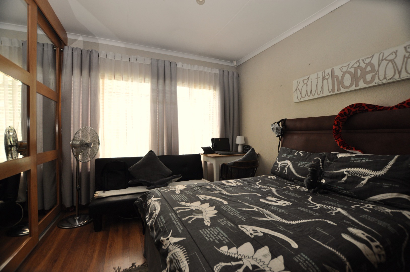 The inside of the home have been renovated recently. Laminated wooden floors provide a balanced flow throughout the home with each bedroom cupboard, fitted with stylish mirror sliding doors.