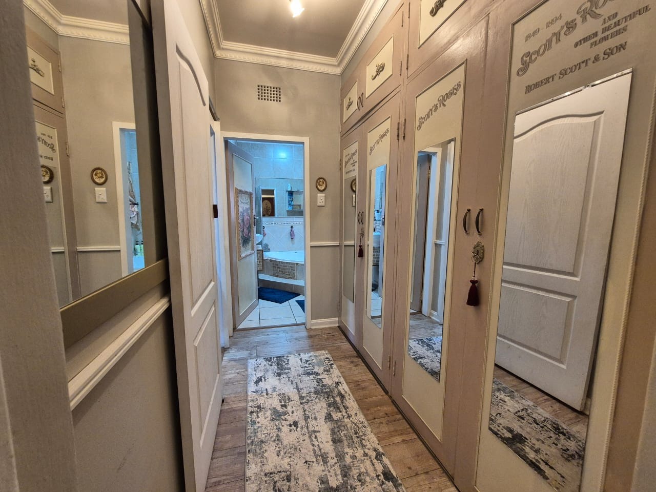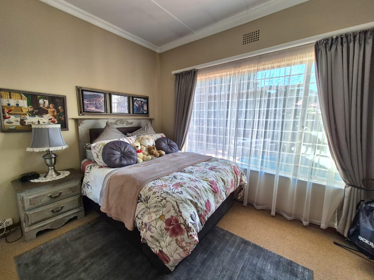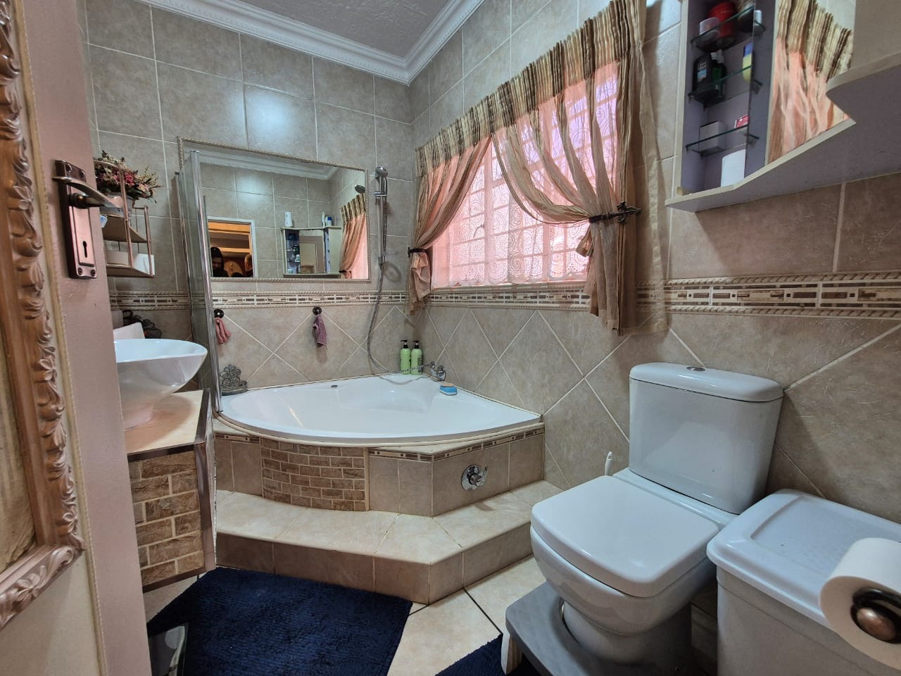 This beautifully maintained three bedroom home offers spacious, comfortable living with a host of features ideal for family life and entertaining. All three bedrooms are fitted with built-in cupboards, ensuring ample storage, and are complemented by two modern bathrooms. The main bedroom boasts a full en-suite bathroom, with both bathrooms featuring tiled floors, a bath, basin, and toilet.