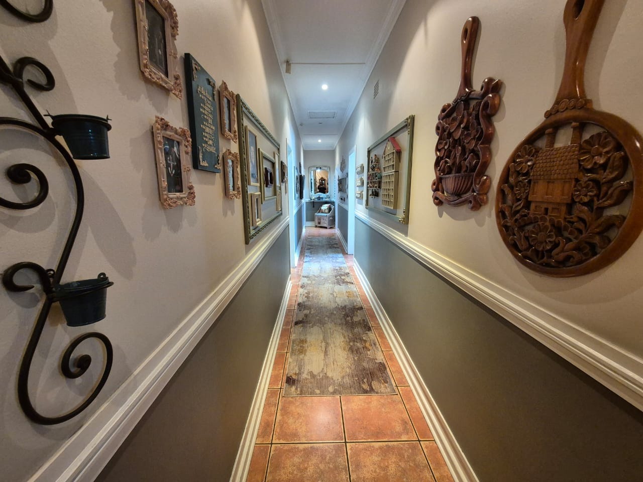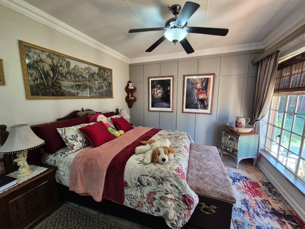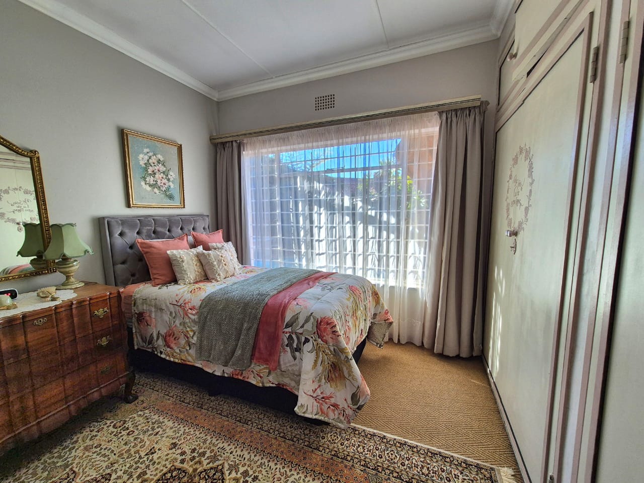 This beautifully maintained three bedroom home offers spacious, comfortable living with a host of features ideal for family life and entertaining. All three bedrooms are fitted with built-in cupboards, ensuring ample storage, and are complemented by two modern bathrooms. The main bedroom boasts a full en-suite bathroom, with both bathrooms featuring tiled floors, a bath, basin, and toilet.