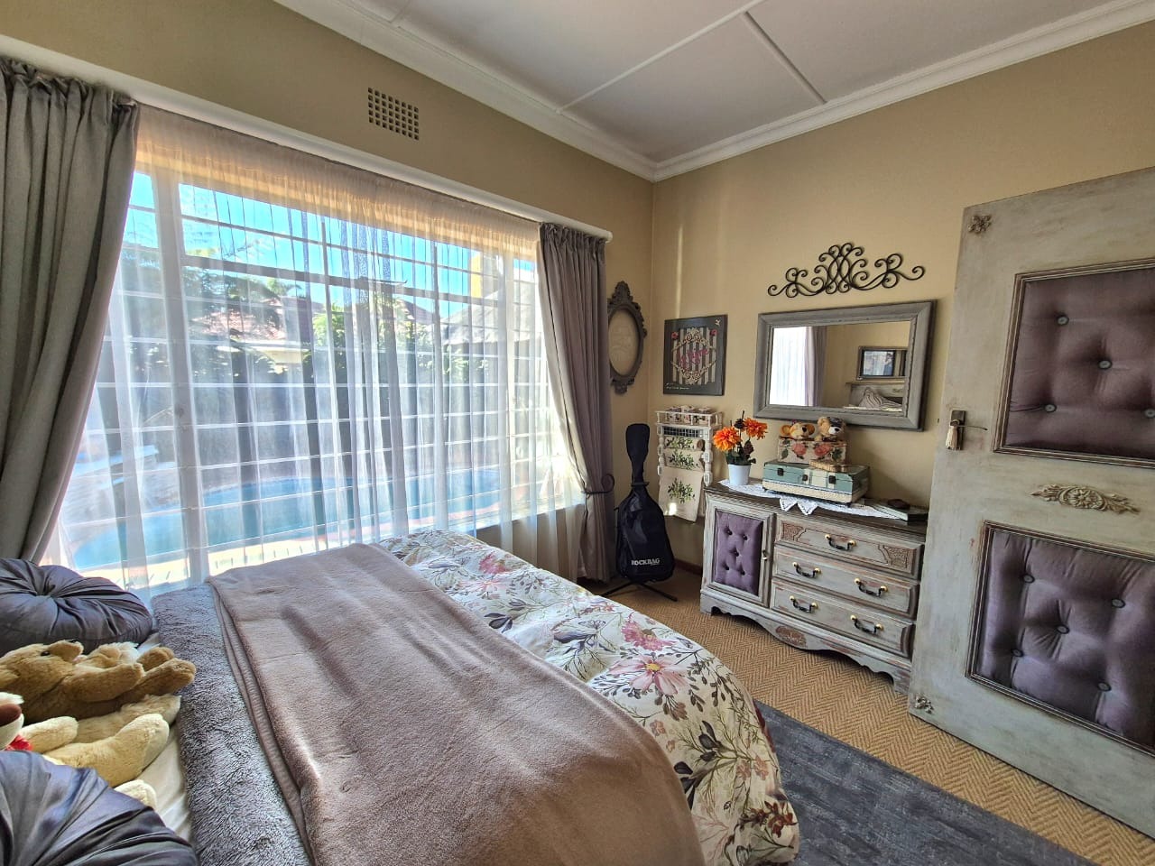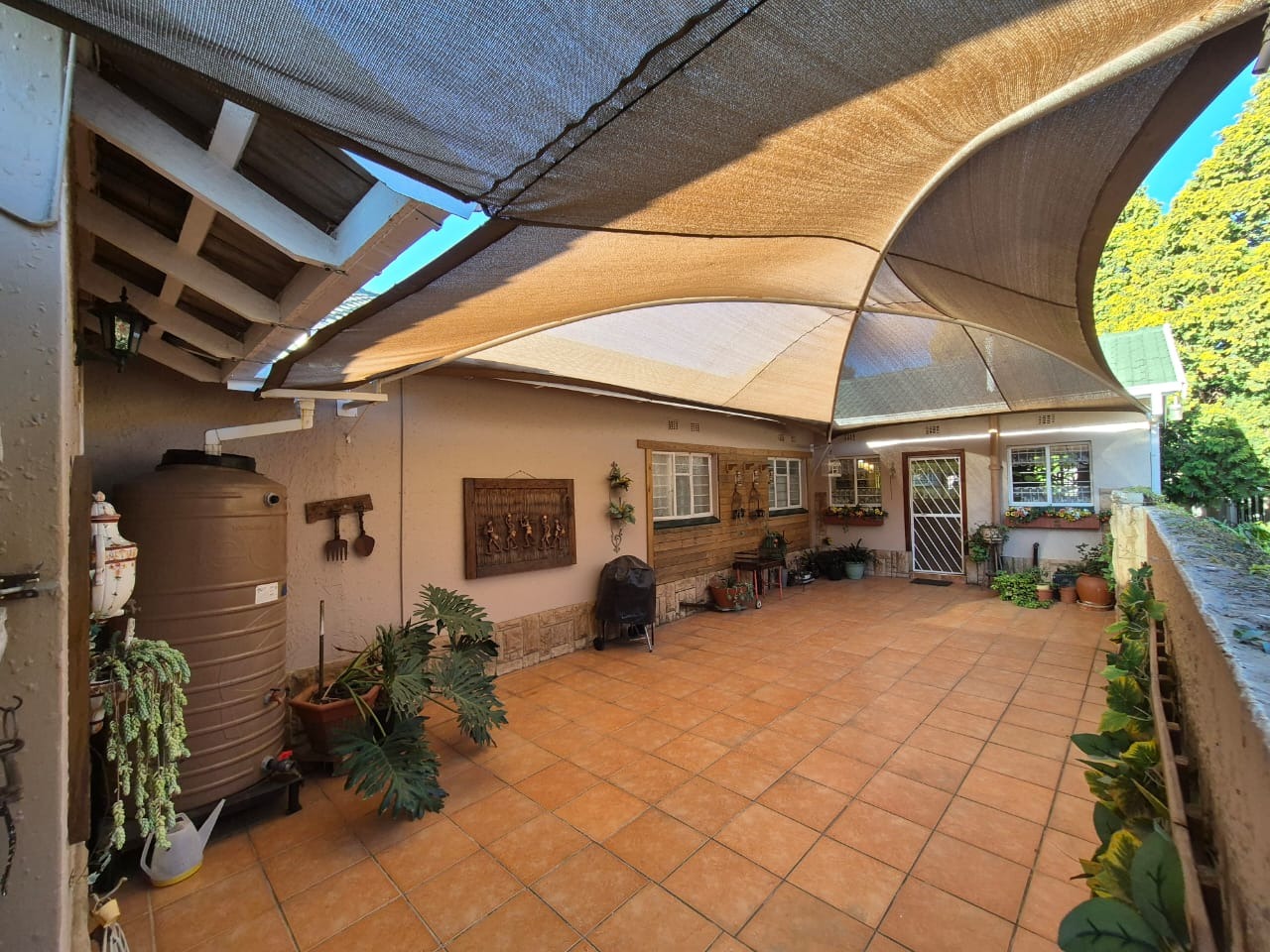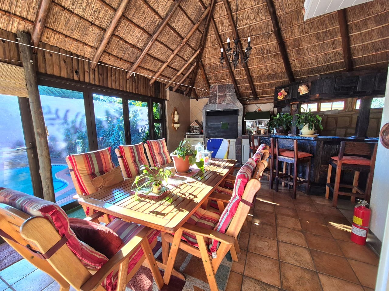 Step outside and enjoy the beautifully manicured garden and sparkling swimming pool. The entertainment area features a built-in braai, making it perfect for gatherings with friends and family.