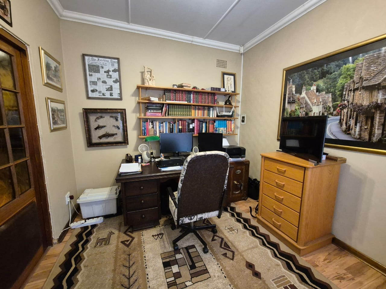 A dedicated study with laminated flooring offers a quiet retreat for working from home or managing personal affairs.