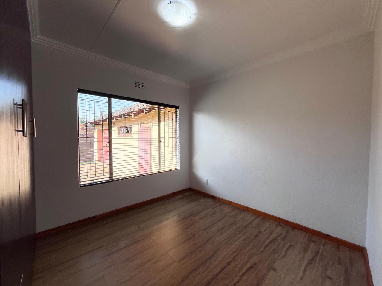 This neat as a pin property is situated close to amenities like schools and Tambotie Mall and featuring 3 well sizes bedrooms with built-in cupboards, laminated floors and blinds. 2 Bathrooms, both consisting of bath, hand shower in bath, basin, toilet, fully tiled and blinds. Spacious Open Plan Lounge with a Jet Master fire place, TV port and dining area both with tiled floors and blinds. Beautiful modern kitchen with ample built-in cupboards, breakfast nook, ,eye level oven, hop, extractor fan as well as a separate Scullery / Laundry Area.