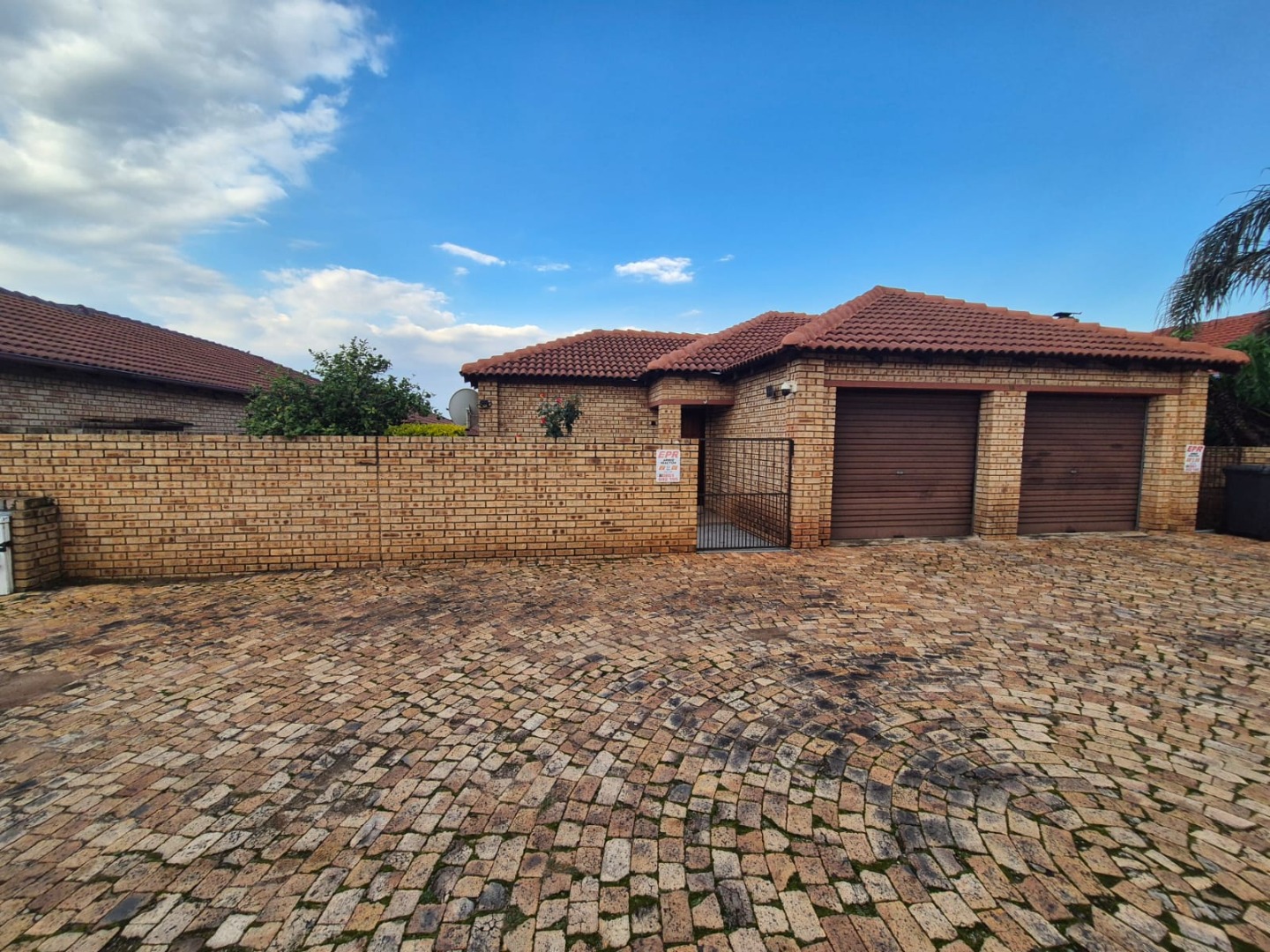 Externally, the home benefits from a private garden and a patio, providing ideal spaces for outdoor relaxation and enjoyment. The property is fully walled and includes a driveway, two garages, and an access gate, ensuring both privacy and security. Additional security features like burglar bars and a security gate offer further peace of mind. Pets are also welcome, making this an ideal choice for animal lovers.