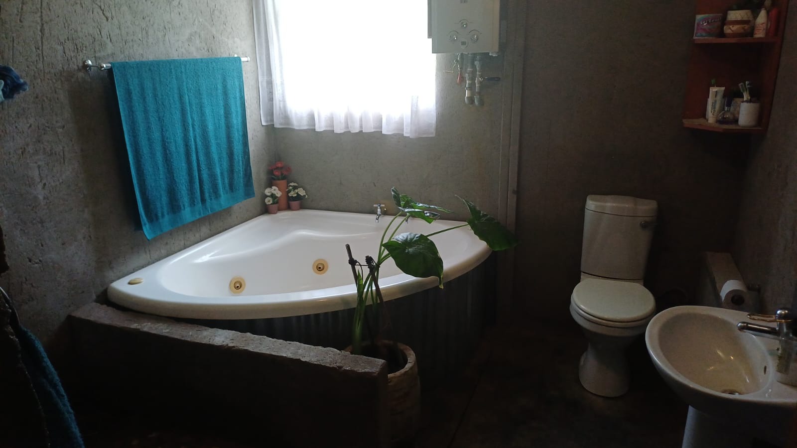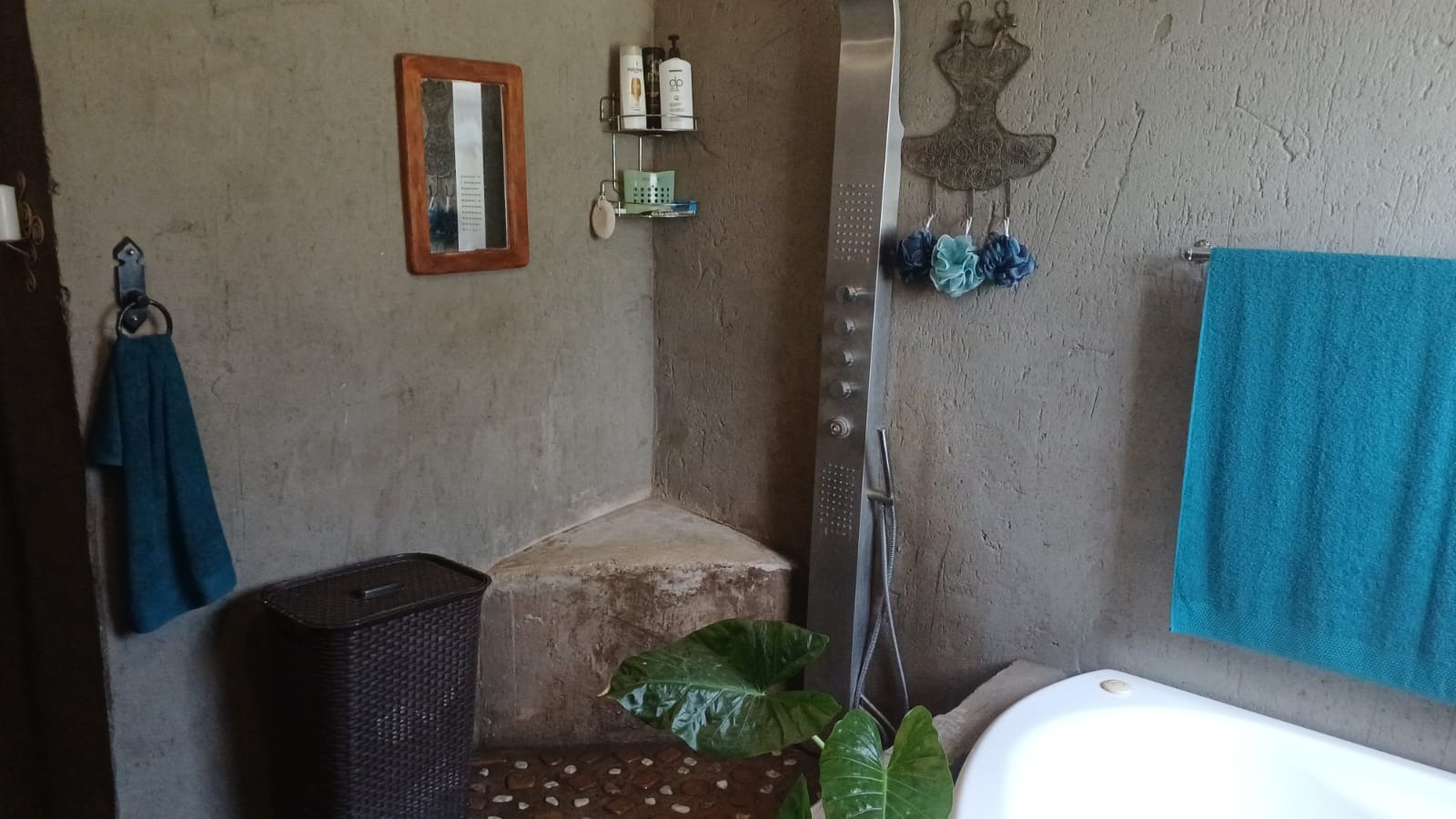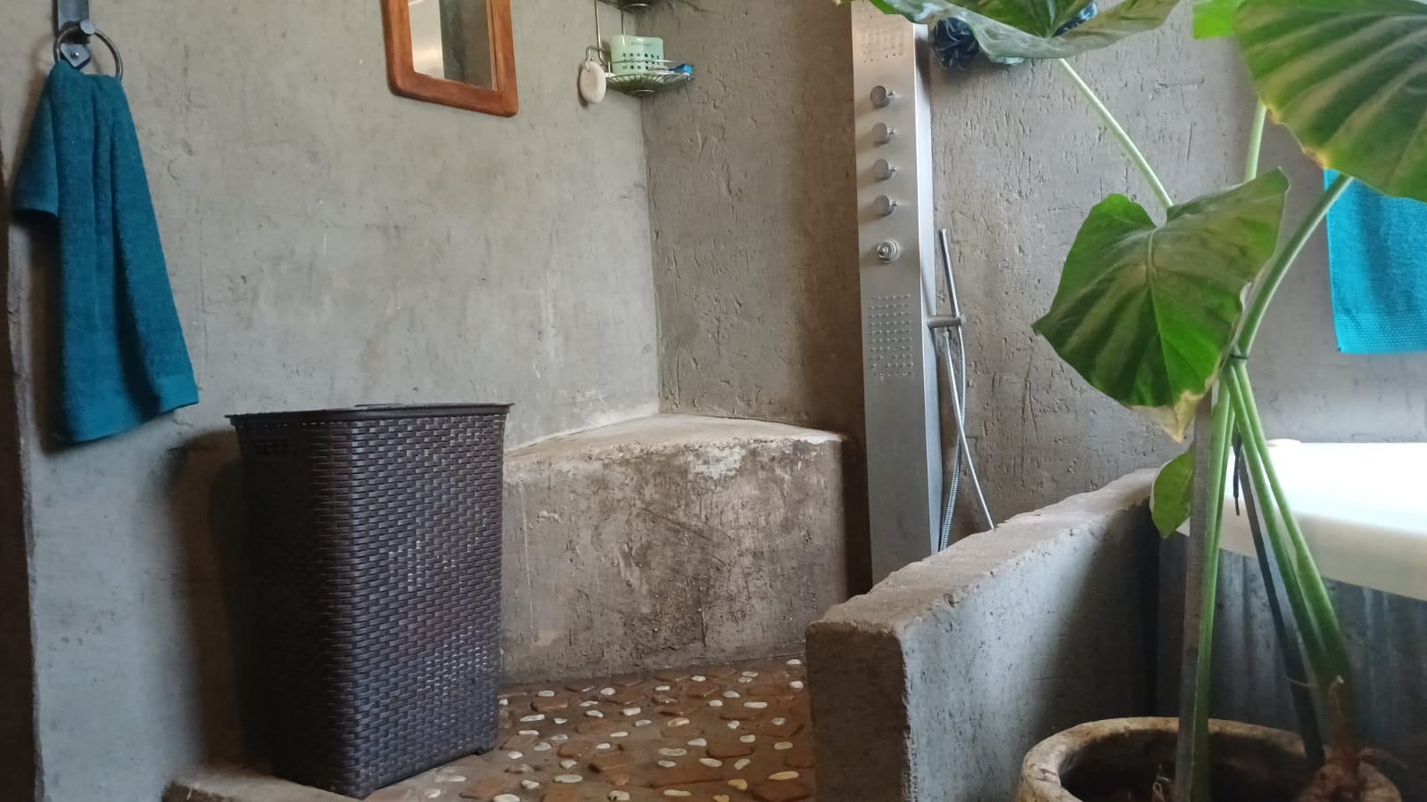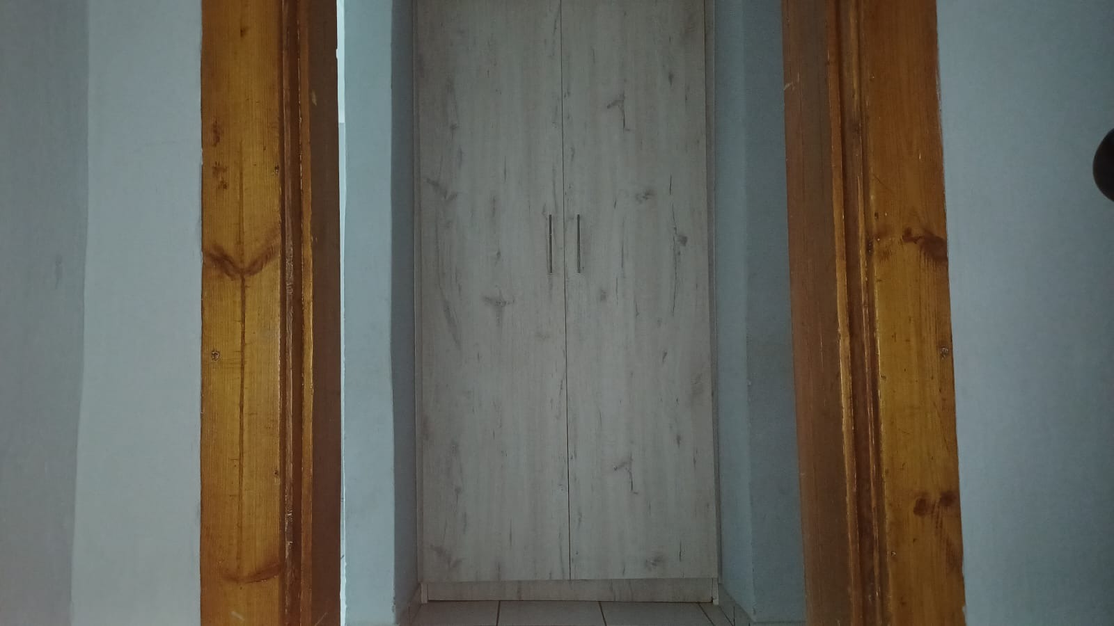 The home includes two bedrooms—a spacious first bedroom and a large main bedroom. While they do not feature built-in cupboards, ample passage cupboards offer excellent storage. The full family bathroom is fitted with a bath, shower, basin, and toilet. the property features both solar and electric exterior lighting for added convenience and efficiency.