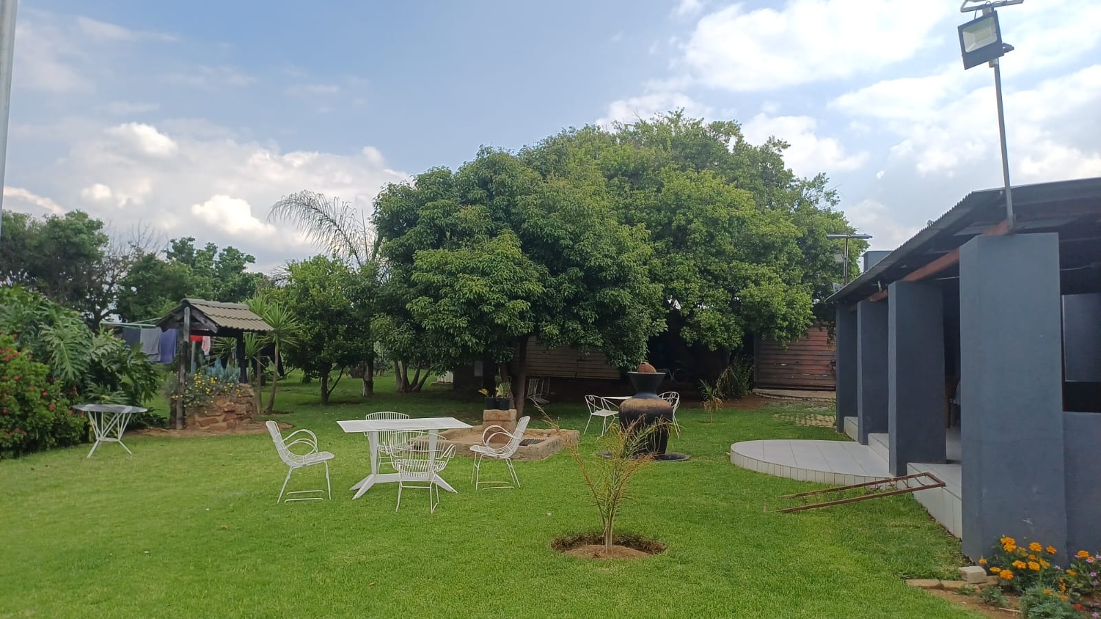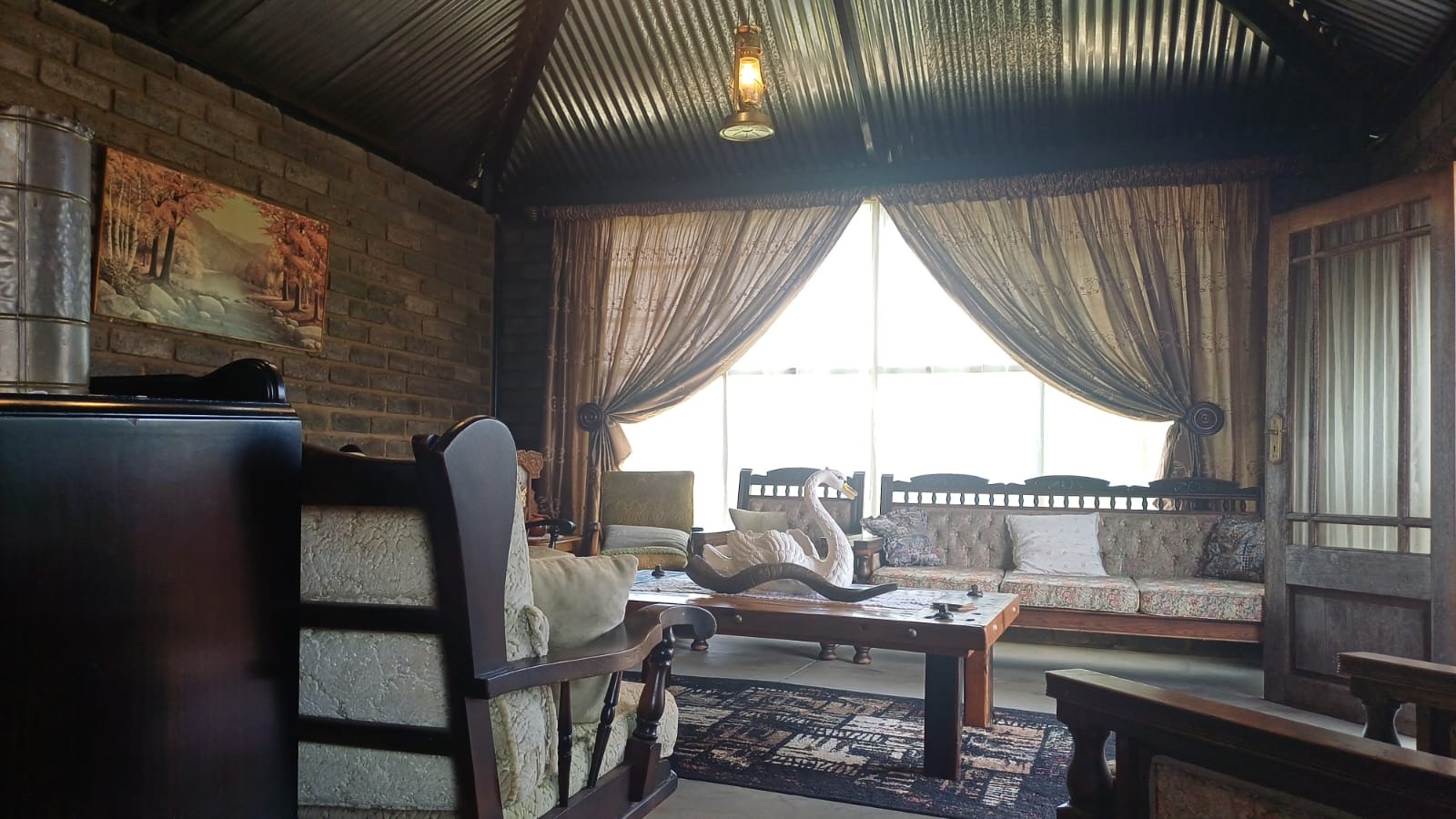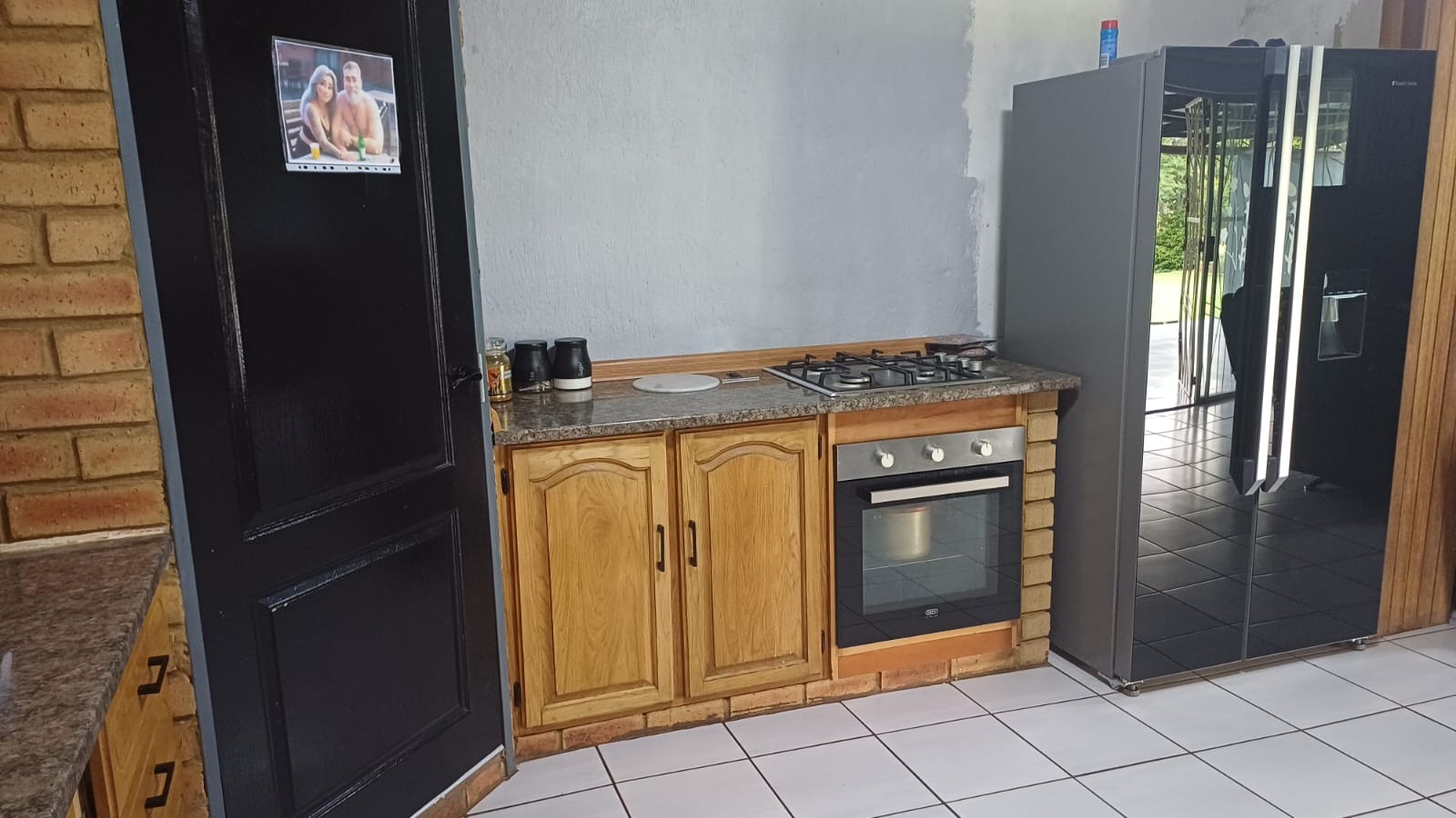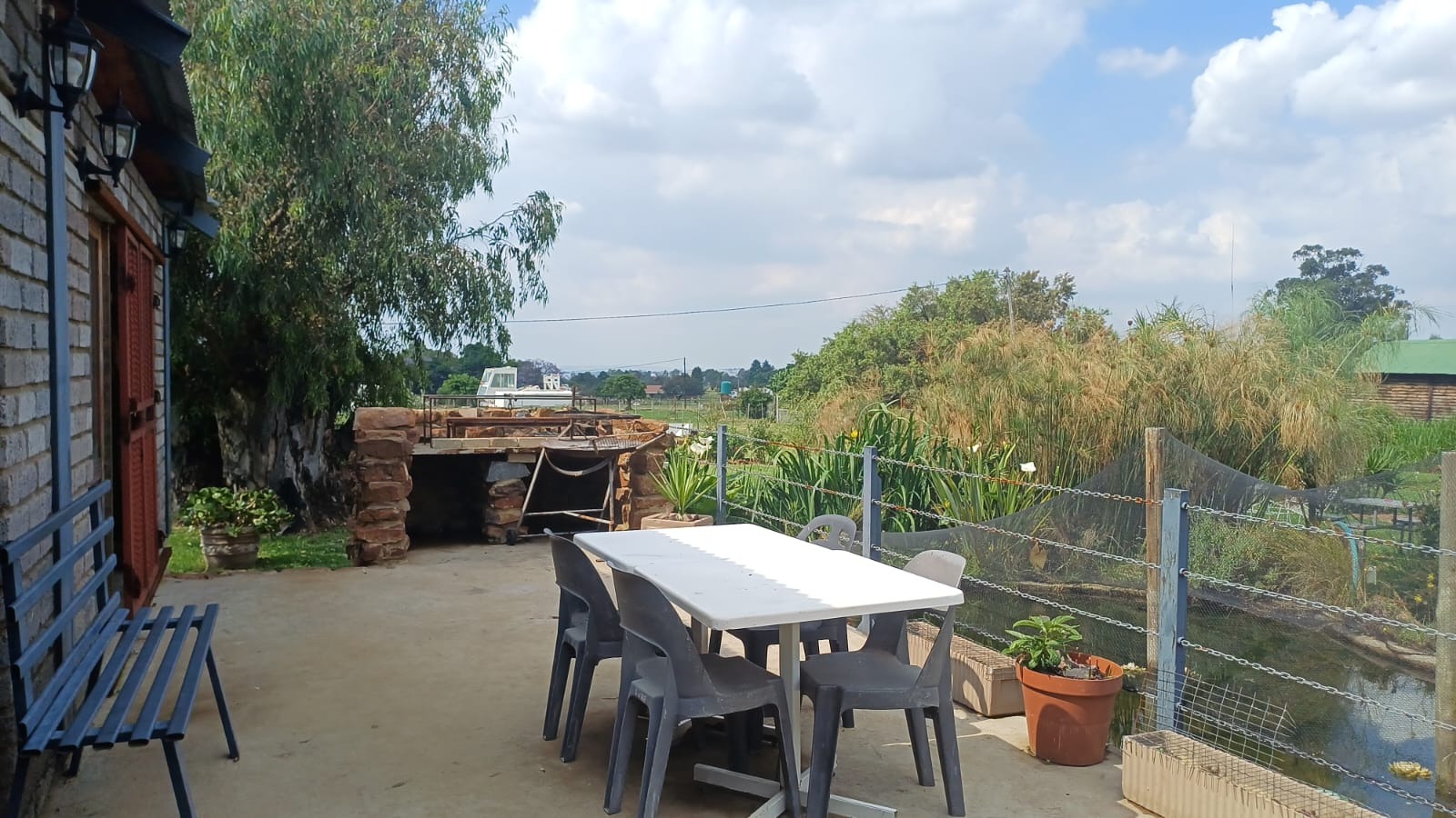 This solid home with a corrugated roof is fully secured with burglar bars and security gates for peace of mind. The exterior is exceptionally neat, complemented by a lush, irrigated garden and a tranquil fishpond. A spacious deck-style patio with a built-in braai provides the perfect setting for entertainment and relaxation. Additional features include a carport for three vehicles and a JoJo tank that overflows into a large dam, forming a unique natural swimming pool ideal for warm summer days.