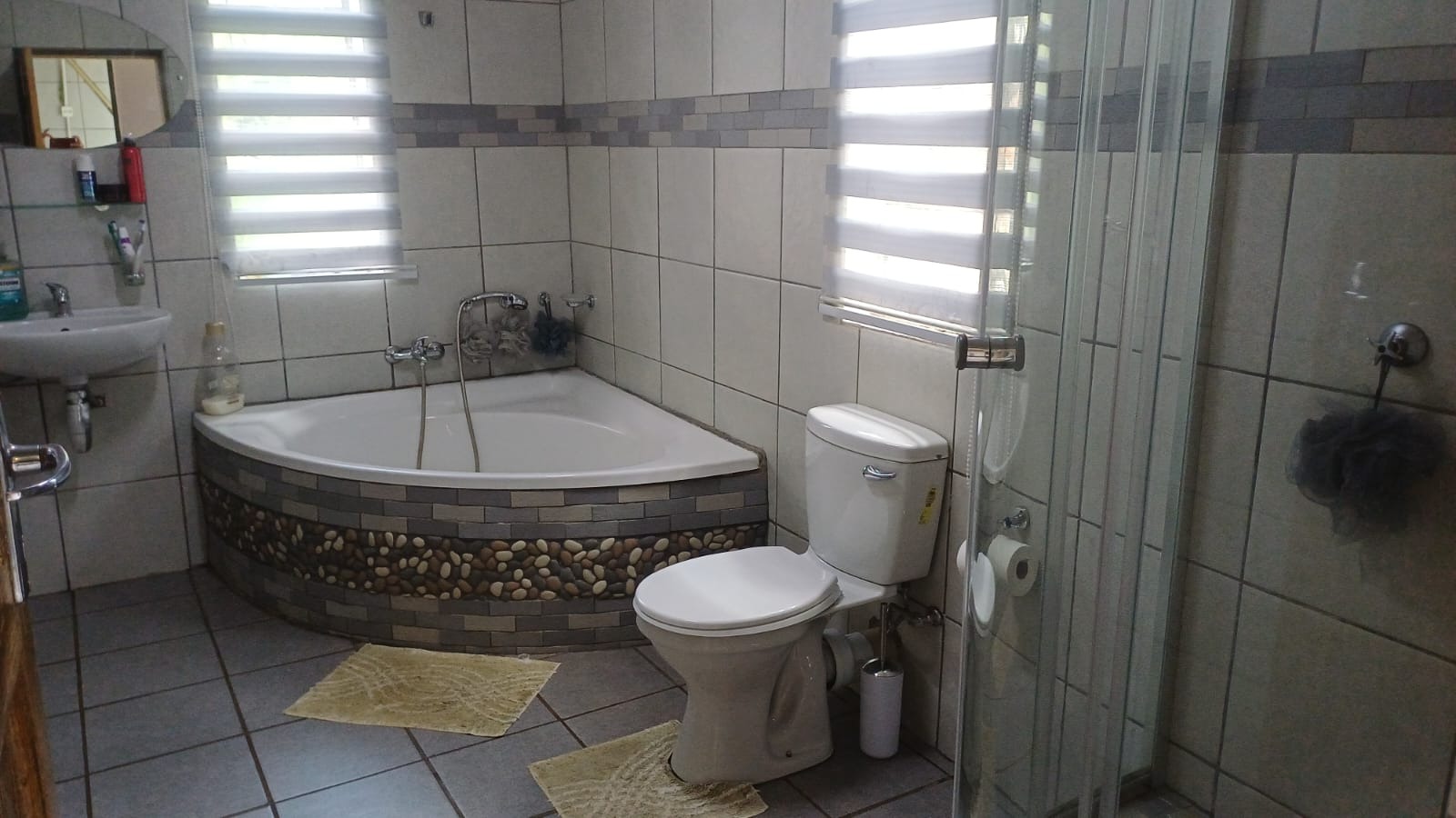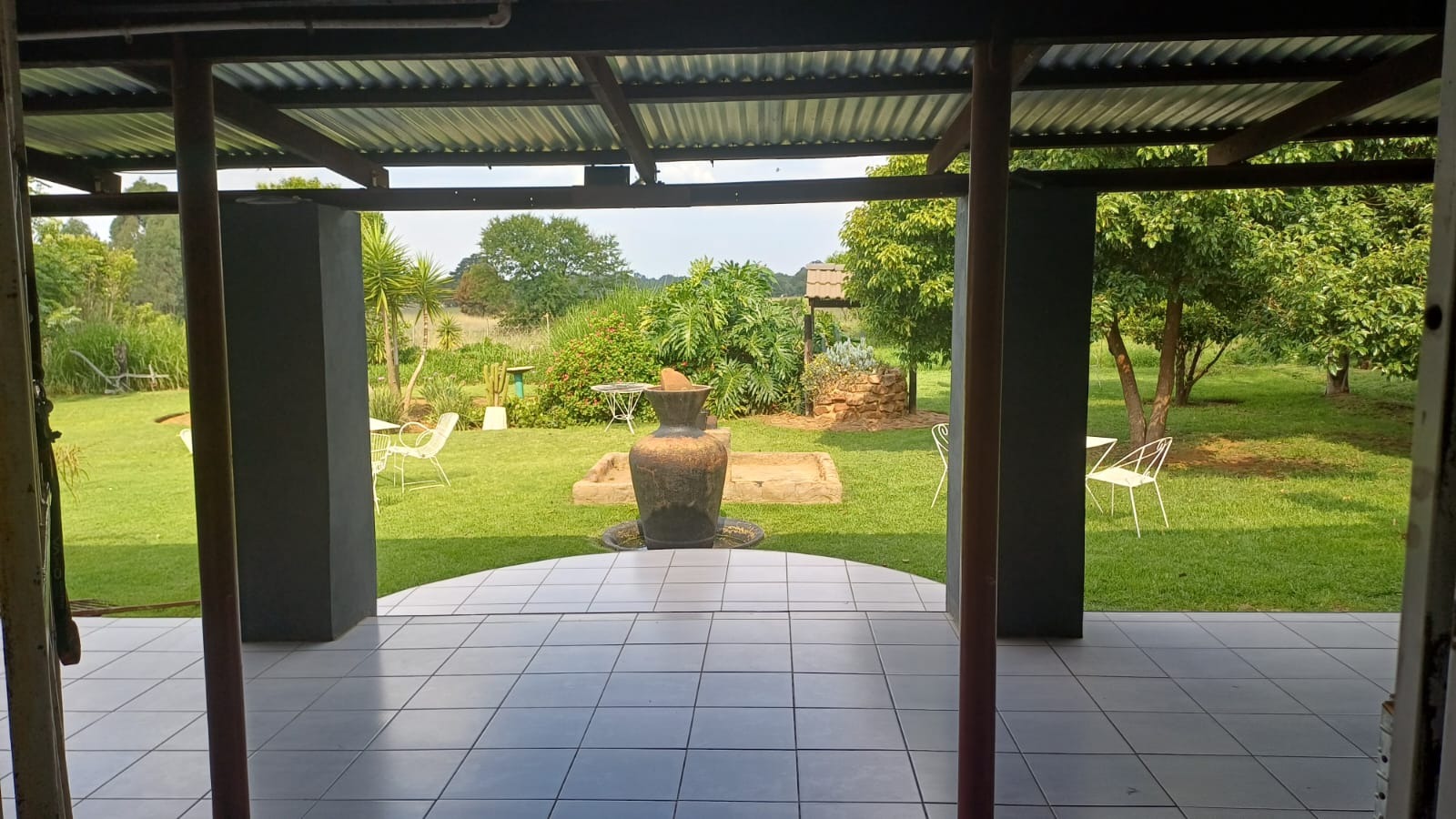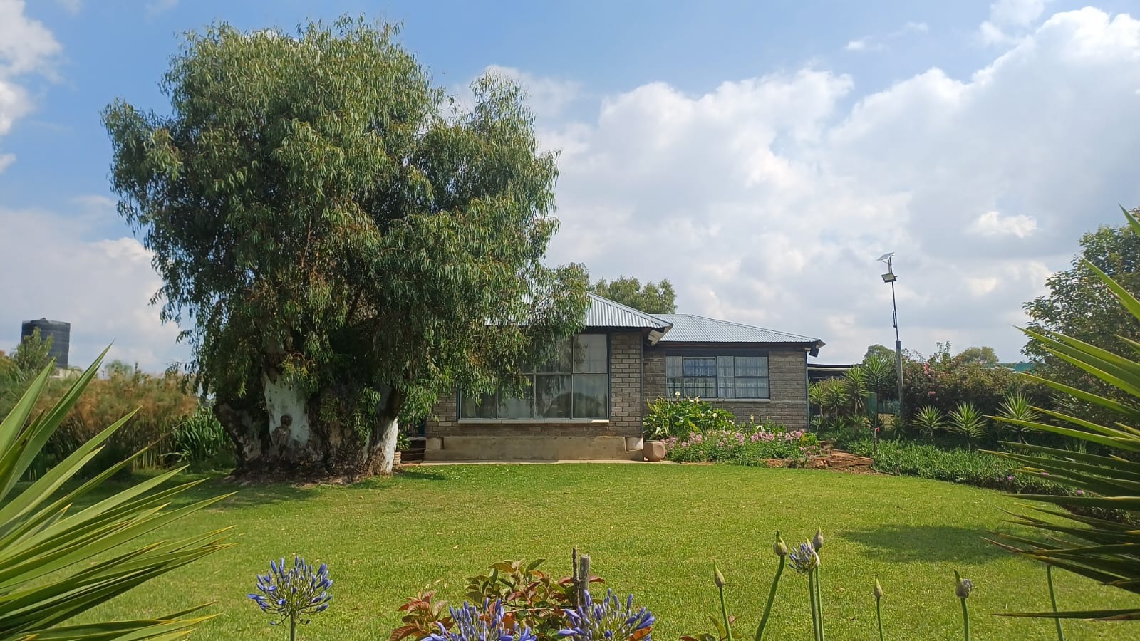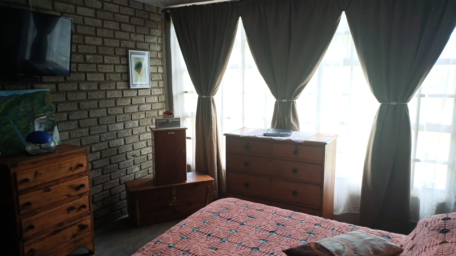 This solid home with a corrugated roof is fully secured with burglar bars and security gates for peace of mind. The exterior is exceptionally neat, complemented by a lush, irrigated garden and a tranquil fishpond. A spacious deck-style patio with a built-in braai provides the perfect setting for entertainment and relaxation. Additional features include a carport for three vehicles and a JoJo tank that overflows into a large dam, forming a unique natural swimming pool ideal for warm summer days.