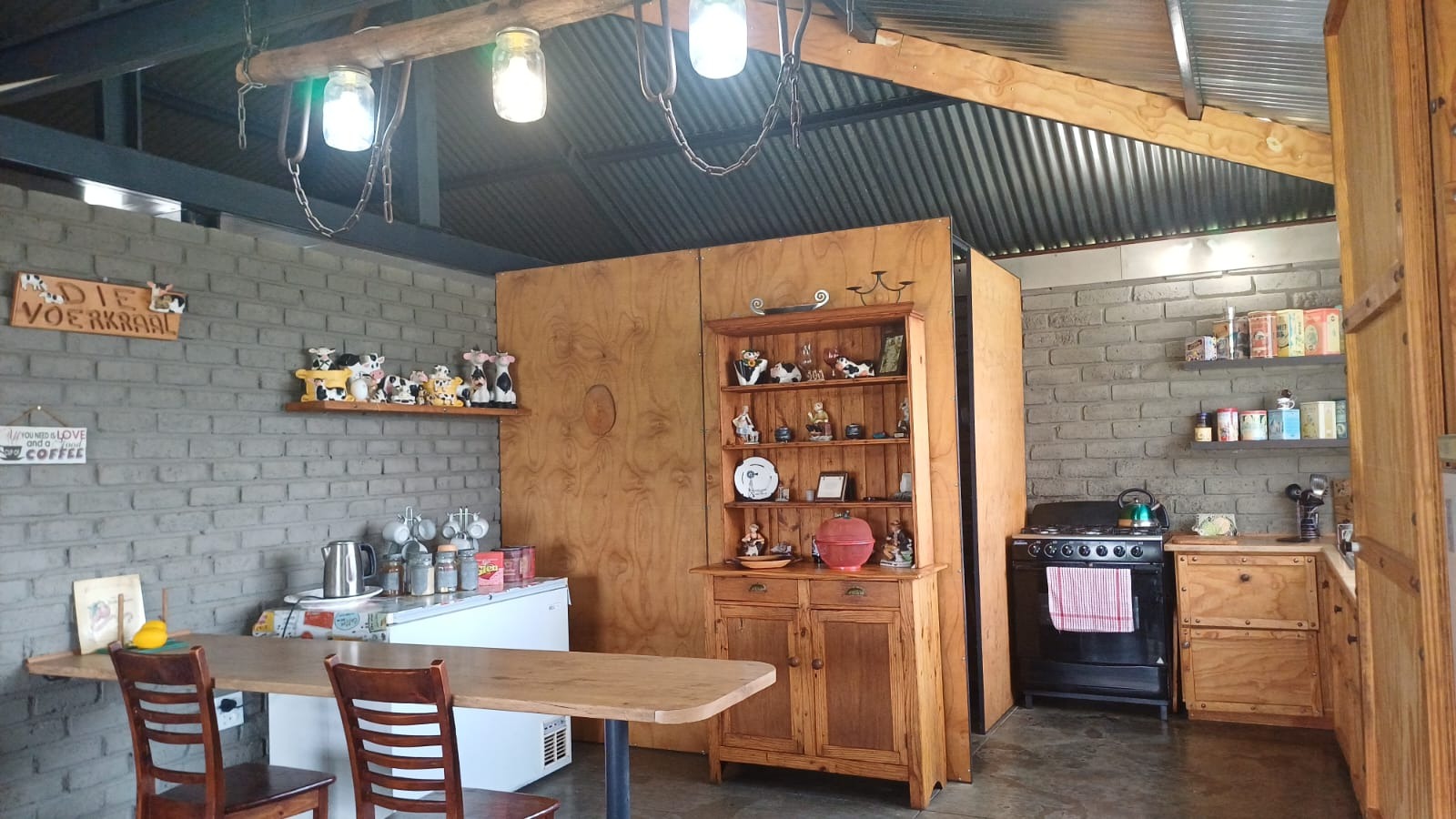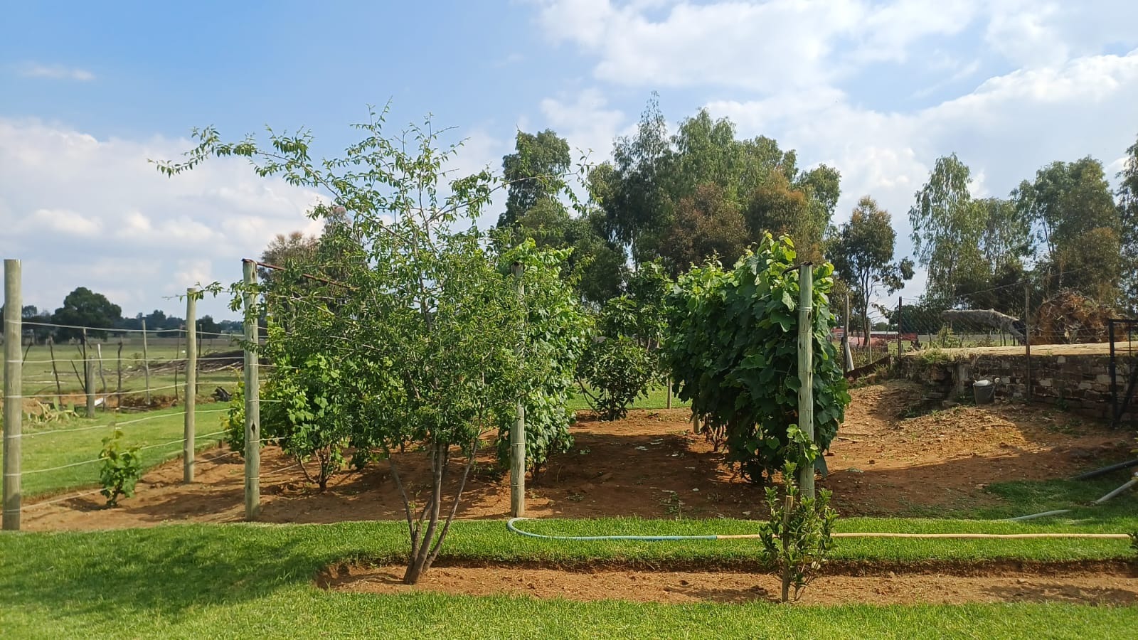 Ideally positioned for mixed farming, the land features fertile soil ideal for planting, and is already divided into camps for livestock and small stock. Approximately 80% of the plot is under irrigation, supported by a strong 42-metre borehole that strikes water at 18 metres. A 5 000-litre tank overflows into a 100 000-litre dam, serviced by an irrigation pump capable of running six to ten sprinklers or two cannon sprayers.