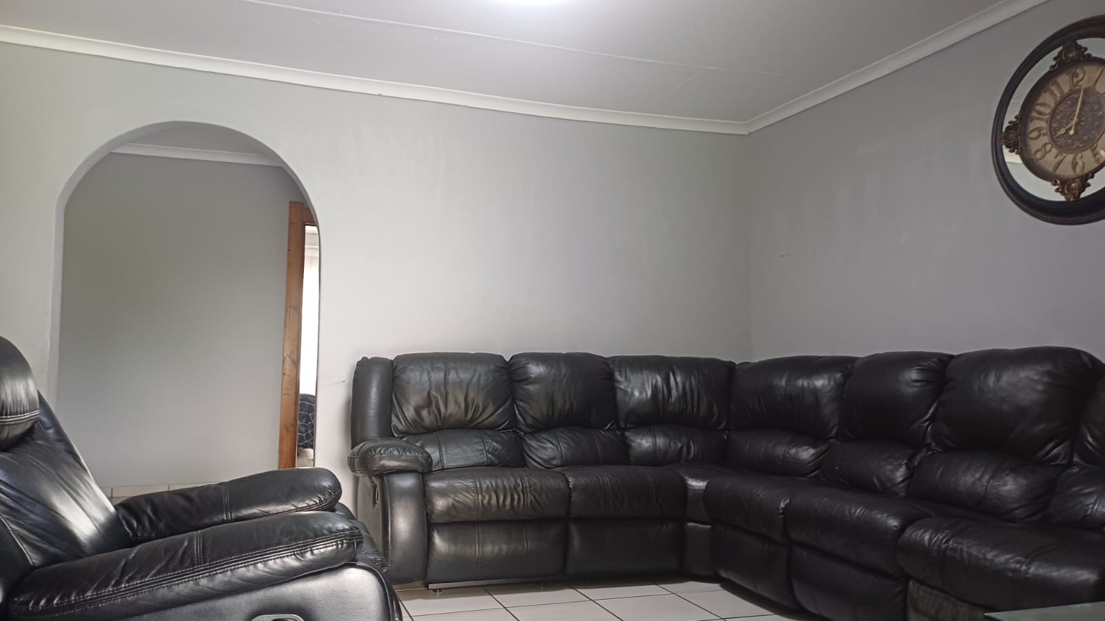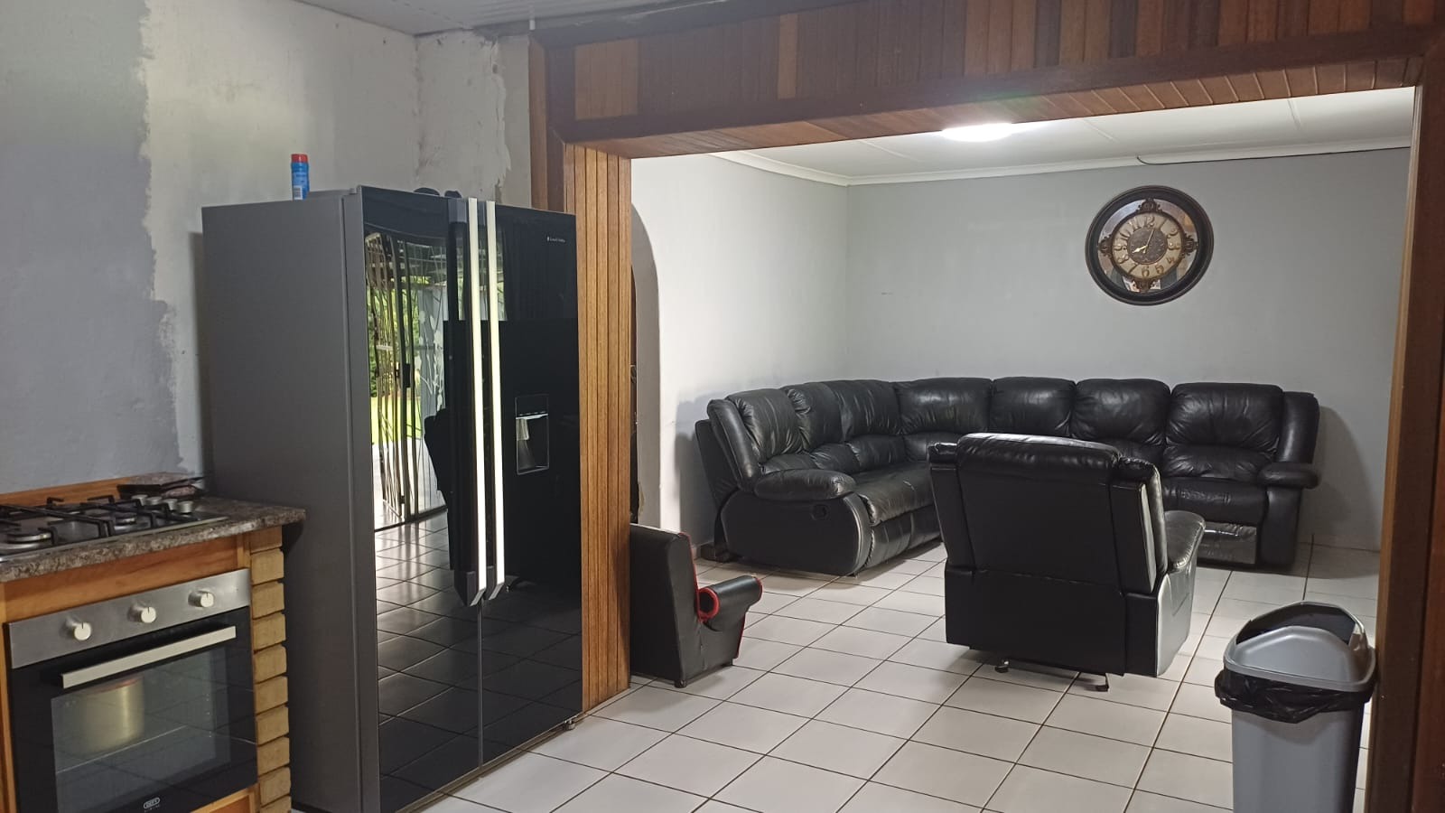The second dwelling offers four bedrooms, a comfortable lounge opening onto an outside stoep, and an open-plan layout extending into the kitchen. The home includes a full family bathroom and a separate laundry room. This house operates on prepaid electricity.