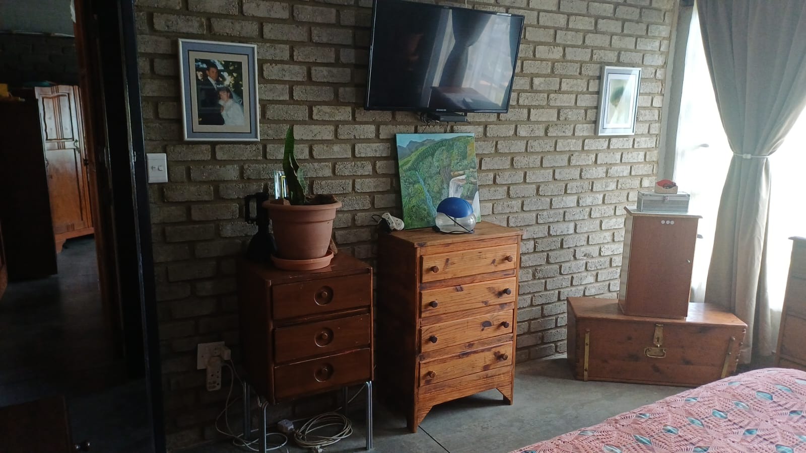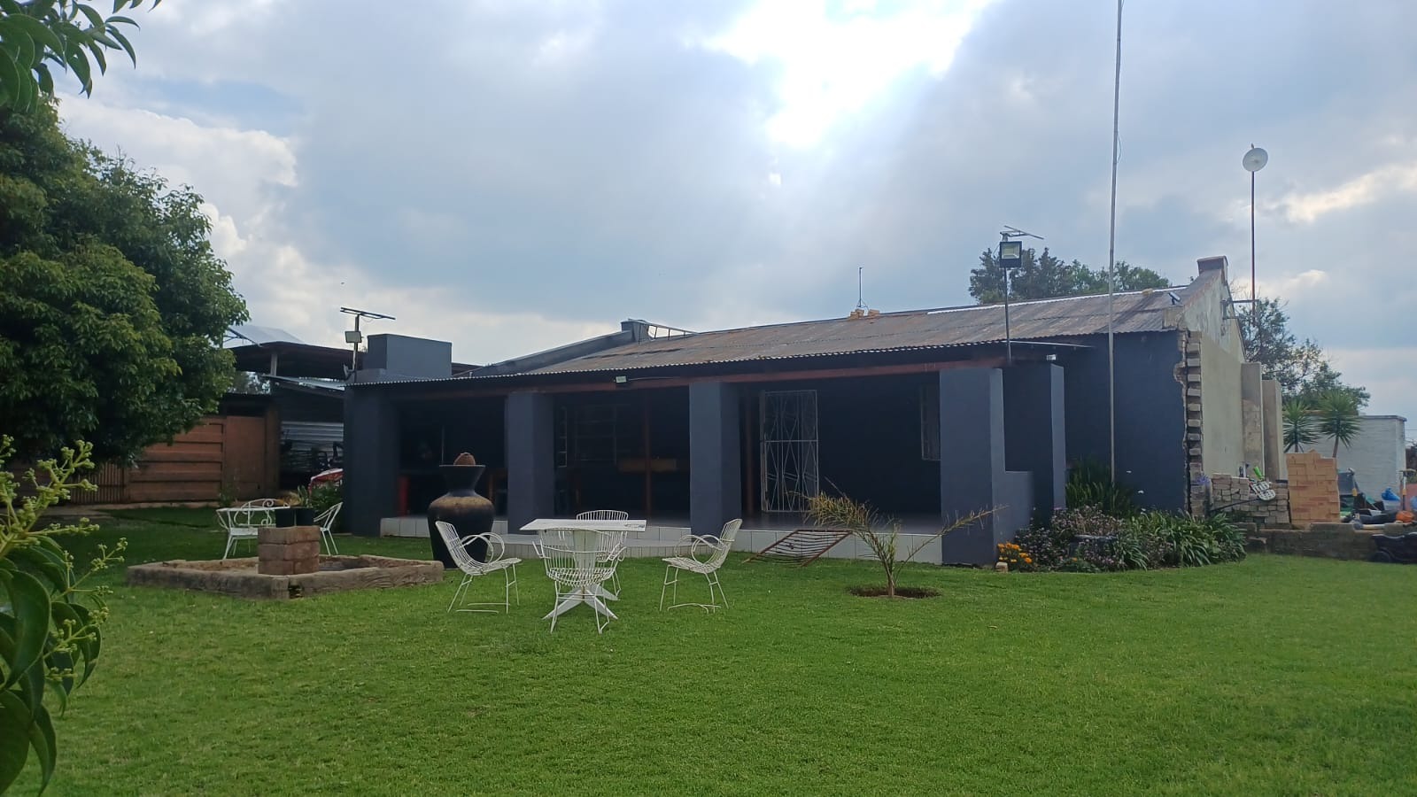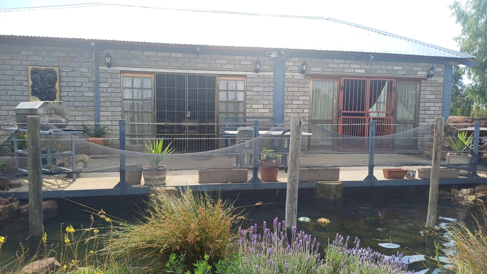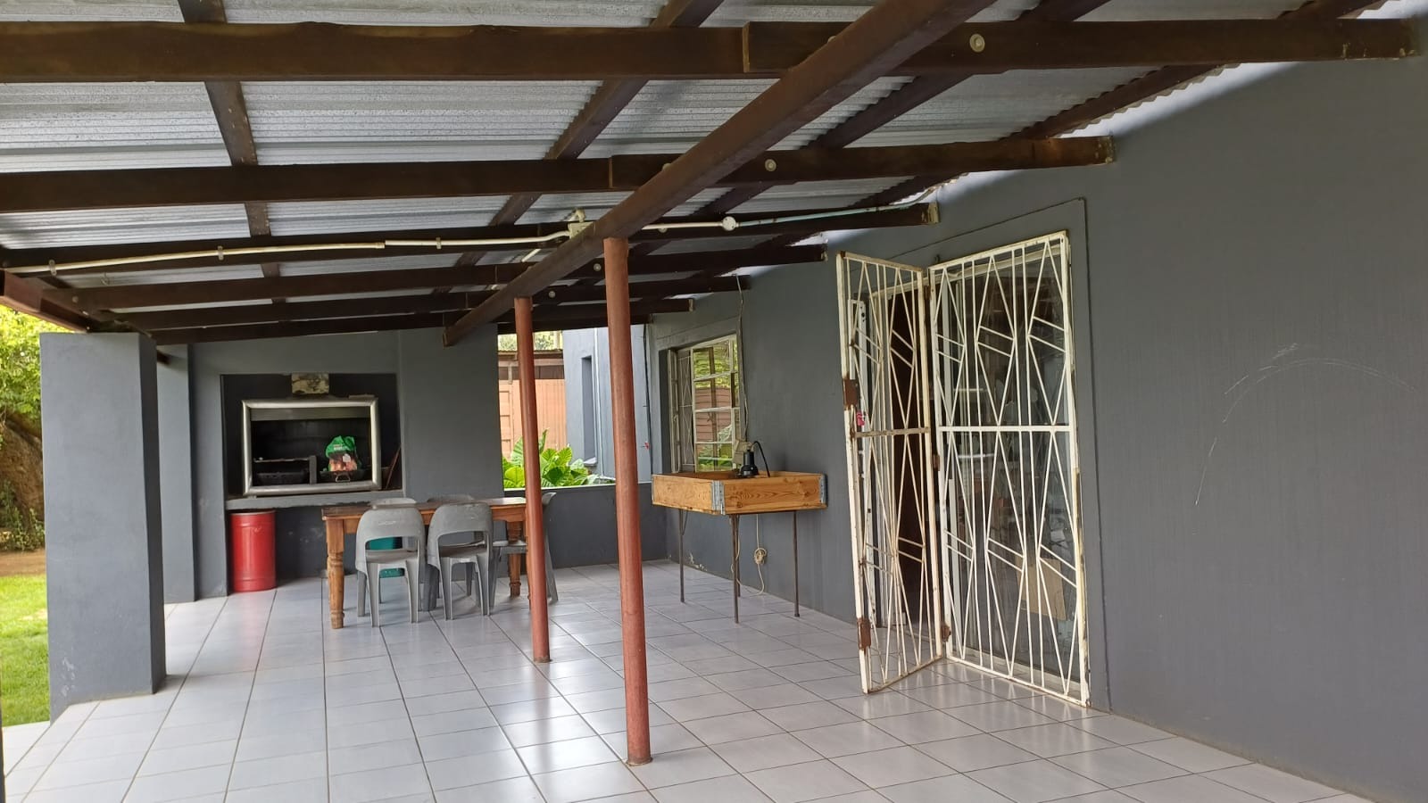 This solid home with a corrugated roof is fully secured with burglar bars and security gates for peace of mind. The exterior is exceptionally neat, complemented by a lush, irrigated garden and a tranquil fishpond. A spacious deck-style patio with a built-in braai provides the perfect setting for entertainment and relaxation. Additional features include a carport for three vehicles and a JoJo tank that overflows into a large dam, forming a unique natural swimming pool ideal for warm summer days.