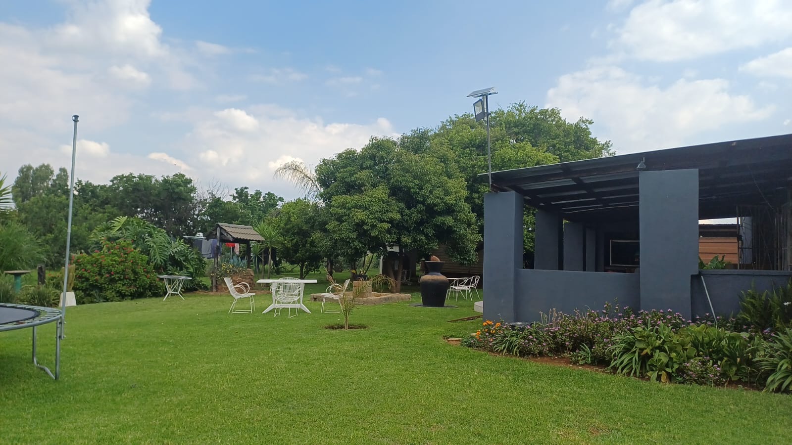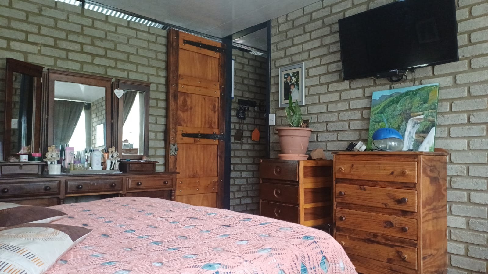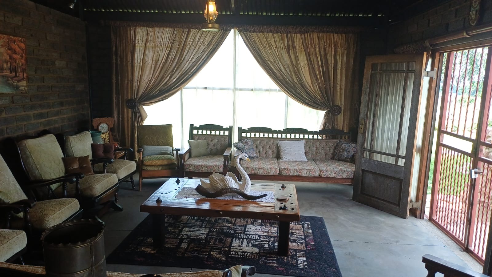 This solid home with a corrugated roof is fully secured with burglar bars and security gates for peace of mind. The exterior is exceptionally neat, complemented by a lush, irrigated garden and a tranquil fishpond. A spacious deck-style patio with a built-in braai provides the perfect setting for entertainment and relaxation. Additional features include a carport for three vehicles and a JoJo tank that overflows into a large dam, forming a unique natural swimming pool ideal for warm summer days.