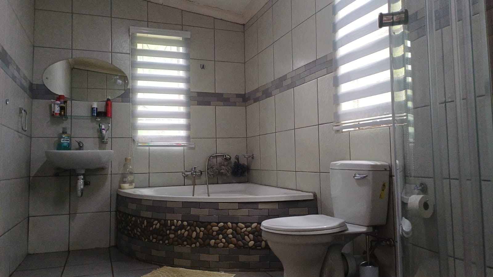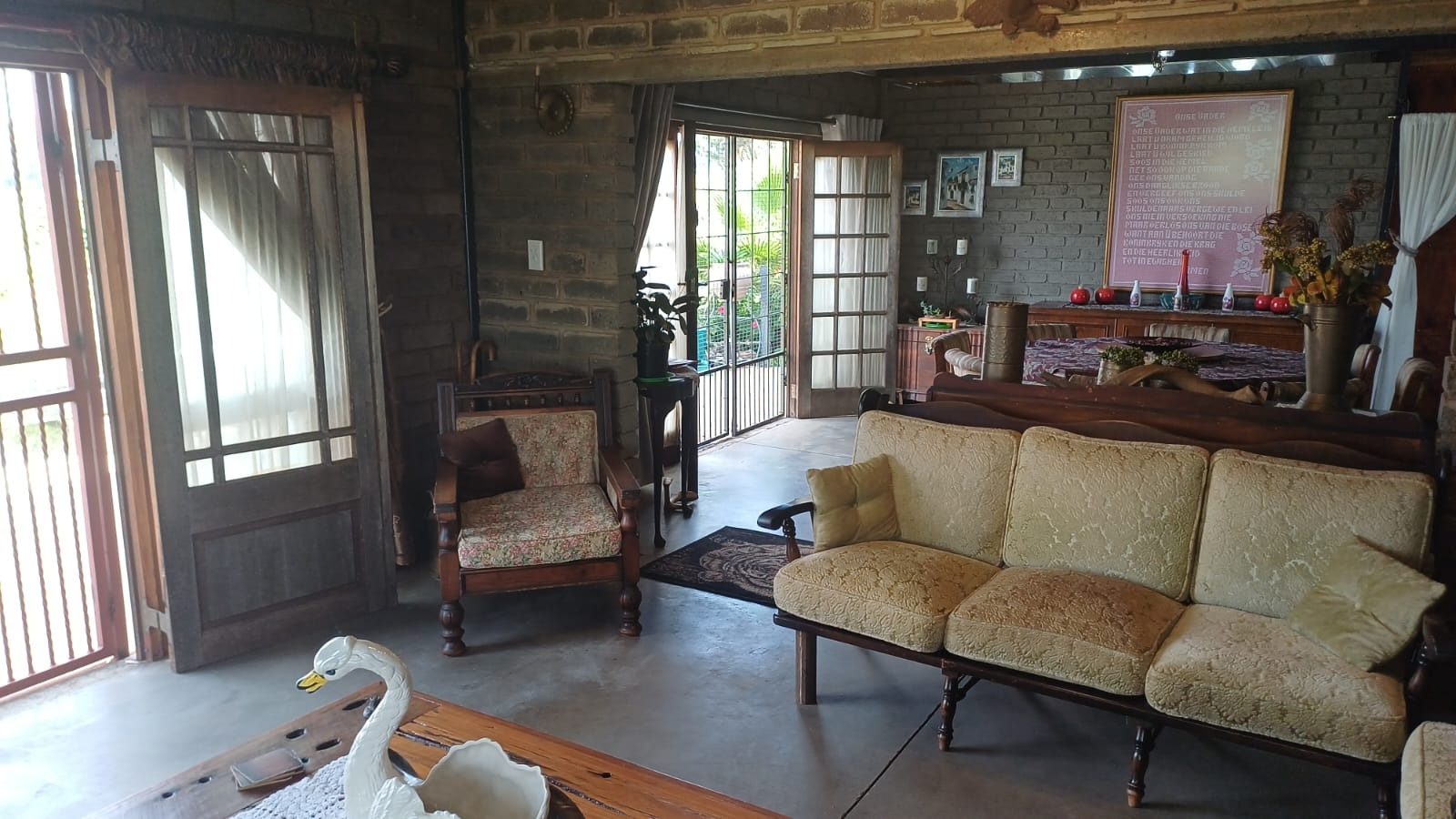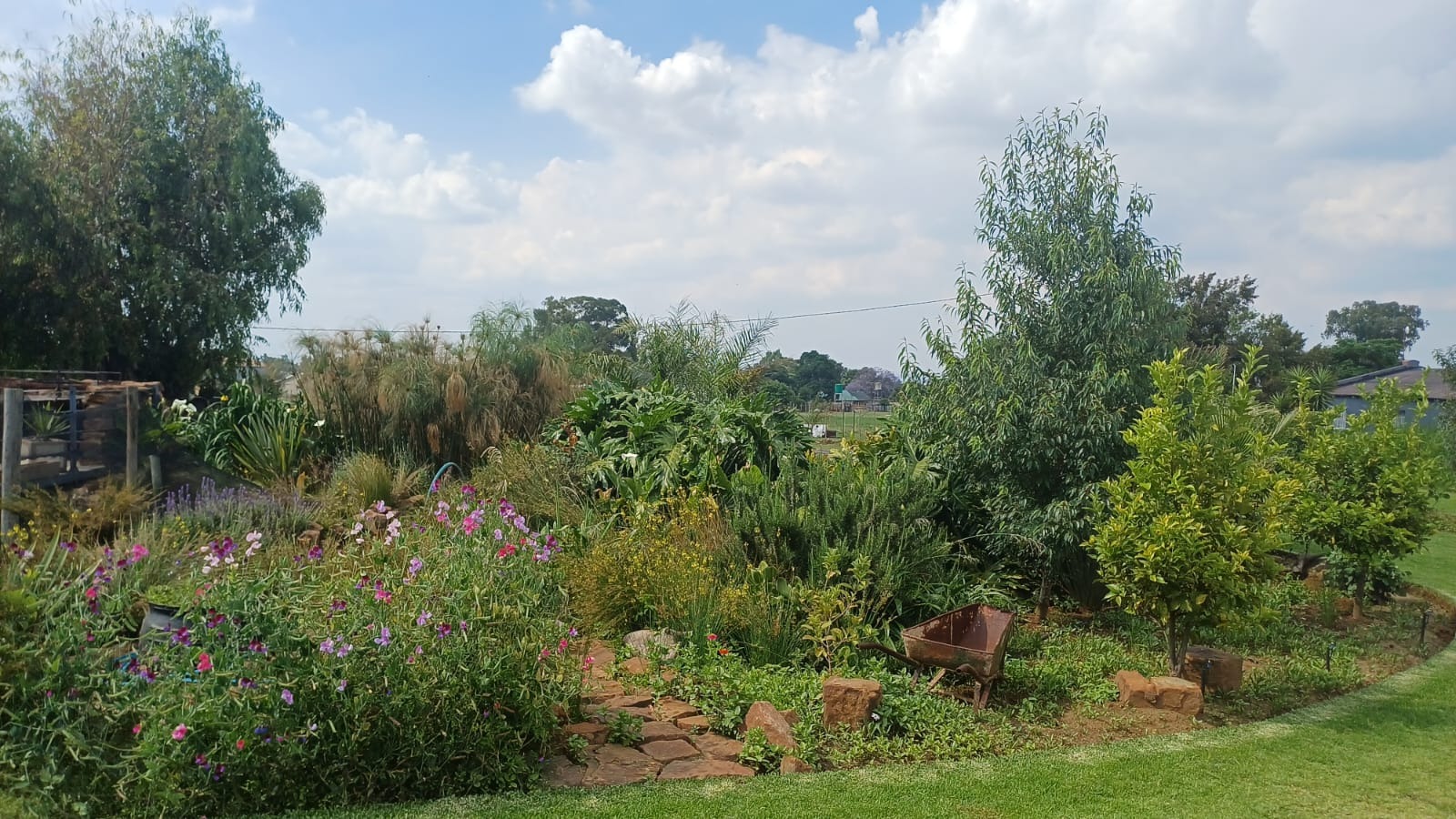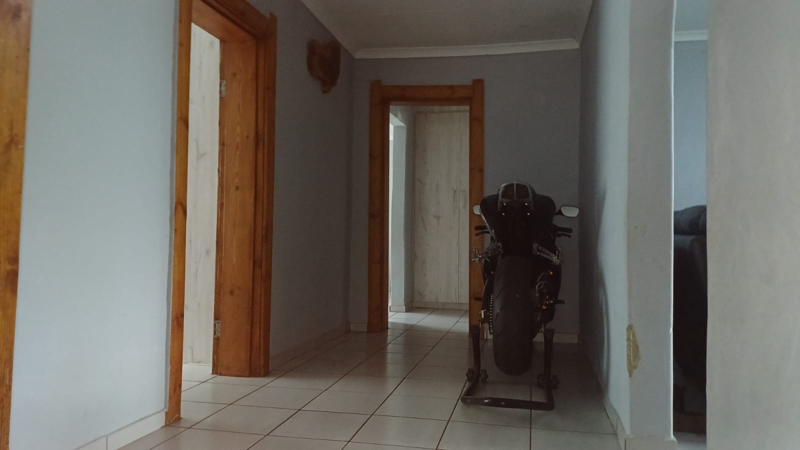 This solid home with a corrugated roof is fully secured with burglar bars and security gates for peace of mind. The exterior is exceptionally neat, complemented by a lush, irrigated garden and a tranquil fishpond. A spacious deck-style patio with a built-in braai provides the perfect setting for entertainment and relaxation. Additional features include a carport for three vehicles and a JoJo tank that overflows into a large dam, forming a unique natural swimming pool ideal for warm summer days.