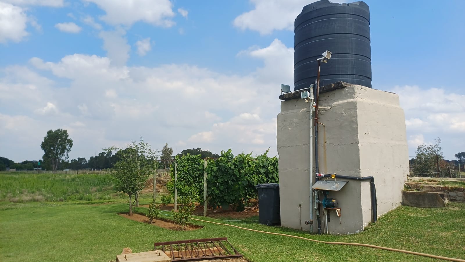 Ideally positioned for mixed farming, the land features fertile soil ideal for planting, and is already divided into camps for livestock and small stock. Approximately 80% of the plot is under irrigation, supported by a strong 42-metre borehole that strikes water at 18 metres. A 5 000-litre tank overflows into a 100 000-litre dam, serviced by an irrigation pump capable of running six to ten sprinklers or two cannon sprayers.