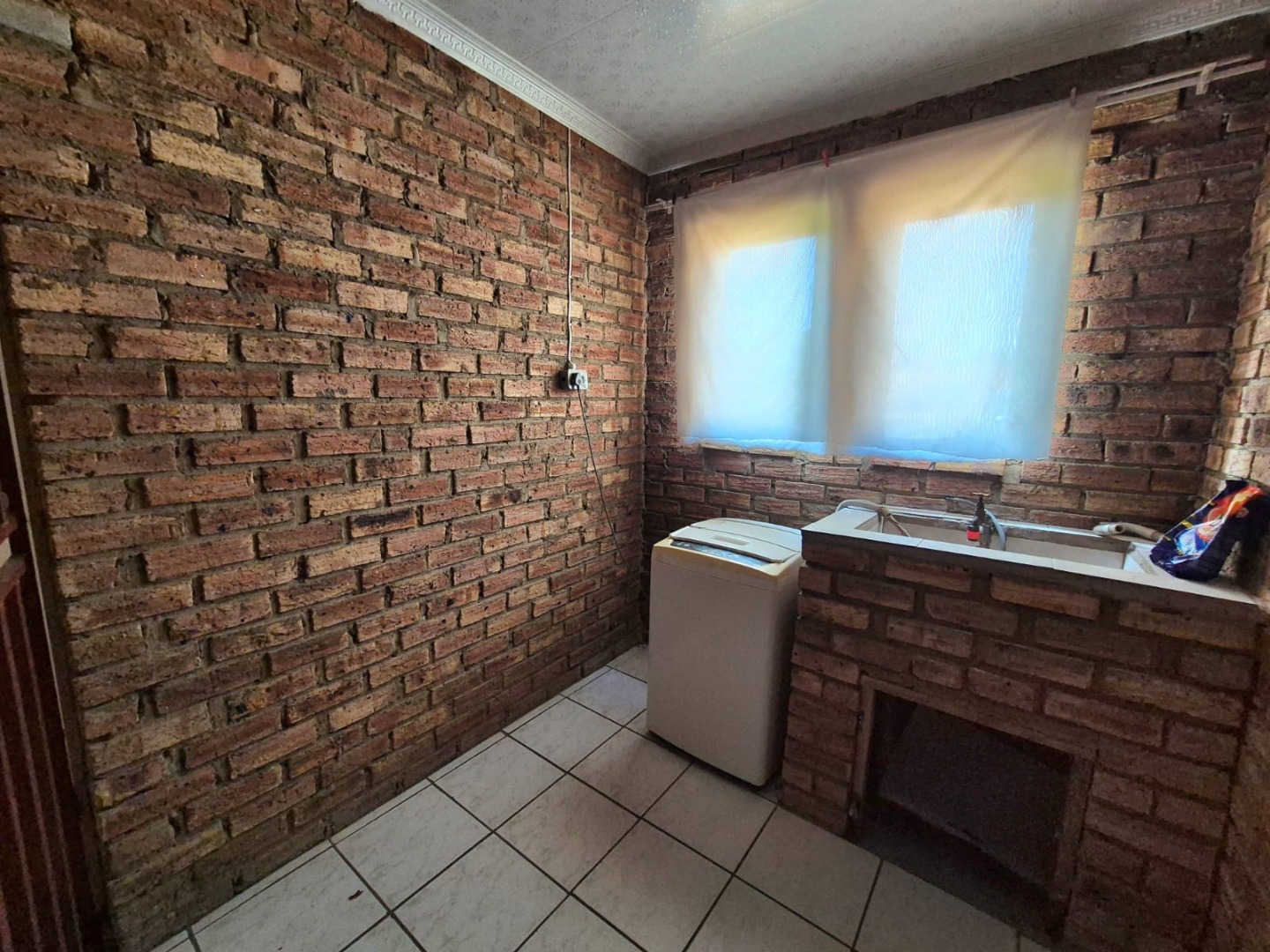 This two-story brick residence in Greenhills Ext 3, Randfontein, offers a substantial 1004 sqm erf, presenting an excellent opportunity for a family home. The exterior features a covered ground-floor patio and an upper balcony, overlooking a generous green yard. A solid wooden front door welcomes you into the interior, where classic parquet flooring and good natural light define the living spaces. The home boasts two spacious lounges, providing ample room for relaxation and entertainment, ready for your personal styling. The kitchen is equipped with modern grey tiled floors, white tiled walls, and contemporary distressed wood-look cabinetry complemented by black countertops. It includes a built-in oven and electric hob, offering a functional and efficient space for culinary activities. The property comprises three comfortable bedrooms, each featuring tiled flooring and natural light, with one benefiting from a built-in mirrored wardrobe. There are two functional bathrooms, complete with tiled floors and partial walls, awaiting a contemporary refresh to suit your taste. Outdoor living is enhanced by the large garden, perfect for children and pets, as this property is pet-friendly. A dedicated utility area with exposed brick walls, tiled flooring, and space for a washing machine and sink adds practicality. Security is well-addressed with a fully walled perimeter, fence, access gate, security gate, and burglar bars throughout. Parking includes a single garage and additional open parking space. Located in a suburban setting, this property provides a peaceful environment while being conveniently situated in Randfontein. It represents a fantastic chance for new homeowners or investors to acquire a well-structured home with significant potential for modernization and personalization, transforming it into your dream residence. Key Features: * 3 Bedrooms, 2 Bathrooms * 2 Spacious Lounges * Modern Kitchen with Built-in Oven & Hob * Single Garage & Additional Parking * Generous 1004 sqm Erf with Garden * Covered Patio & Upper Balcony * Secure with Fence, Access Gate, Burglar Bars * Dedicated Utility Area * Pet-Friendly Property