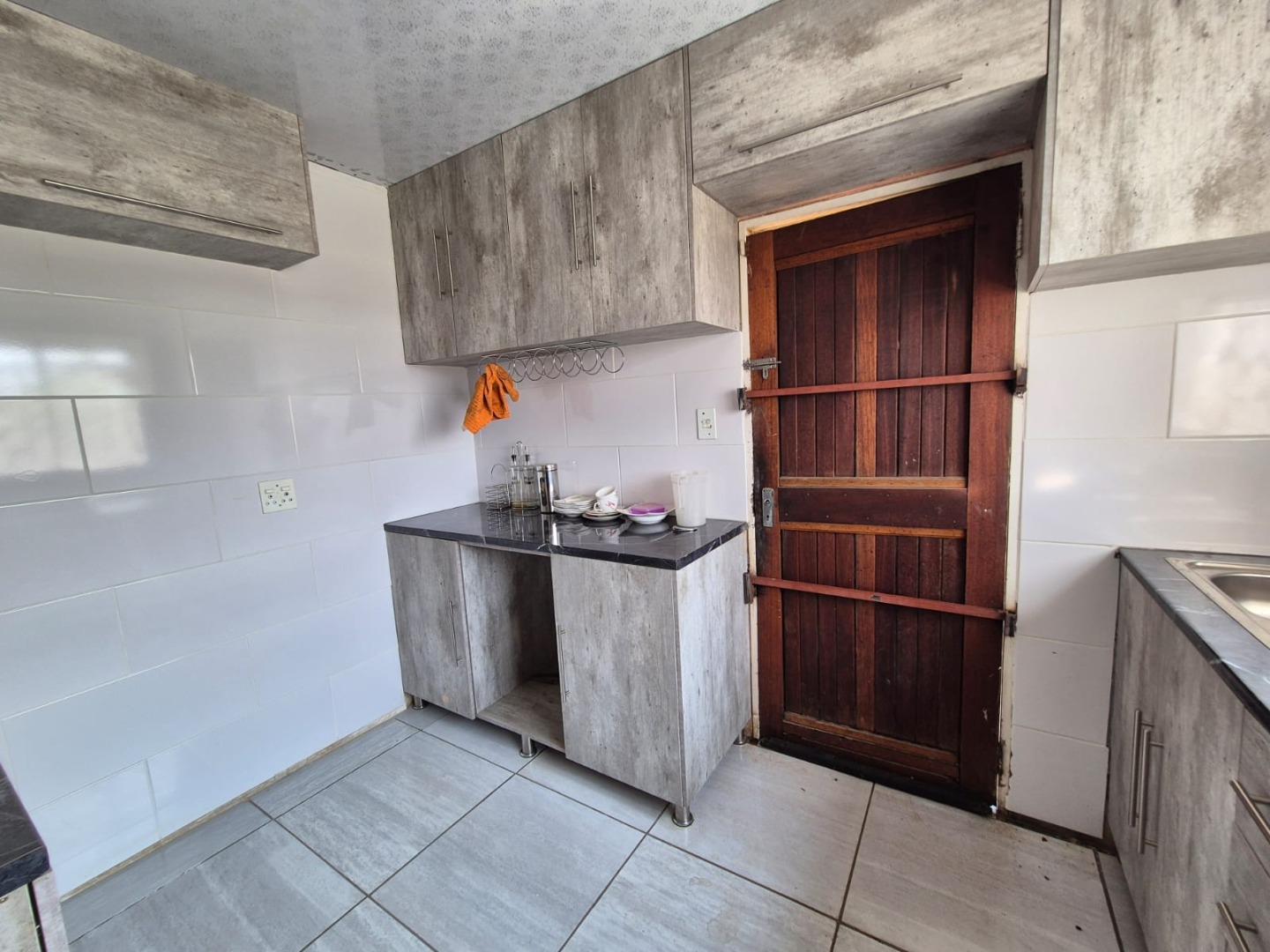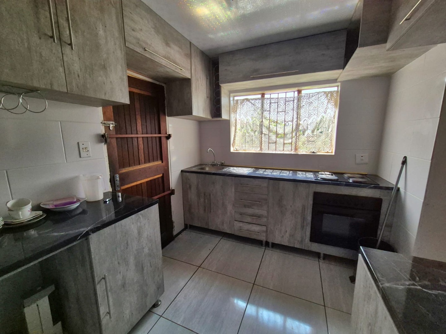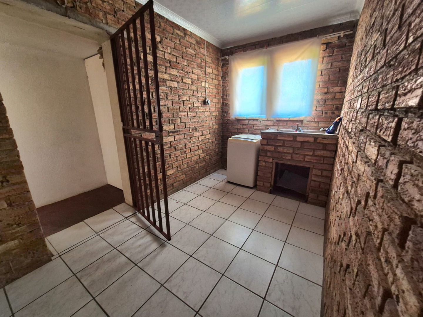 This two-story brick residence in Greenhills Ext 3, Randfontein, offers a substantial 1004 sqm erf, presenting an excellent opportunity for a family home. The exterior features a covered ground-floor patio and an upper balcony, overlooking a generous green yard. A solid wooden front door welcomes you into the interior, where classic parquet flooring and good natural light define the living spaces. The home boasts two spacious lounges, providing ample room for relaxation and entertainment, ready for your personal styling. The kitchen is equipped with modern grey tiled floors, white tiled walls, and contemporary distressed wood-look cabinetry complemented by black countertops. It includes a built-in oven and electric hob, offering a functional and efficient space for culinary activities. The property comprises three comfortable bedrooms, each featuring tiled flooring and natural light, with one benefiting from a built-in mirrored wardrobe. There are two functional bathrooms, complete with tiled floors and partial walls, awaiting a contemporary refresh to suit your taste. Outdoor living is enhanced by the large garden, perfect for children and pets, as this property is pet-friendly. A dedicated utility area with exposed brick walls, tiled flooring, and space for a washing machine and sink adds practicality. Security is well-addressed with a fully walled perimeter, fence, access gate, security gate, and burglar bars throughout. Parking includes a single garage and additional open parking space. Located in a suburban setting, this property provides a peaceful environment while being conveniently situated in Randfontein. It represents a fantastic chance for new homeowners or investors to acquire a well-structured home with significant potential for modernization and personalization, transforming it into your dream residence. Key Features: * 3 Bedrooms, 2 Bathrooms * 2 Spacious Lounges * Modern Kitchen with Built-in Oven & Hob * Single Garage & Additional Parking * Generous 1004 sqm Erf with Garden * Covered Patio & Upper Balcony * Secure with Fence, Access Gate, Burglar Bars * Dedicated Utility Area * Pet-Friendly Property