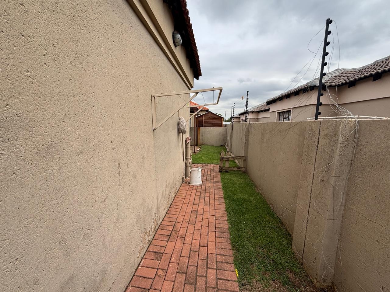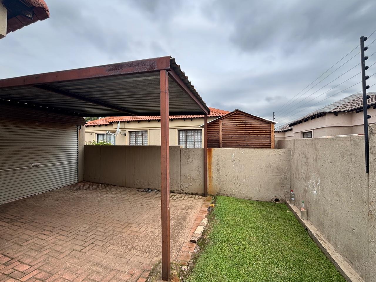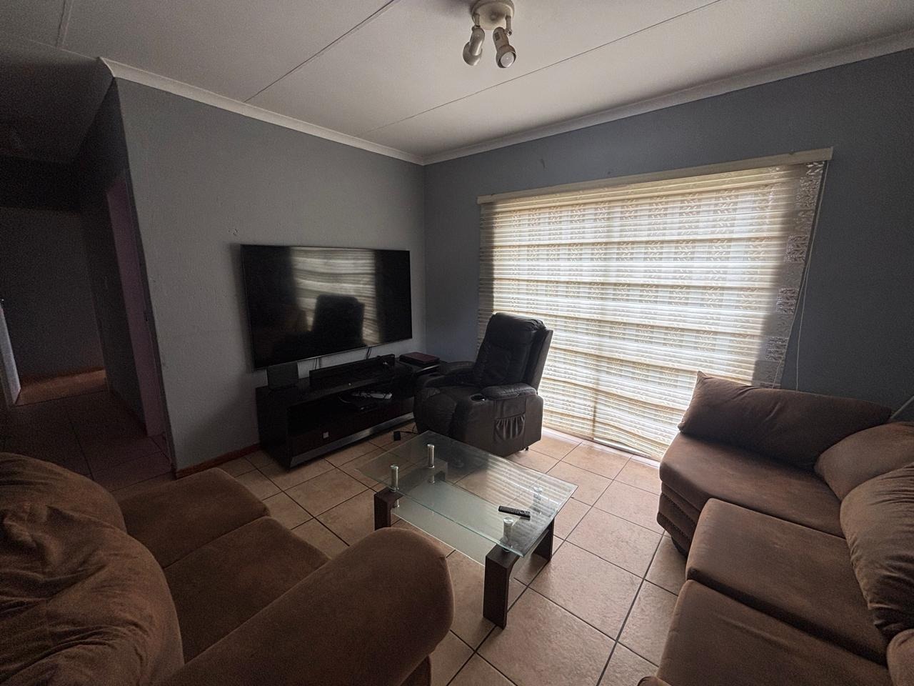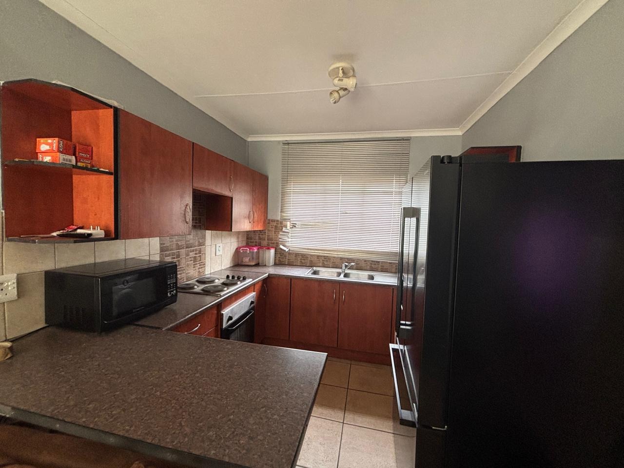 Discover this inviting 3-bedroom, 2-bathroom home situated within a secure gated community in Greenhills Ext 3, Randfontein. This single-story residence features a beige exterior with a durable tiled roof. An integrated single garage, paved driveway, and security bars on windows and the front door ensure peace of mind. Step inside to a functional layout. The main living area boasts tiled flooring and a large window, providing natural light. A portion of a kitchen counter suggests an open-plan flow, ideal for modern lifestyles. The kitchen is equipped with wood-look cabinetry, dark countertops, and essential appliances, offering practical storage. An integrated washing machine and a modern black refrigerator enhance its functionality. The home comprises three well-proportioned bedrooms, each offering a private retreat. Bedrooms feature either wooden laminate or hardwood flooring and benefit from natural light. One bedroom includes a built-in wardrobe for convenient storage. The two bathrooms are fully tiled for easy maintenance, with one featuring a bathtub, providing essential amenities for the household. This property is part of a security complex and estate, benefiting from an access gate and electric fencing, reinforcing its secure environment. Fibre connectivity is available, catering to modern communication needs. Pets are allowed, and the property includes a garden area, offering a suburban lifestyle with convenient access to local amenities. Key Features: * 3 Bedrooms, 2 Bathrooms (1 Ensuite) * Integrated Single Garage & Paved Driveway * Secure Gated Community & Security Estate * Fibre Connectivity Available * Tiled & Laminate Flooring * Functional Kitchen with Ample Storage * Garden Area & Pet-Friendly * 69 sqm Floor Size, 15 ha Erf Size