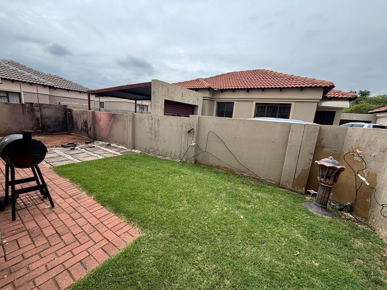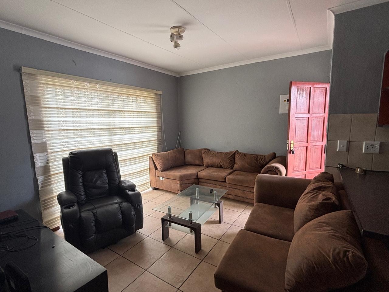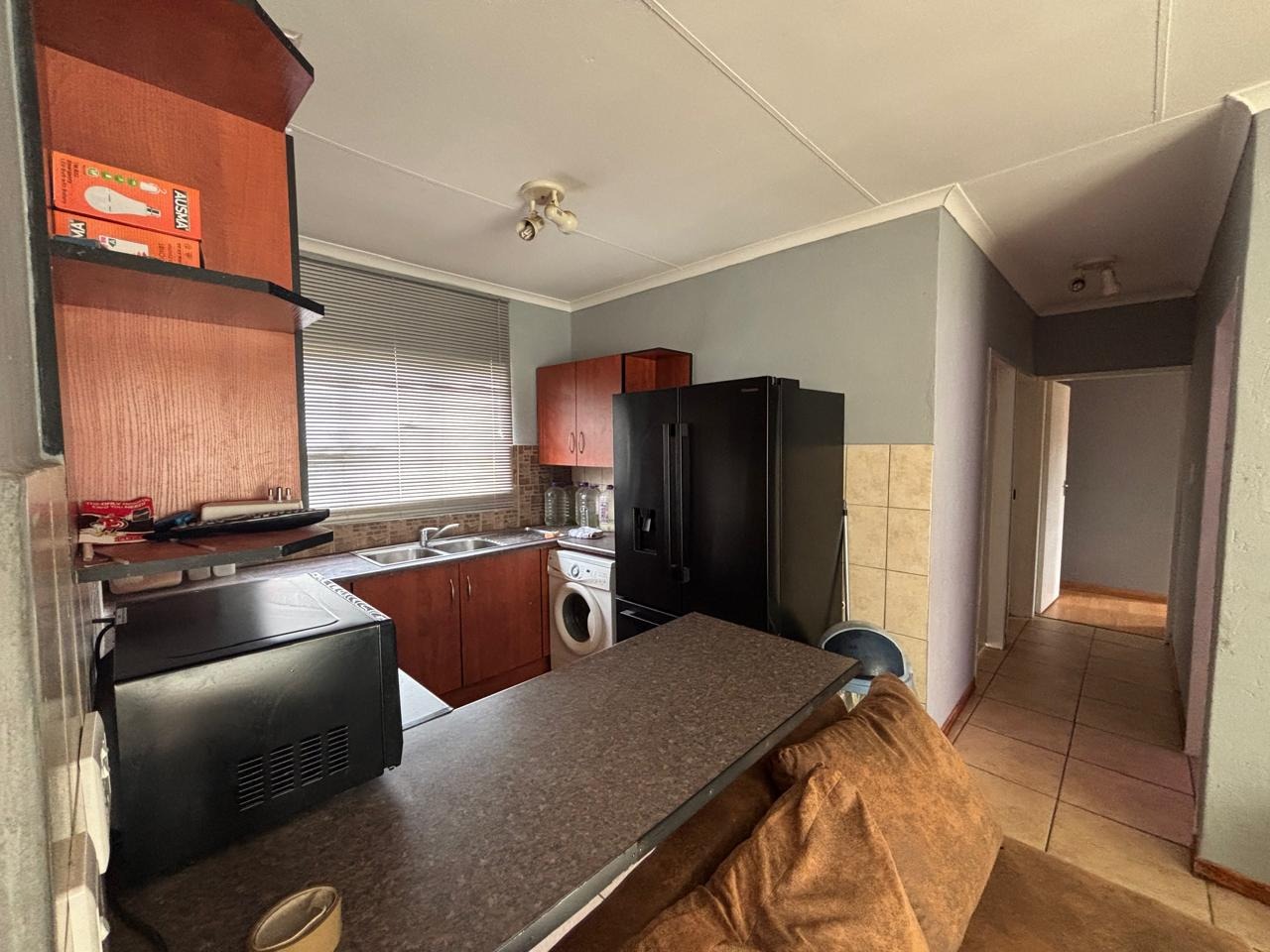 Discover this inviting 3-bedroom, 2-bathroom home situated within a secure gated community in Greenhills Ext 3, Randfontein. This single-story residence features a beige exterior with a durable tiled roof. An integrated single garage, paved driveway, and security bars on windows and the front door ensure peace of mind. Step inside to a functional layout. The main living area boasts tiled flooring and a large window, providing natural light. A portion of a kitchen counter suggests an open-plan flow, ideal for modern lifestyles. The kitchen is equipped with wood-look cabinetry, dark countertops, and essential appliances, offering practical storage. An integrated washing machine and a modern black refrigerator enhance its functionality. The home comprises three well-proportioned bedrooms, each offering a private retreat. Bedrooms feature either wooden laminate or hardwood flooring and benefit from natural light. One bedroom includes a built-in wardrobe for convenient storage. The two bathrooms are fully tiled for easy maintenance, with one featuring a bathtub, providing essential amenities for the household. This property is part of a security complex and estate, benefiting from an access gate and electric fencing, reinforcing its secure environment. Fibre connectivity is available, catering to modern communication needs. Pets are allowed, and the property includes a garden area, offering a suburban lifestyle with convenient access to local amenities. Key Features: * 3 Bedrooms, 2 Bathrooms (1 Ensuite) * Integrated Single Garage & Paved Driveway * Secure Gated Community & Security Estate * Fibre Connectivity Available * Tiled & Laminate Flooring * Functional Kitchen with Ample Storage * Garden Area & Pet-Friendly * 69 sqm Floor Size, 15 ha Erf Size