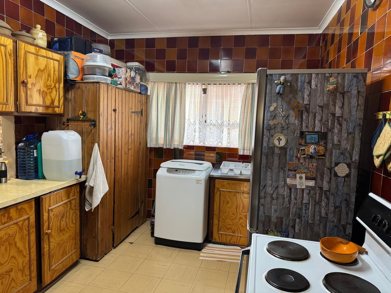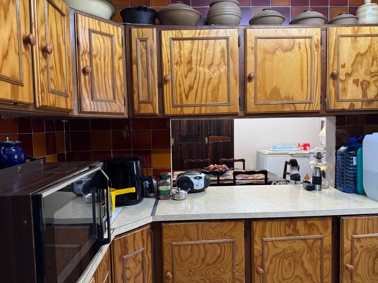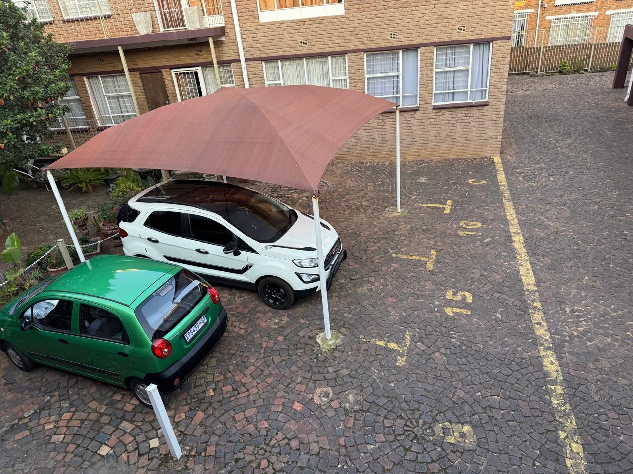 The fully tiled bathroom is neat and functional, complete with a bath, basin, and toilet. A well-appointed kitchen offers ample cupboard space and generous work surfaces, making meal preparation a pleasure. Outside, a dedicated carport ensures safe parking, while an added security alarm system enhances peace of mind for residents.
