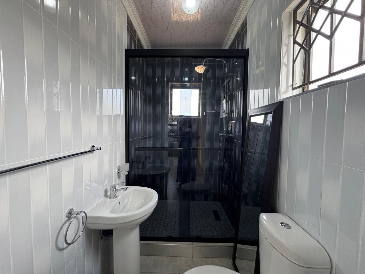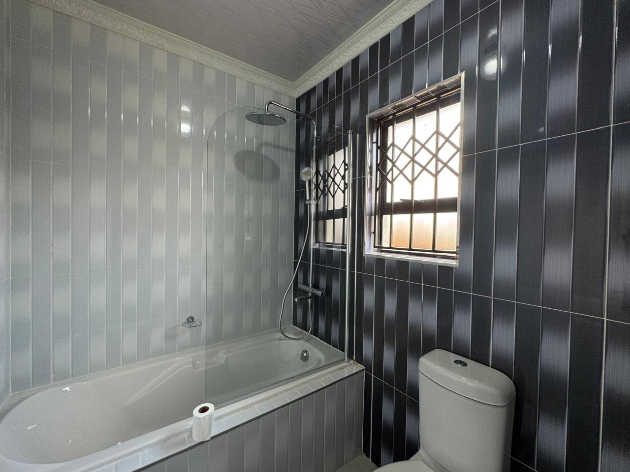 Externally, the property benefits from a single garage and an additional parking space on a paved driveway, offering convenient vehicle accommodation. Security is a key feature, with robust burglar bars on windows and a main security gate providing peace of mind. The property is totally walled, enhancing privacy and safety within this suburban setting.
