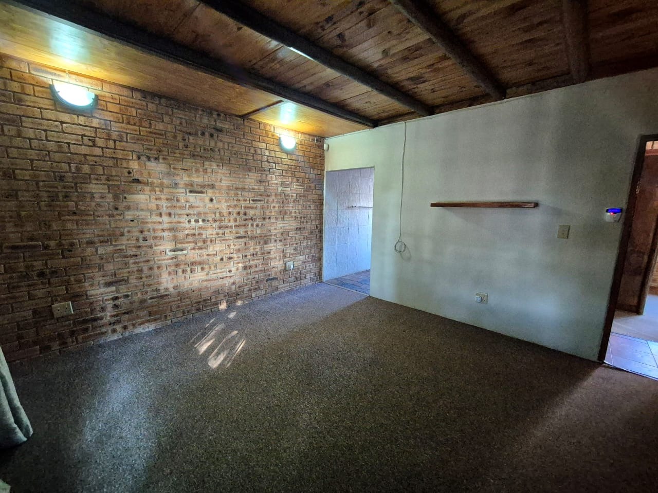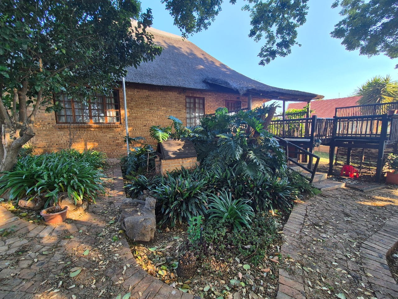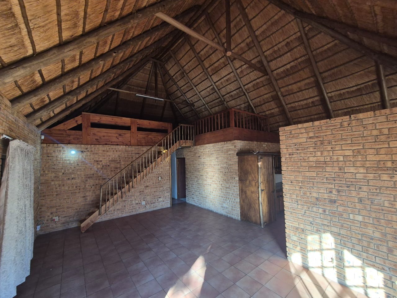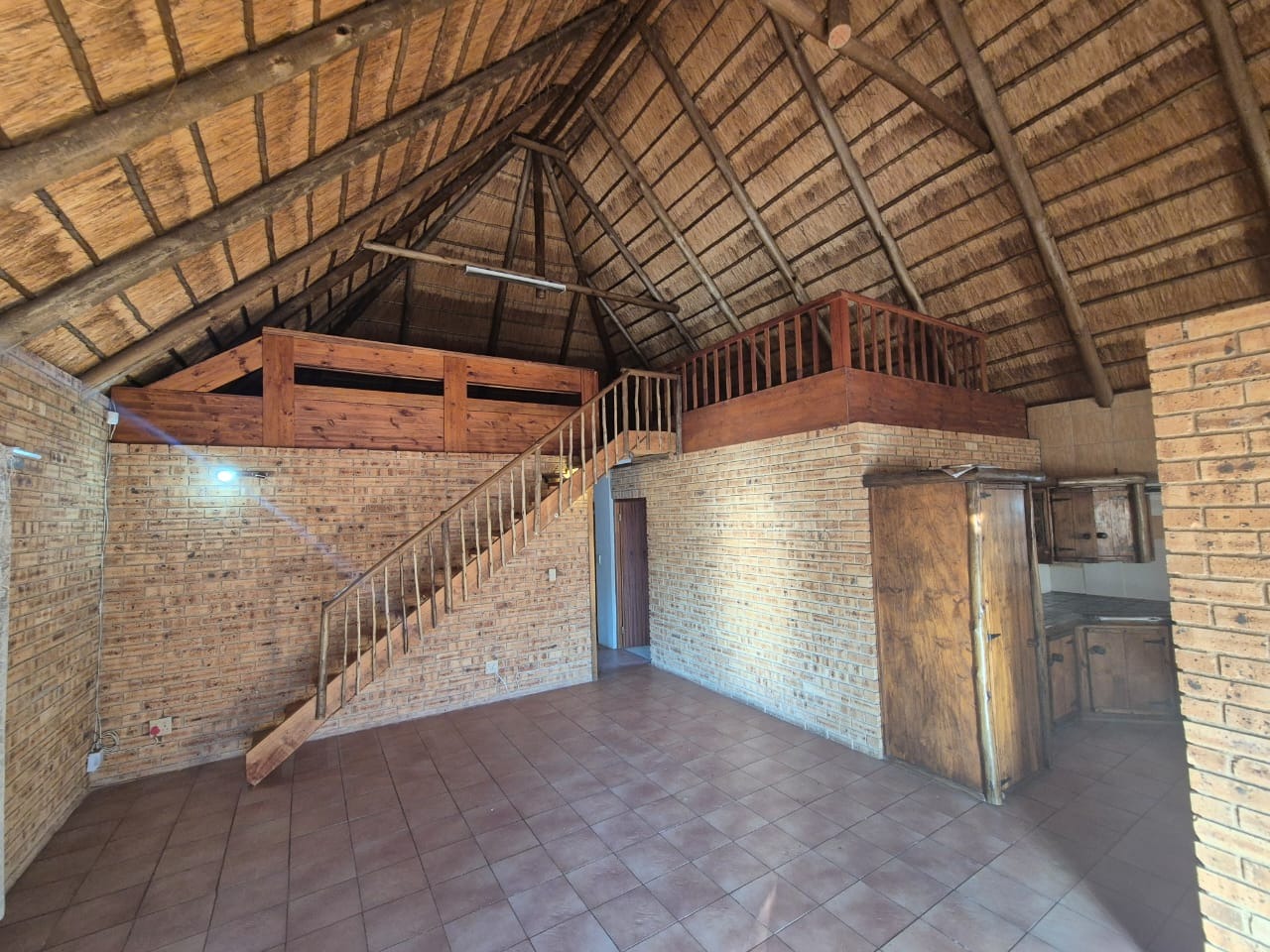 This warm and inviting thatch home in the heart of Greenhills offers a relaxed lifestyle with open-plan living and seamless indoor-outdoor flow. The spacious lounge and dining area feature tiled floors and connect effortlessly to a well-equipped kitchen with ample cupboard space, an eye-level oven, hob, extractor fan, and a separate scullery for convenience.