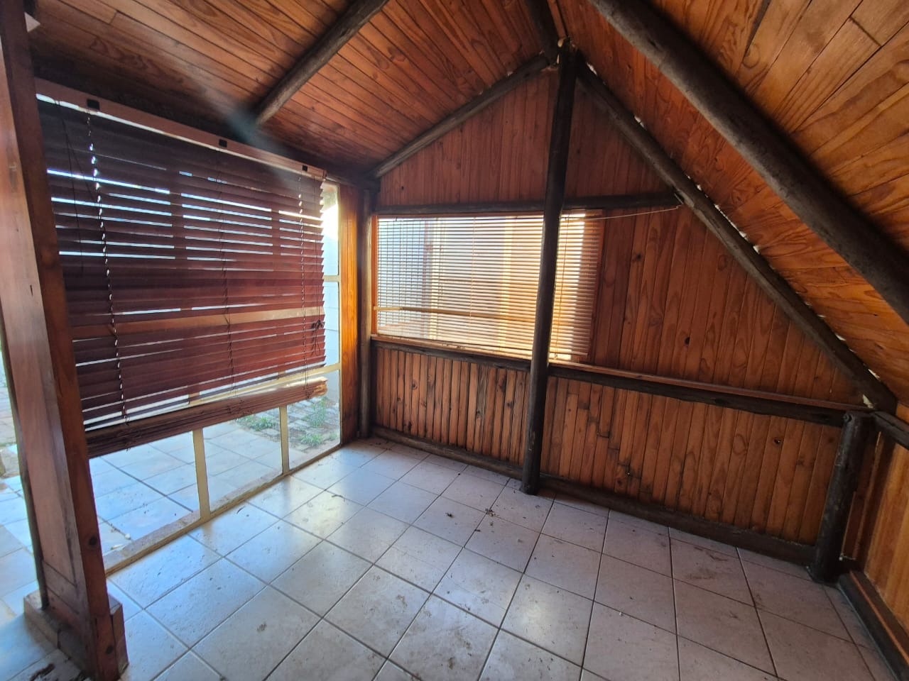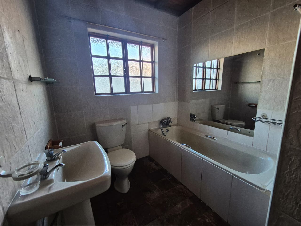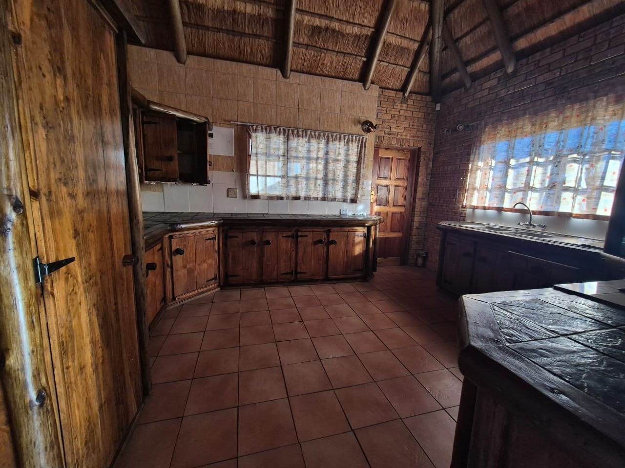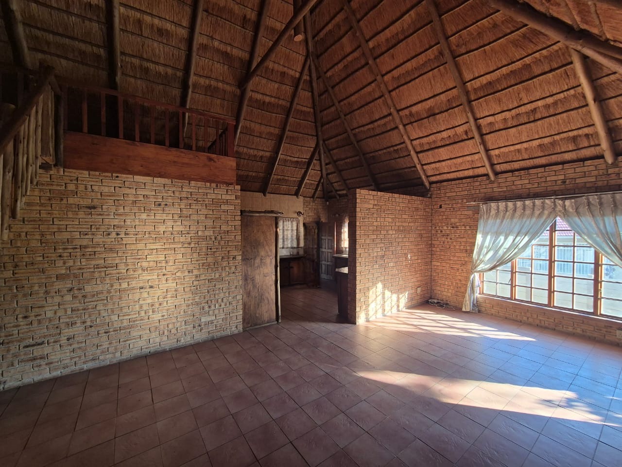 This warm and inviting thatch home in the heart of Greenhills offers a relaxed lifestyle with open-plan living and seamless indoor-outdoor flow. The spacious lounge and dining area feature tiled floors and connect effortlessly to a well-equipped kitchen with ample cupboard space, an eye-level oven, hob, extractor fan, and a separate scullery for convenience.