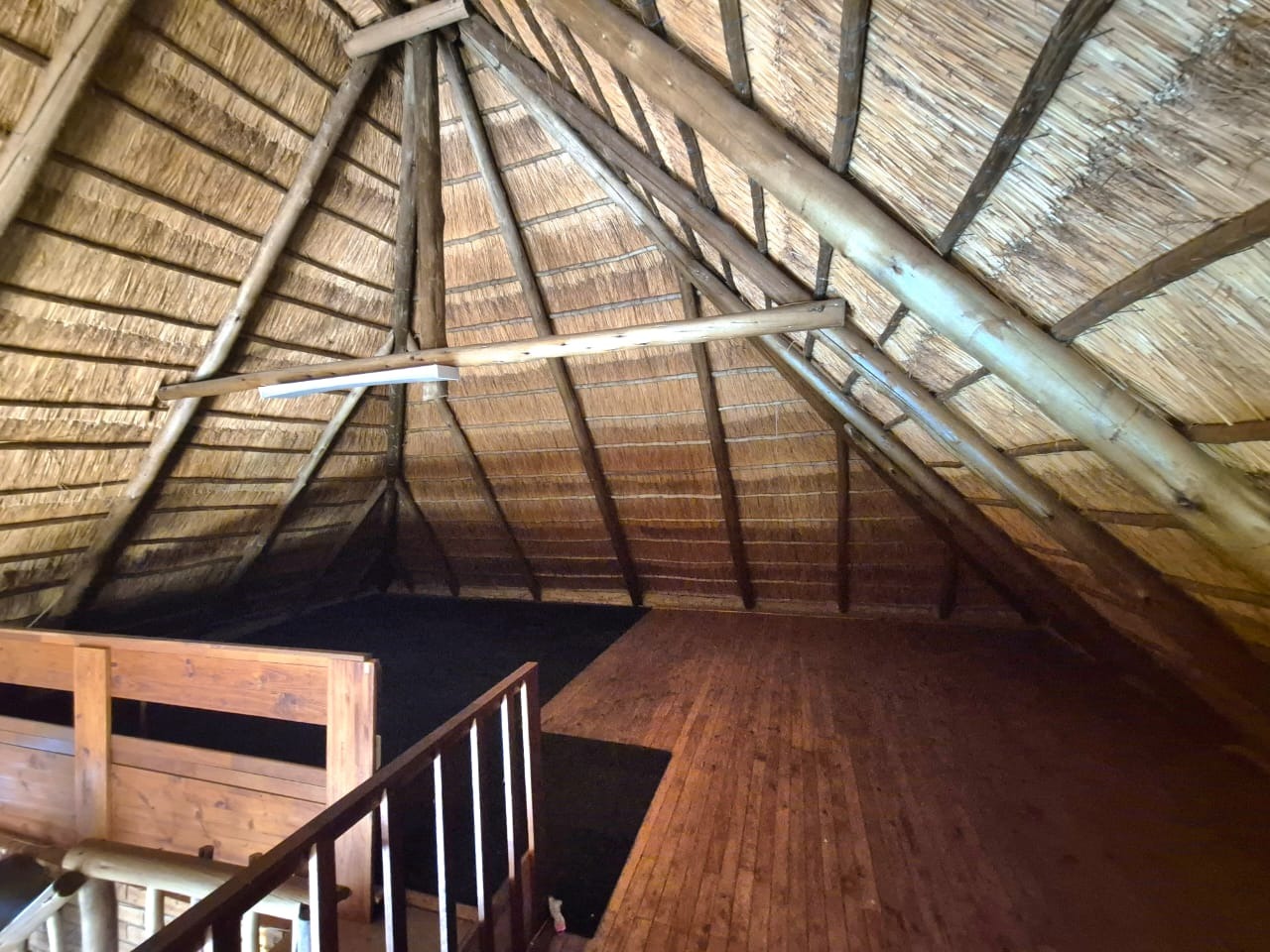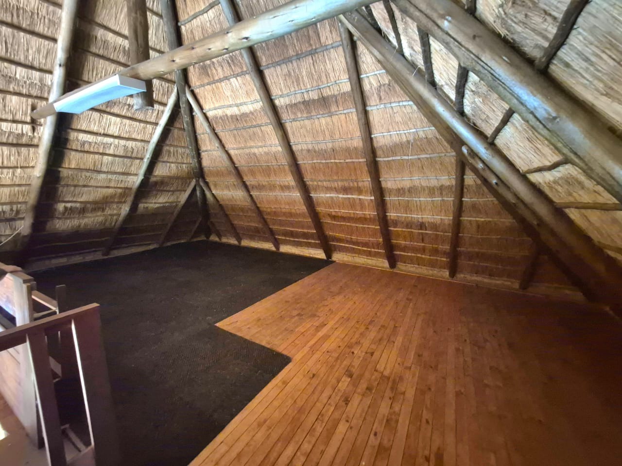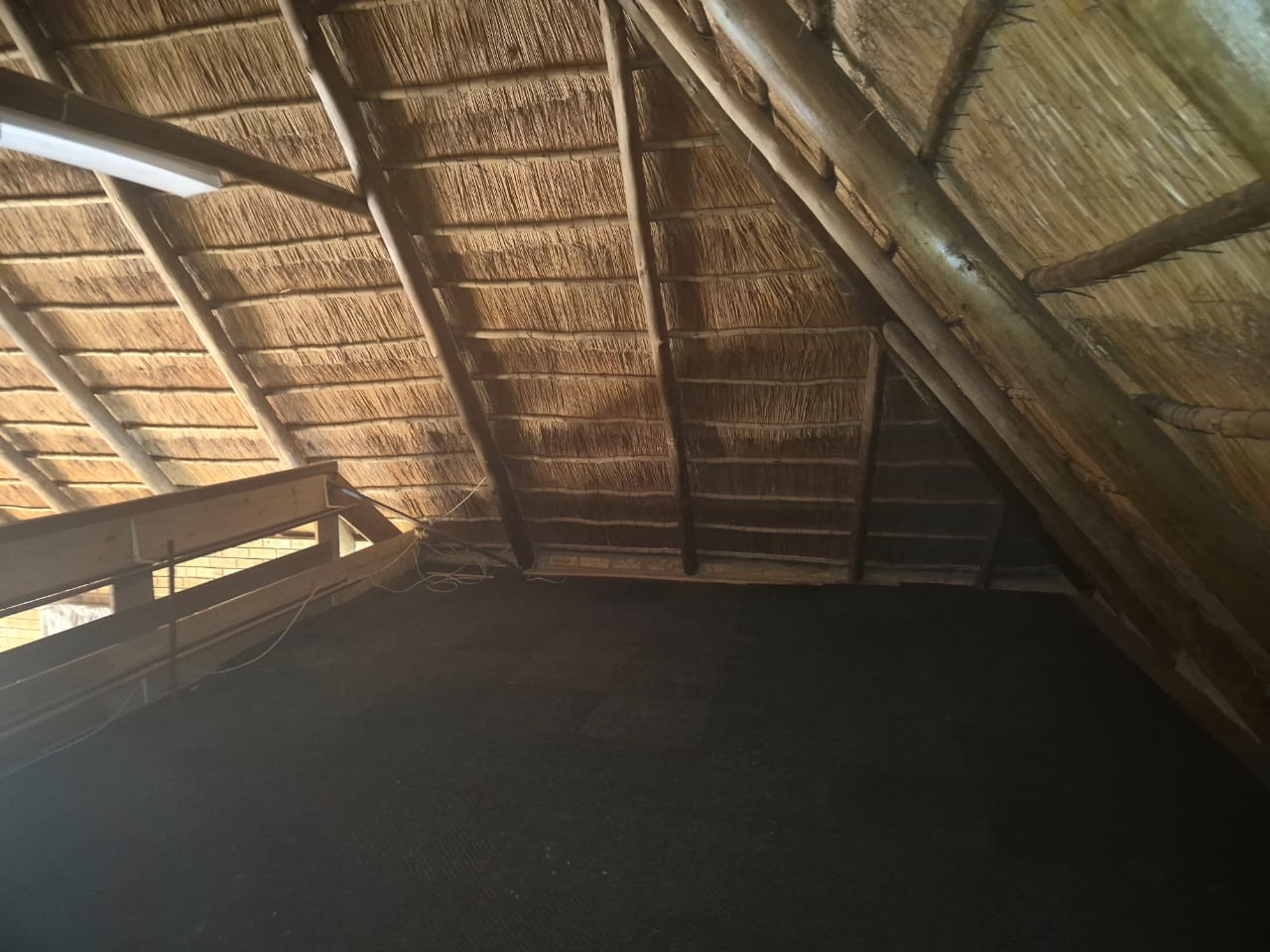 A light-filled loft adds flexibility — ideal as a third bedroom, home office, or creative space. Outside, an entertainment deck overlooks the lush, well-kept garden, creating a tranquil setting for gatherings or quiet evenings under the thatch canopy.