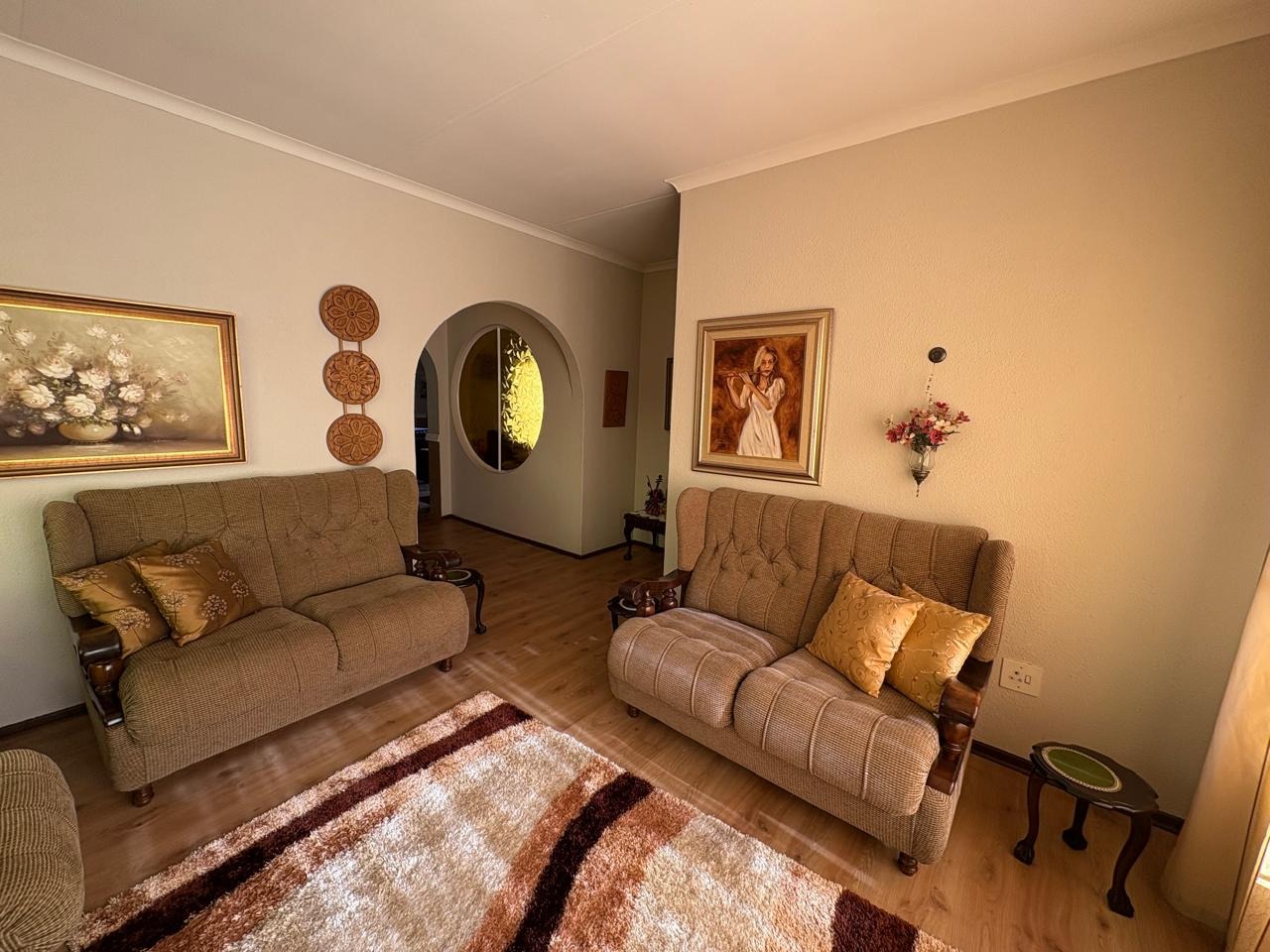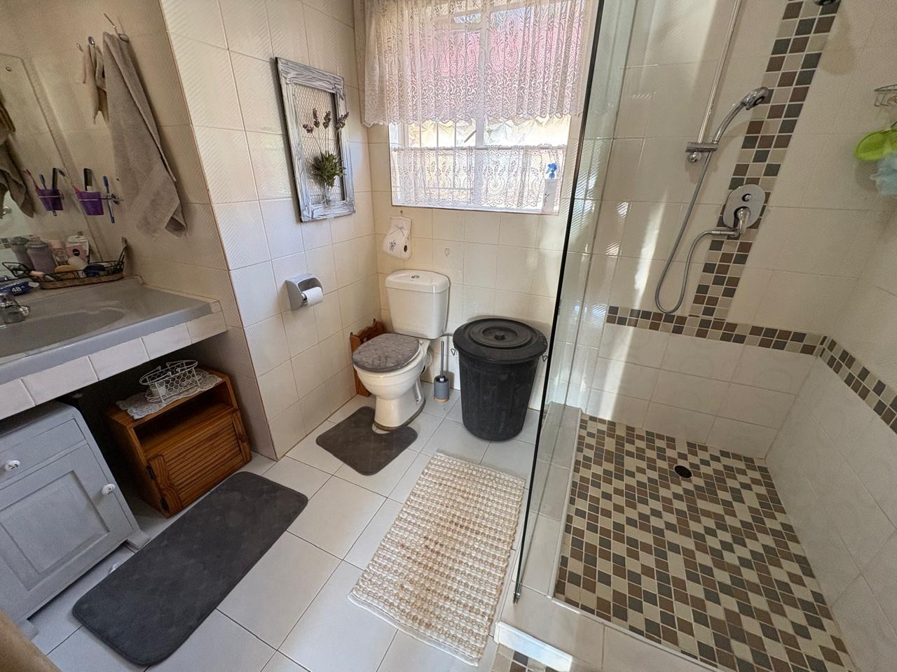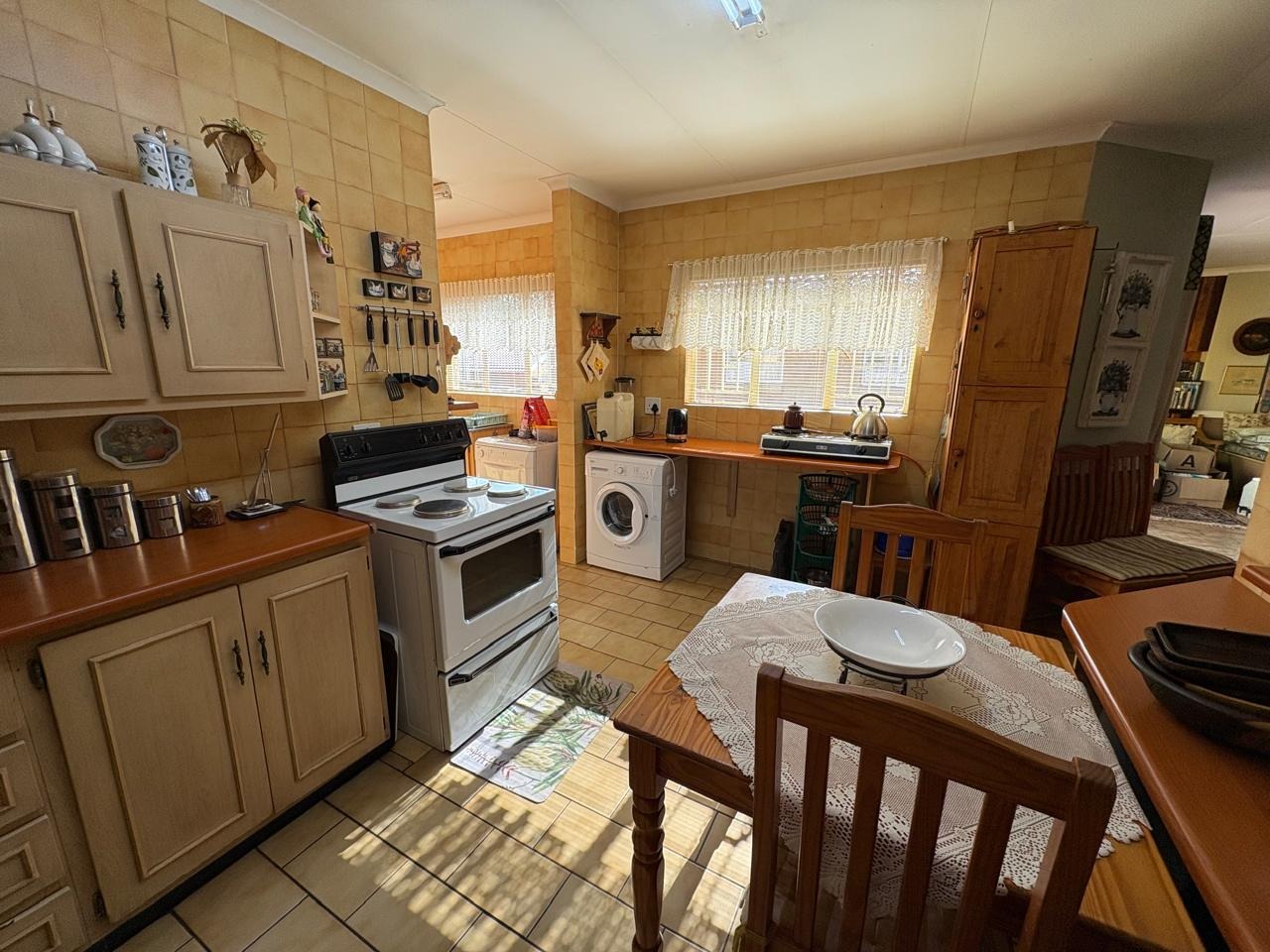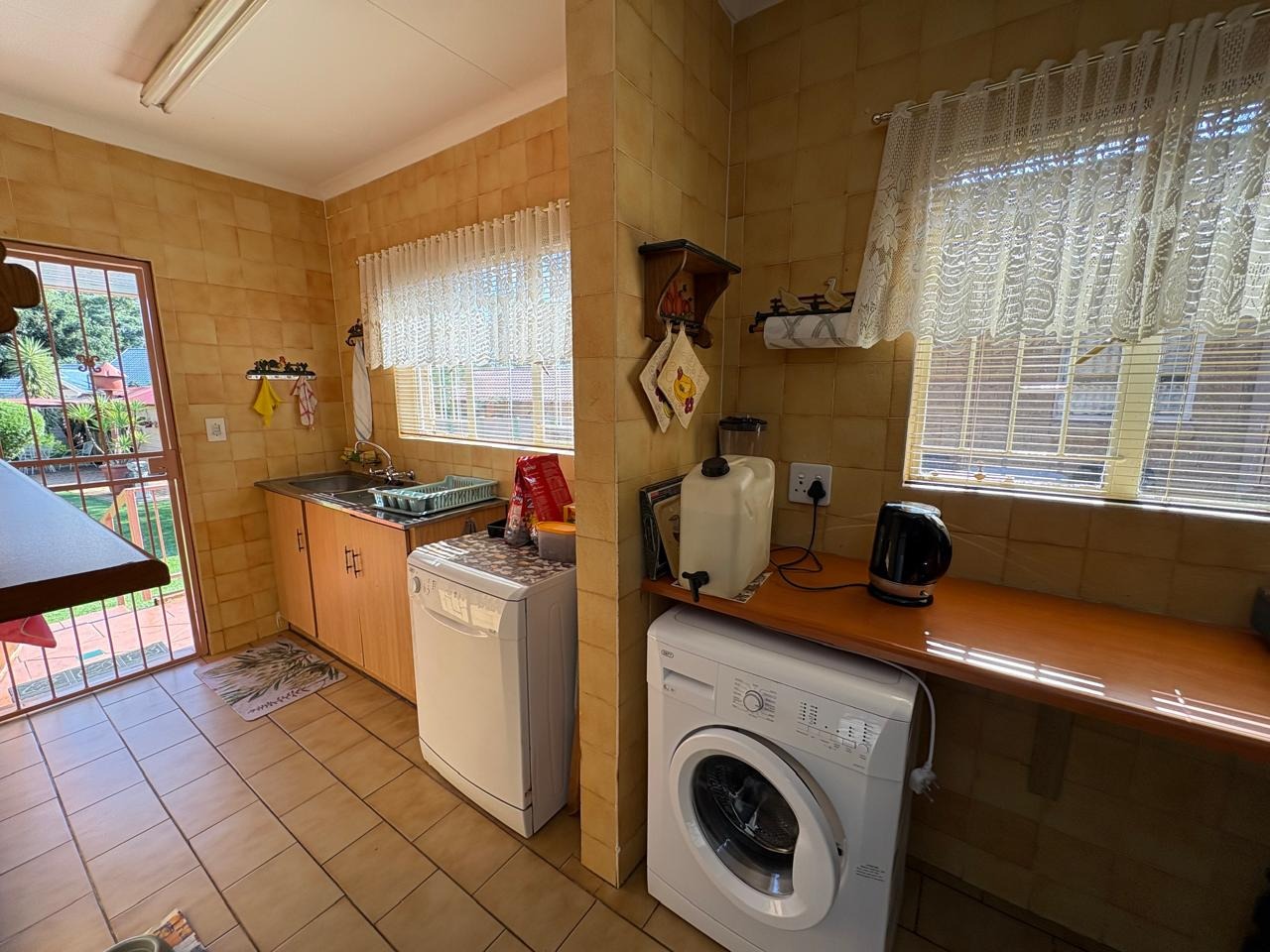 This well-maintained three-bedroom home is the perfect blend of comfort, space, and practicality. Each of the three spacious bedrooms is fitted with carpets, built-in cupboards, and curtain rails, providing a cozy and functional living environment for the entire family. The kitchen is neatly tiled and equipped with built-in cupboards, a gas geyser, and dedicated connections for both a washing machine and dishwasher, ensuring everyday convenience.