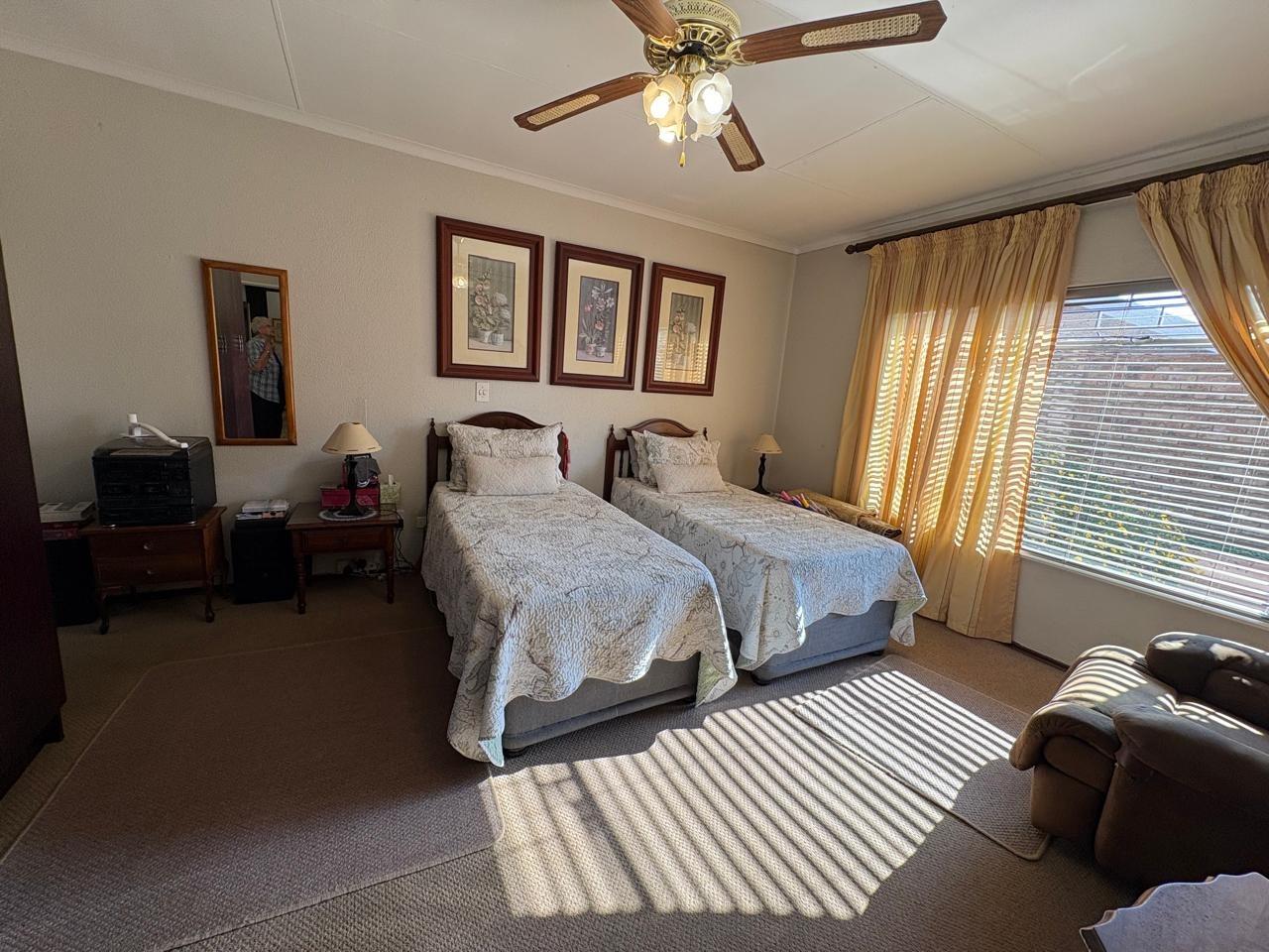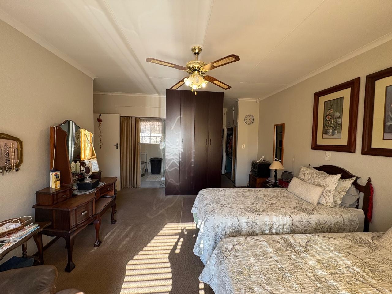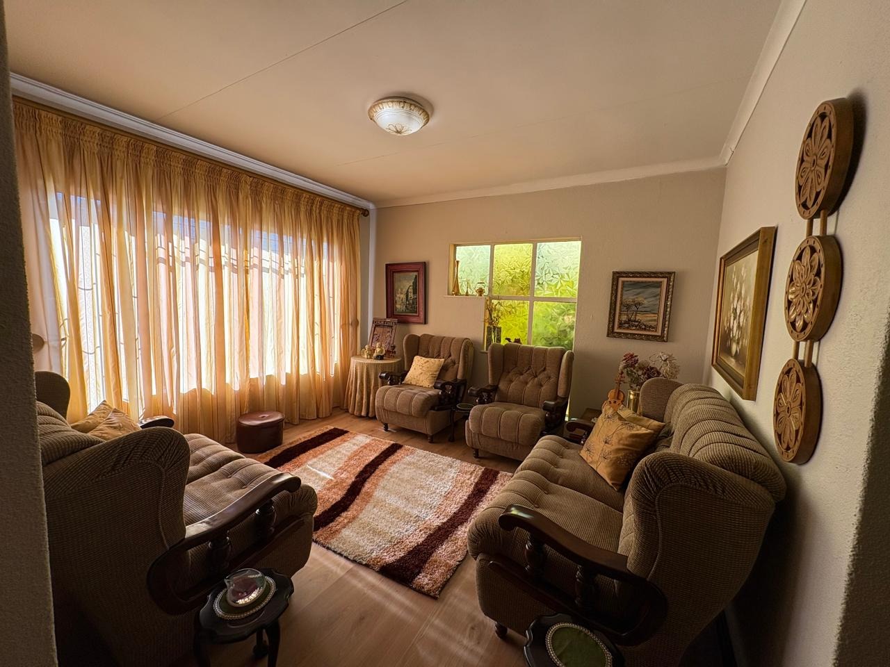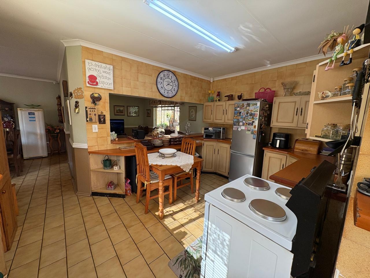 This well-maintained three-bedroom home is the perfect blend of comfort, space, and practicality. Each of the three spacious bedrooms is fitted with carpets, built-in cupboards, and curtain rails, providing a cozy and functional living environment for the entire family. The kitchen is neatly tiled and equipped with built-in cupboards, a gas geyser, and dedicated connections for both a washing machine and dishwasher, ensuring everyday convenience.