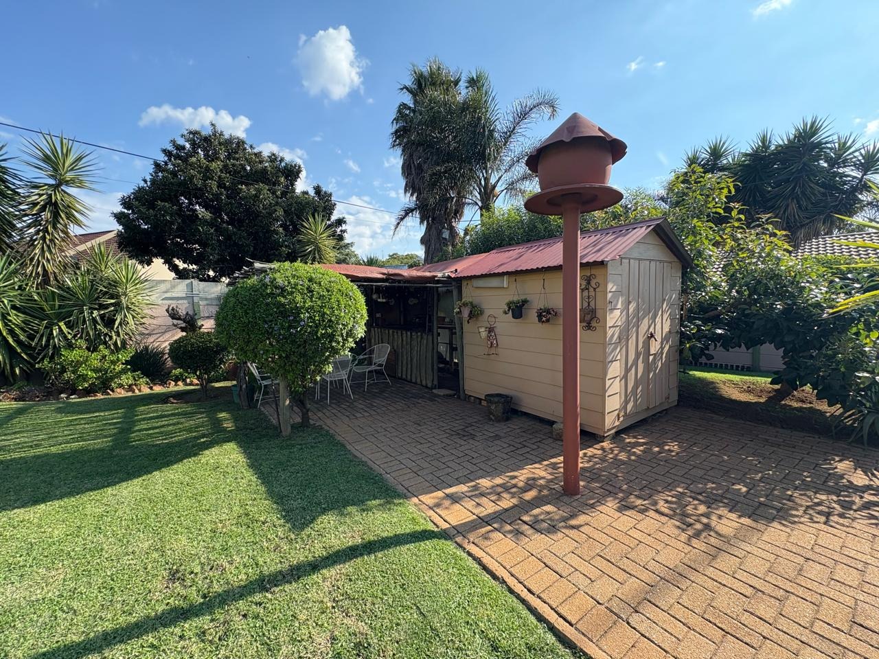 Outside, the property includes a versatile room that can be used as domestic quarters, complete with a toilet, basin, and shower. There's also a small entertainment area and a separate storage space, adding further functionality to the home. A double garage offers secure parking, while an alarm system and CCTV provide added security and peace of mind. To top it off, the home is equipped with three solar panels and batteries, offering energy efficiency and reduced utility costs. This property presents an excellent opportunity for comfortable, secure, and sustainable family living.