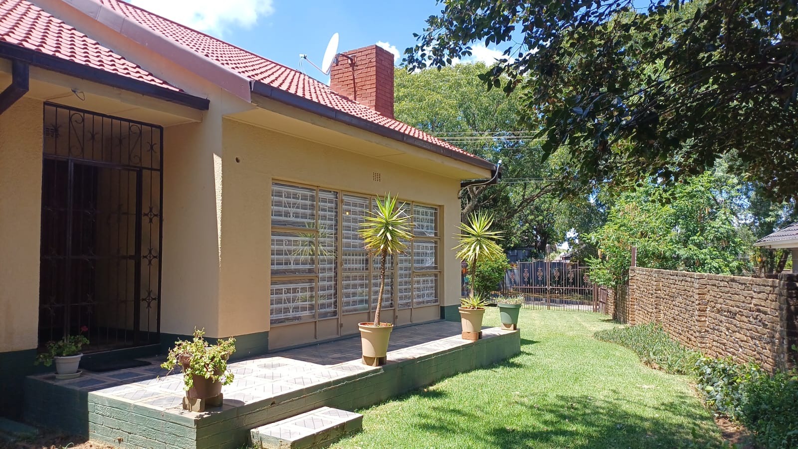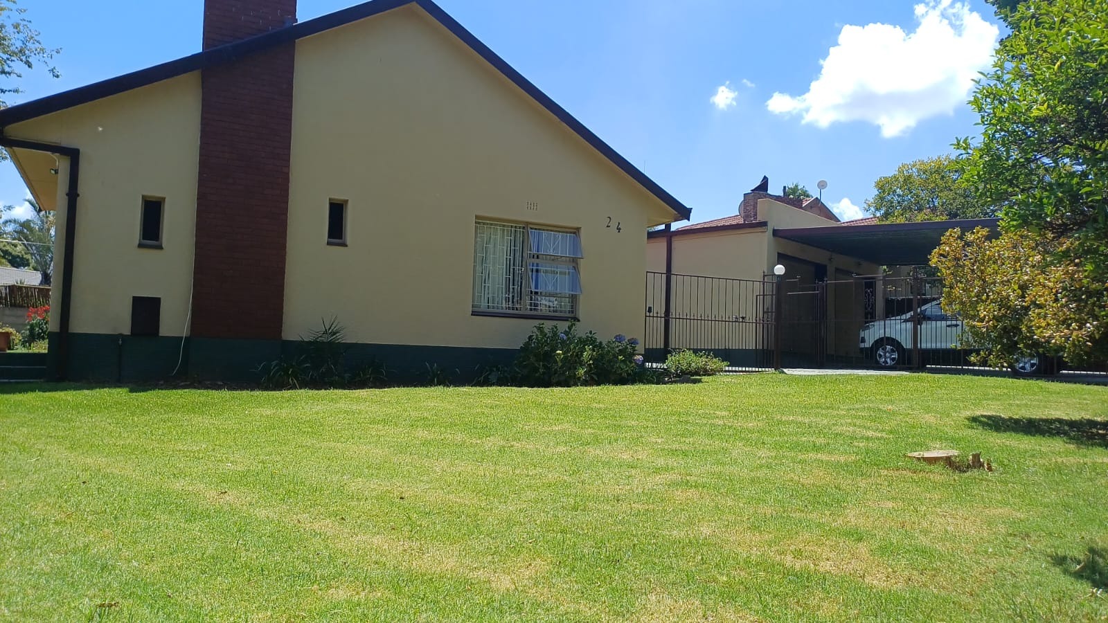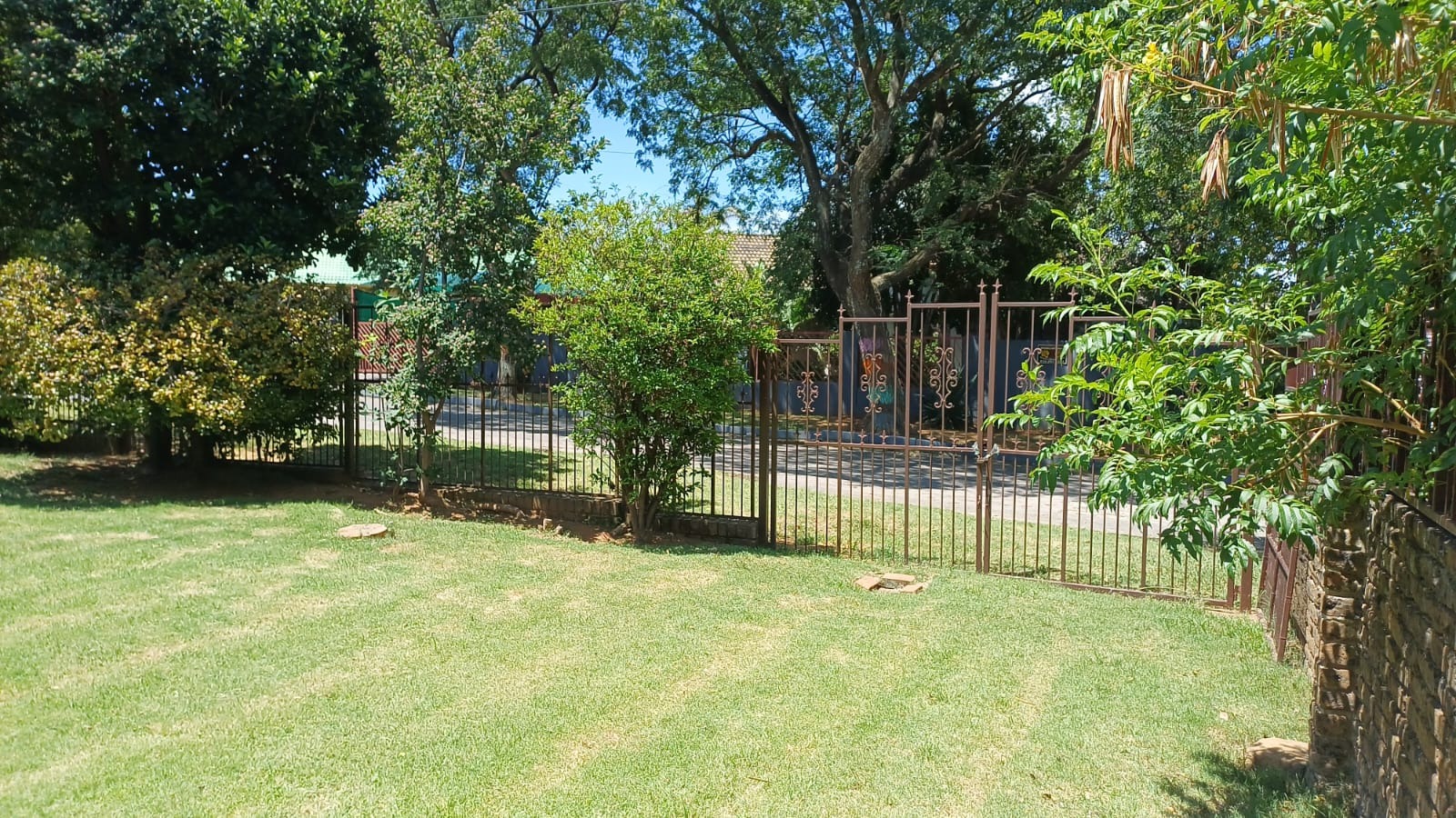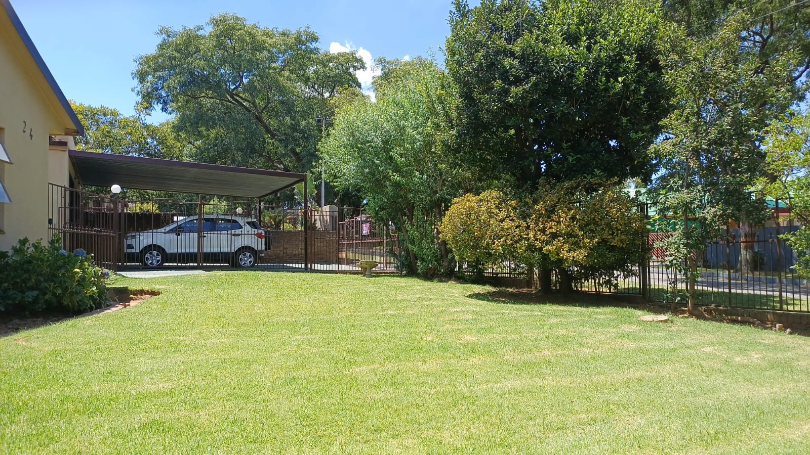 Discover this charming suburban home located in Greenhills, Randfontein, offering a blend of comfort and practicality. The property immediately impresses with its well-maintained exterior, featuring a large, manicured lawn and mature trees that provide natural shade and a serene environment. A covered double carport and two enclosed garages offer ample secure parking, complemented by a paved driveway and a secure fenced perimeter with an access gate, enhancing both curb appeal and safety.