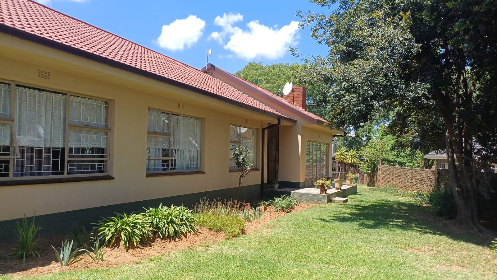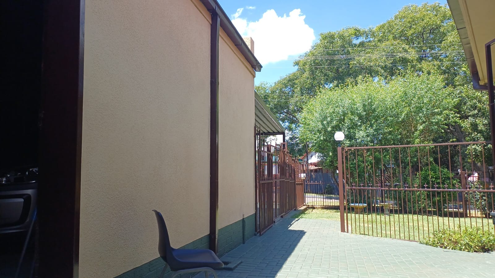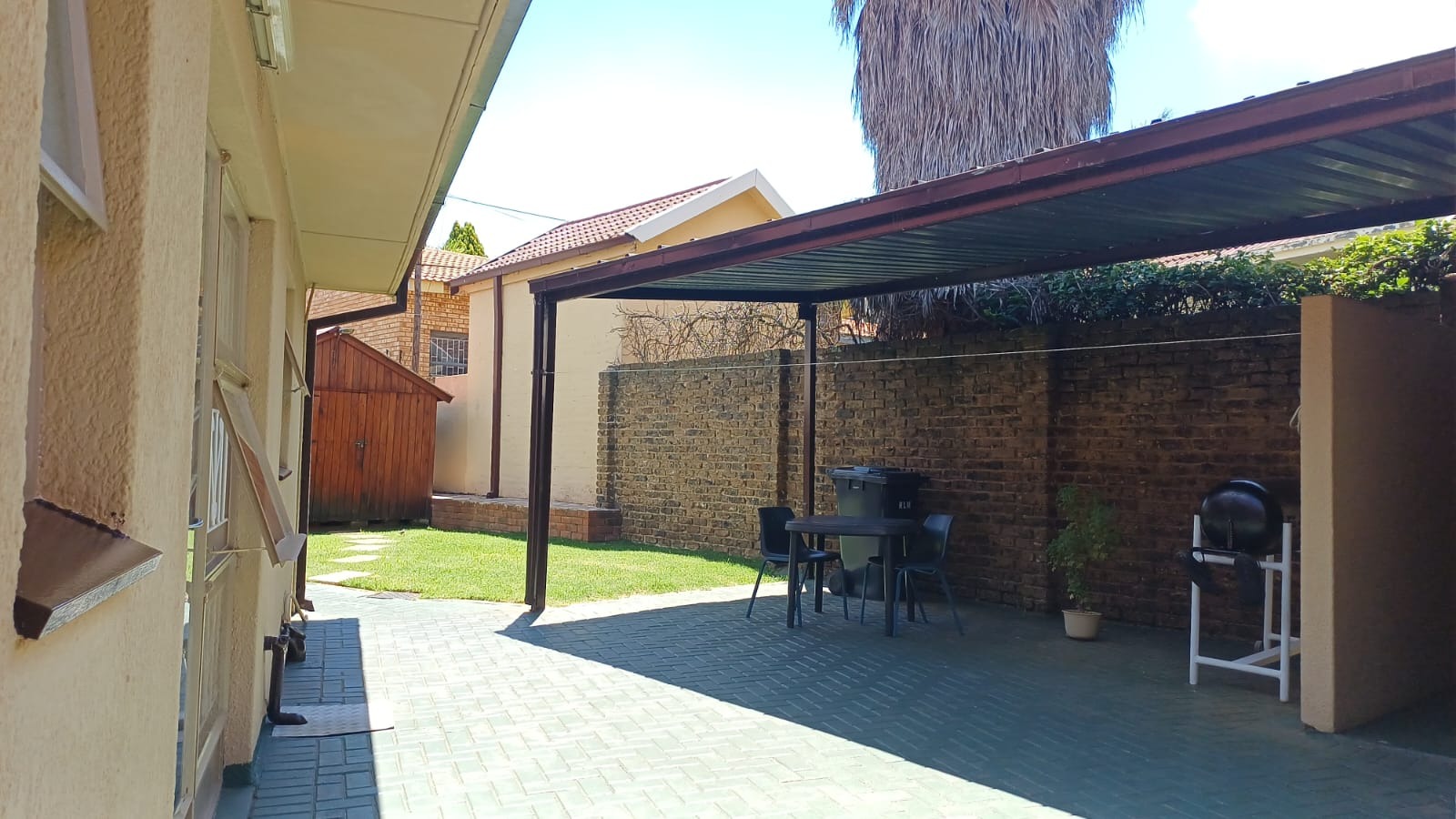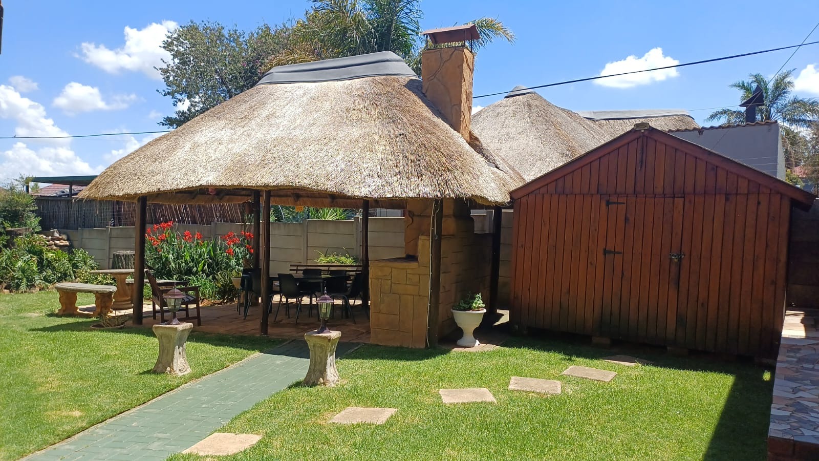Discover this charming suburban home located in Greenhills, Randfontein, offering a blend of comfort and practicality. The property immediately impresses with its well-maintained exterior, featuring a large, manicured lawn and mature trees that provide natural shade and a serene environment. A covered double carport and two enclosed garages offer ample secure parking, complemented by a paved driveway and a secure fenced perimeter with an access gate, enhancing both curb appeal and safety.