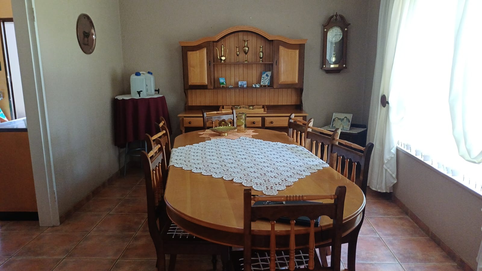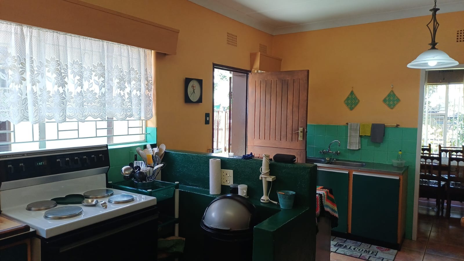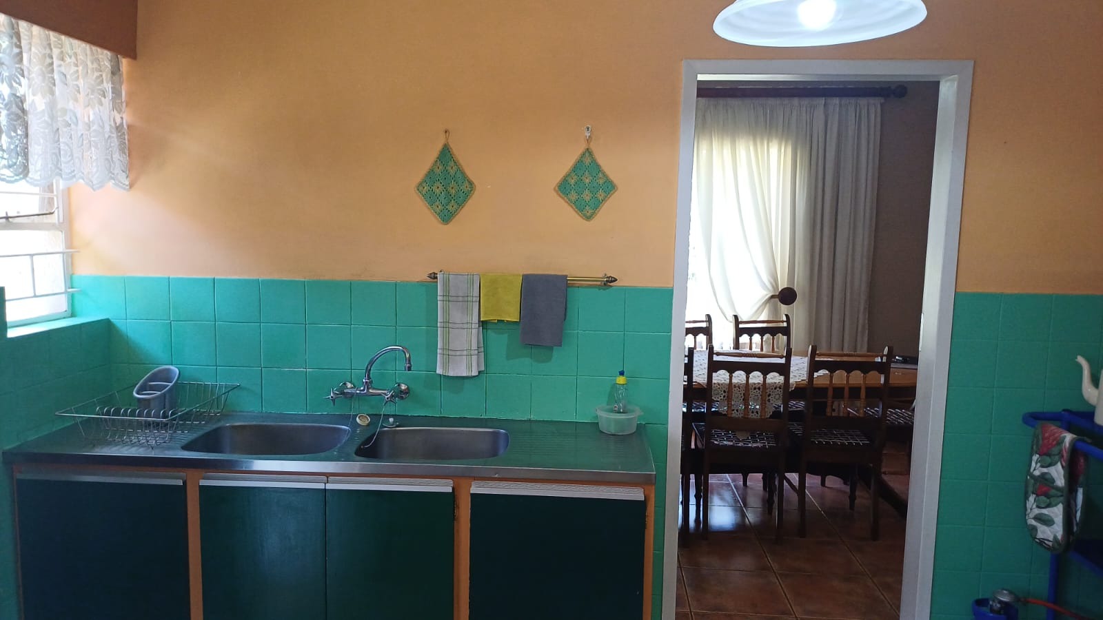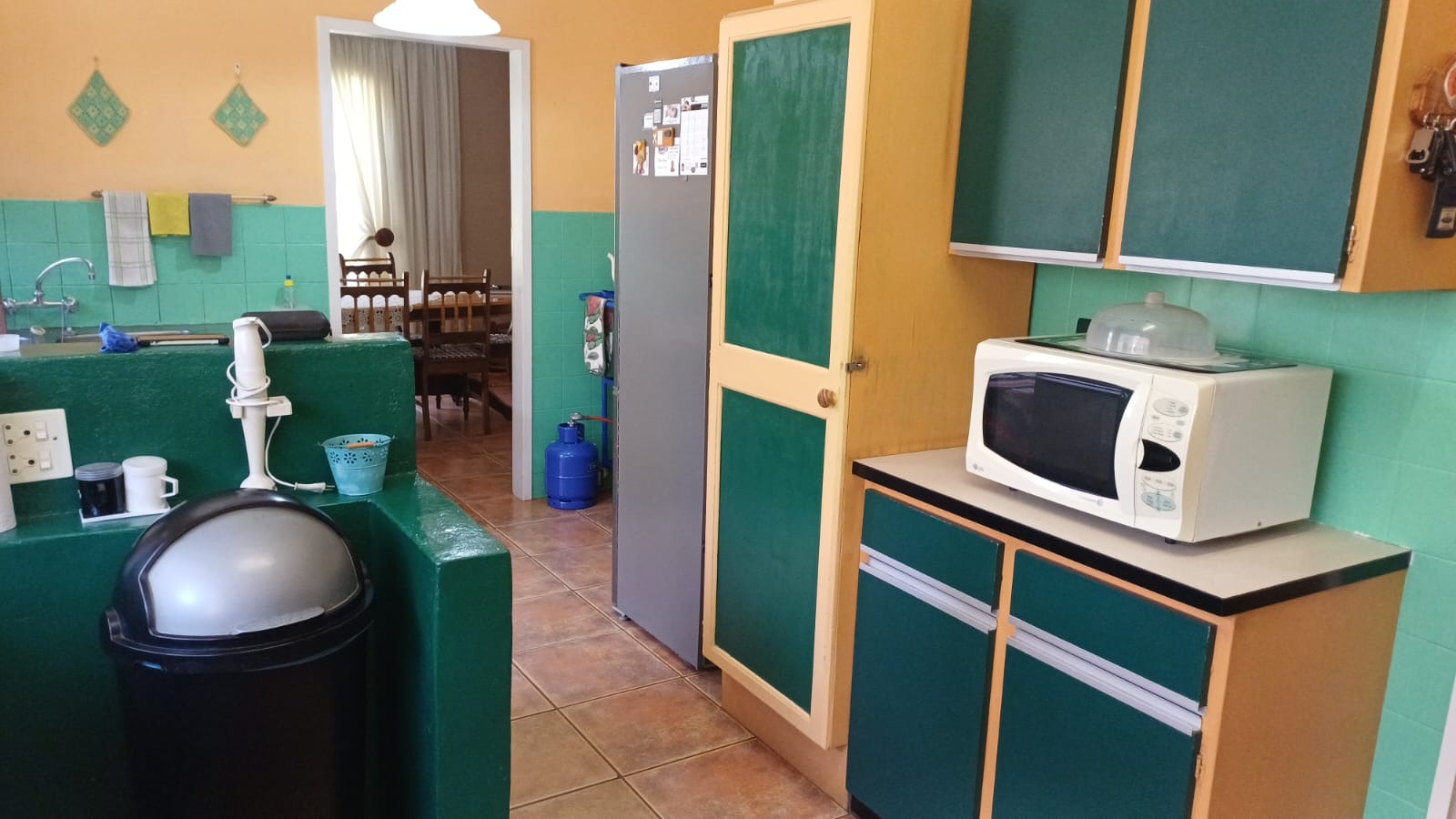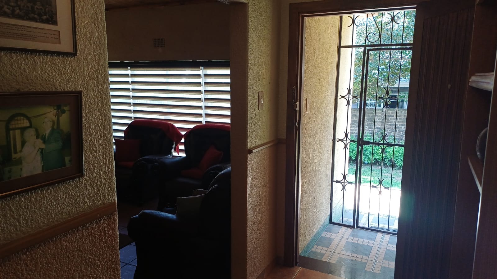 Discover this charming suburban home located in Greenhills, Randfontein, offering a blend of comfort and practicality. The property immediately impresses with its well-maintained exterior, featuring a large, manicured lawn and mature trees that provide natural shade and a serene environment. A covered double carport and two enclosed garages offer ample secure parking, complemented by a paved driveway and a secure fenced perimeter with an access gate, enhancing both curb appeal and safety.