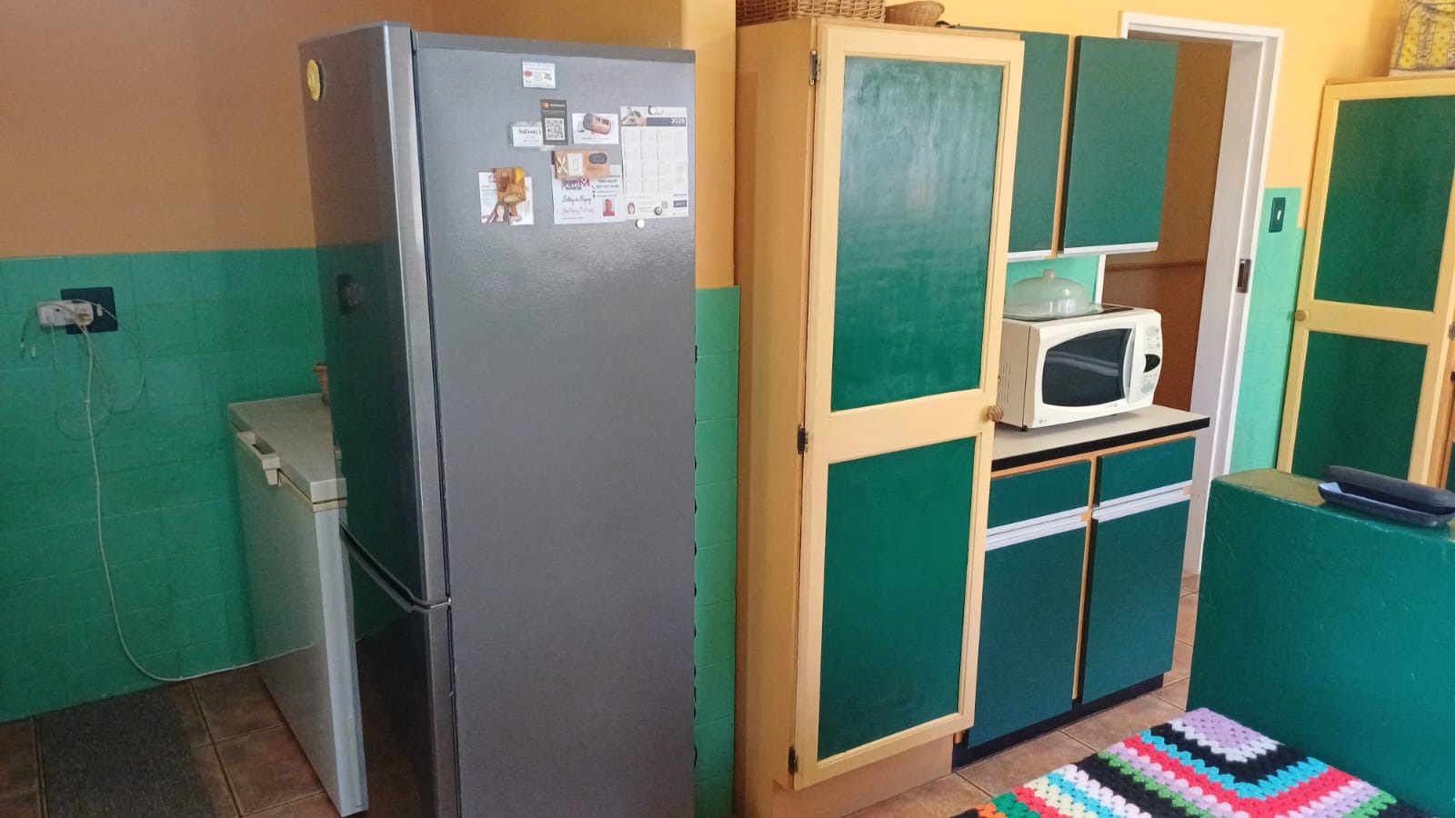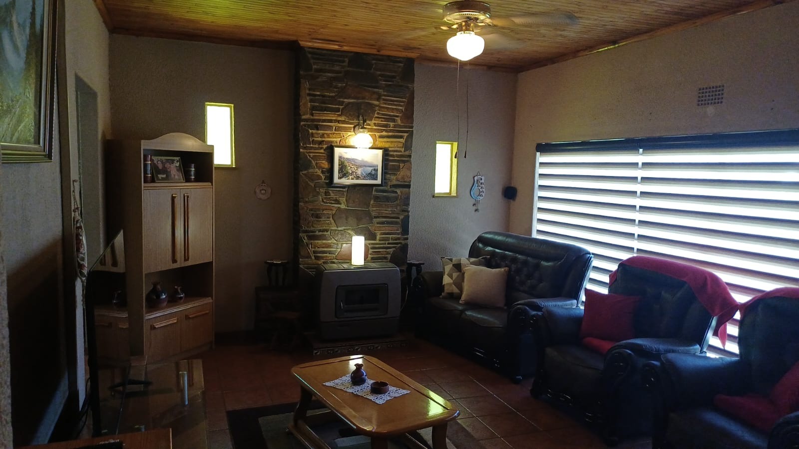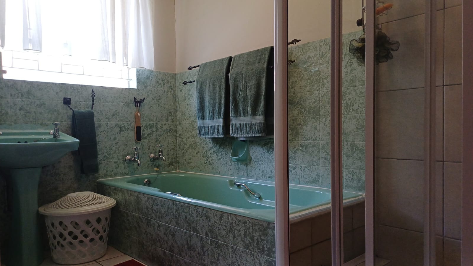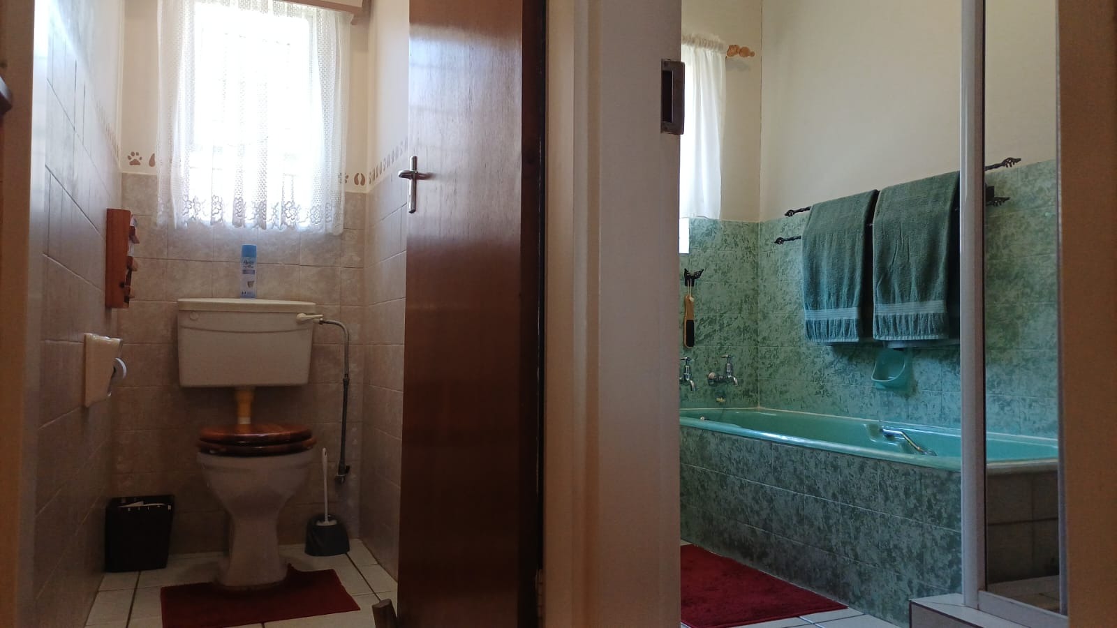 Discover this charming suburban home located in Greenhills, Randfontein, offering a blend of comfort and practicality. The property immediately impresses with its well-maintained exterior, featuring a large, manicured lawn and mature trees that provide natural shade and a serene environment. A covered double carport and two enclosed garages offer ample secure parking, complemented by a paved driveway and a secure fenced perimeter with an access gate, enhancing both curb appeal and safety.