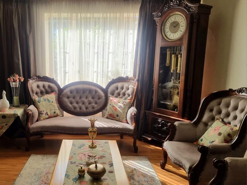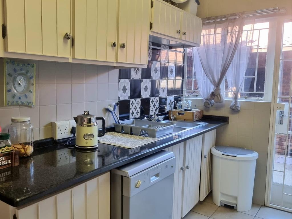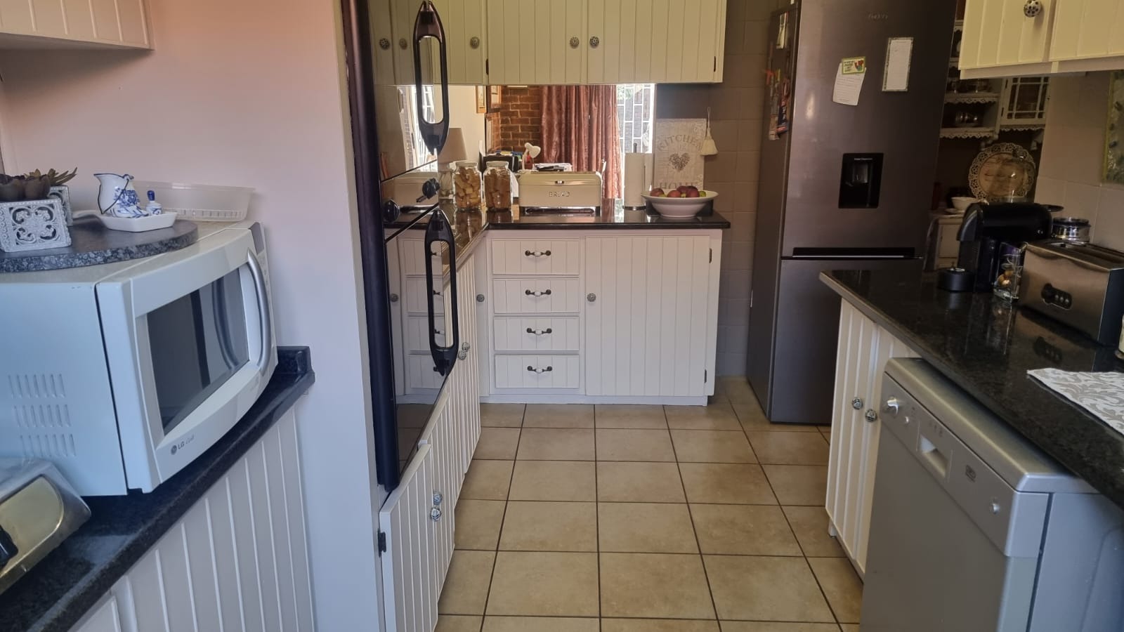 The kitchen has a beautifully modern design with lots of built-in cupboards, ridding you of any space problems you may have. A lovely eye level oven and stove is included in this culinary masterpiece with enough space for extra appliances. There is also a guest toilet and basin, therefore no need to run upstairs.
