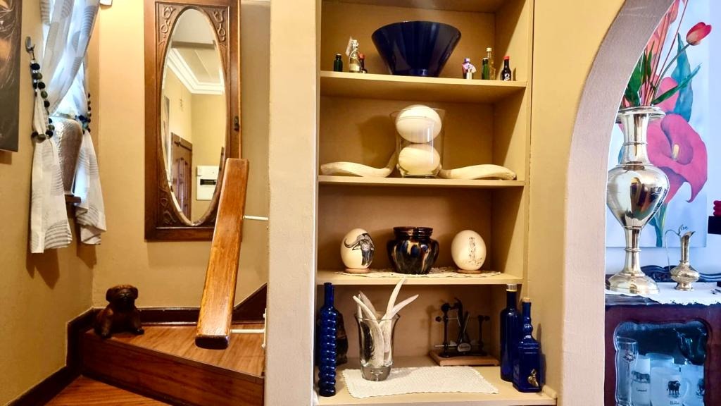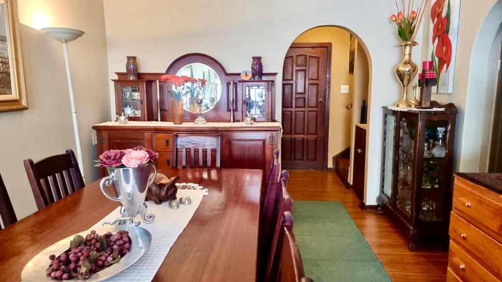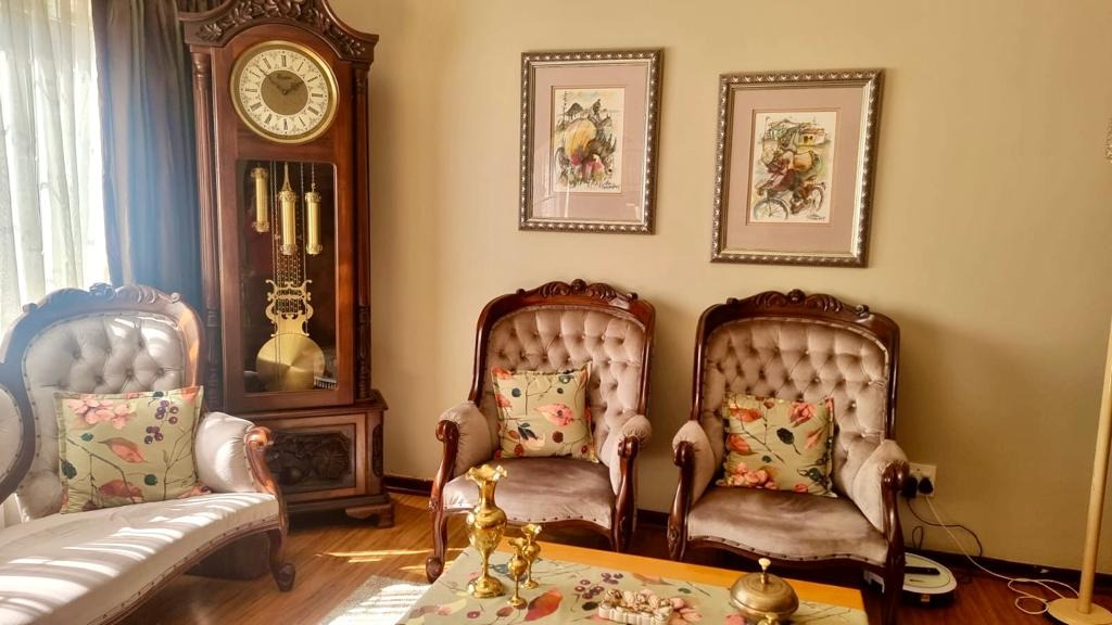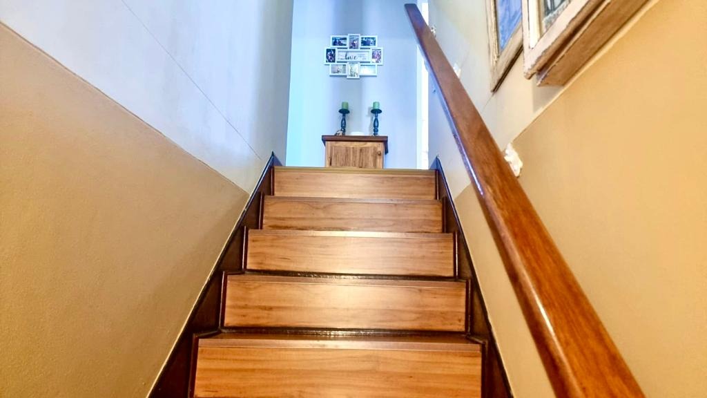 Upstairs you will find 3 spacious bedrooms, main bedroom with walk-in closet and en-suite bathroom. From this bedroom you can also go out onto the balcony where you can watch the beautiful sunsets. The second and third bedrooms also have built-in cupboards with neat carpets for warmth, sharing another bathroom.