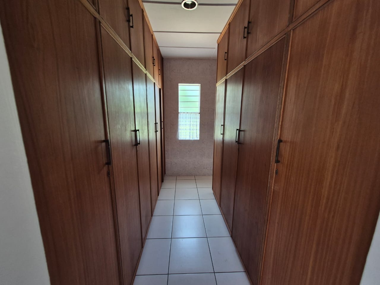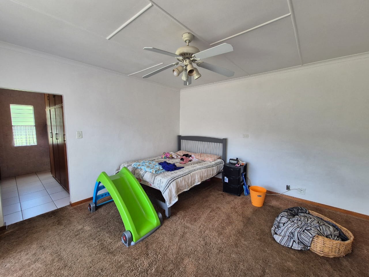 The residence comprises four well-proportioned bedrooms and two bathrooms, catering to family living. While specific details of each room are not shown, one room features a built-in wooden storage unit and a ceiling fan, adding to its functionality and comfort.