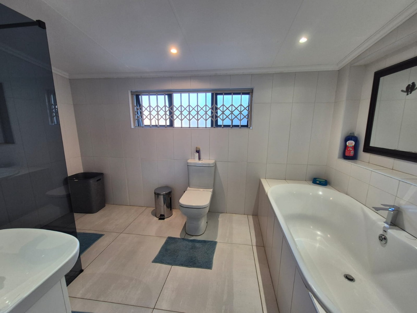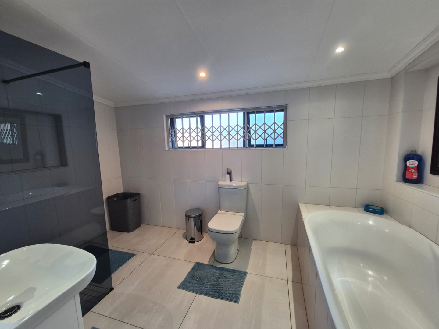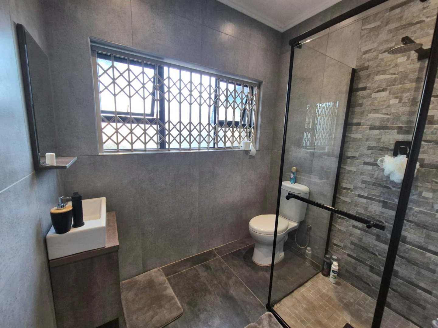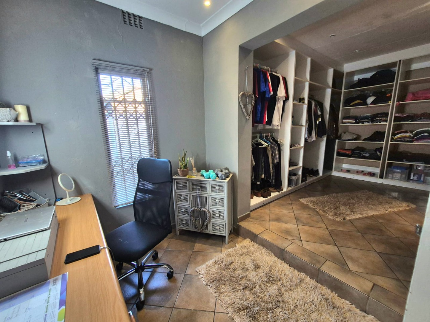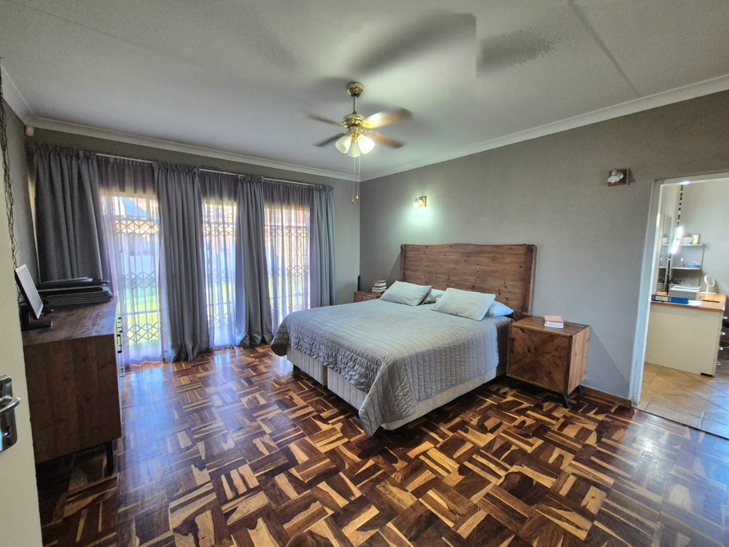 This modern family home in Greenhills, Randfontein, offers a spacious and contemporary living experience. The heart of the home features an inviting open-plan layout, seamlessly connecting the lounge, dining room, and a dedicated family/TV room. The stylish kitchen is a highlight, boasting dark cabinetry, light countertops, a large island with seating, and modern pendant lighting, all complemented by sleek tiled flooring. A convenient laundry area and a built-in bar enhance the functionality and entertainment potential of the interior. The residence comprises four comfortable bedrooms and 2.5 bathrooms, including a guest toilet, providing ample space for a growing family. Additionally, a dedicated study offers a quiet space for work or hobbies. Step outside to discover a private oasis designed for relaxation and entertainment. The property features a sparkling swimming pool, a lush green garden, and a dedicated children's play area, perfect for family enjoyment. An outdoor built-in braai area is ideal for social gatherings. Practical amenities include a double garage, domestic rooms, and outside toilets. Security is a priority, with comprehensive features such as an alarm system, access gate, electric fencing, CCTV, burglar bars, and a security gate, ensuring peace of mind for residents. This suburban property allows pets, adding to its family-friendly appeal. Key Features: * 4 Bedrooms, 2.5 Bathrooms * Modern Open-Plan Kitchen with Island * Spacious Lounge, Dining, and Family/TV Rooms * Private Swimming Pool & Lush Garden * Outdoor Built-in Braai Area * Double Garage * Comprehensive Security (Alarm, CCTV, Electric Fencing) * Dedicated Study * Domestic Rooms & Outside Toilets