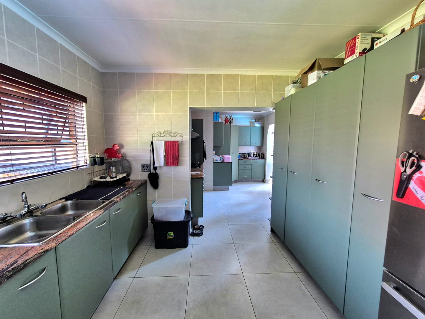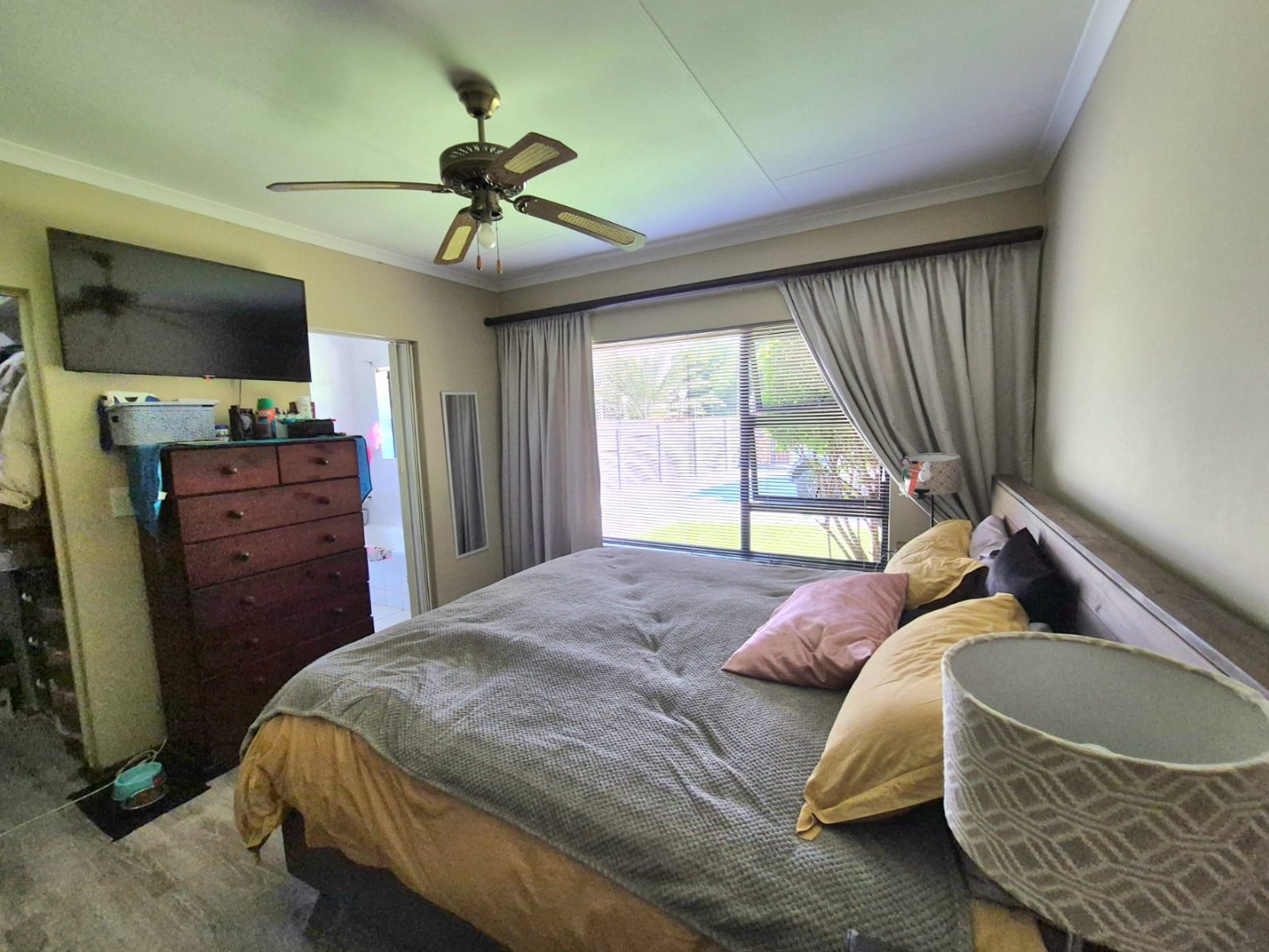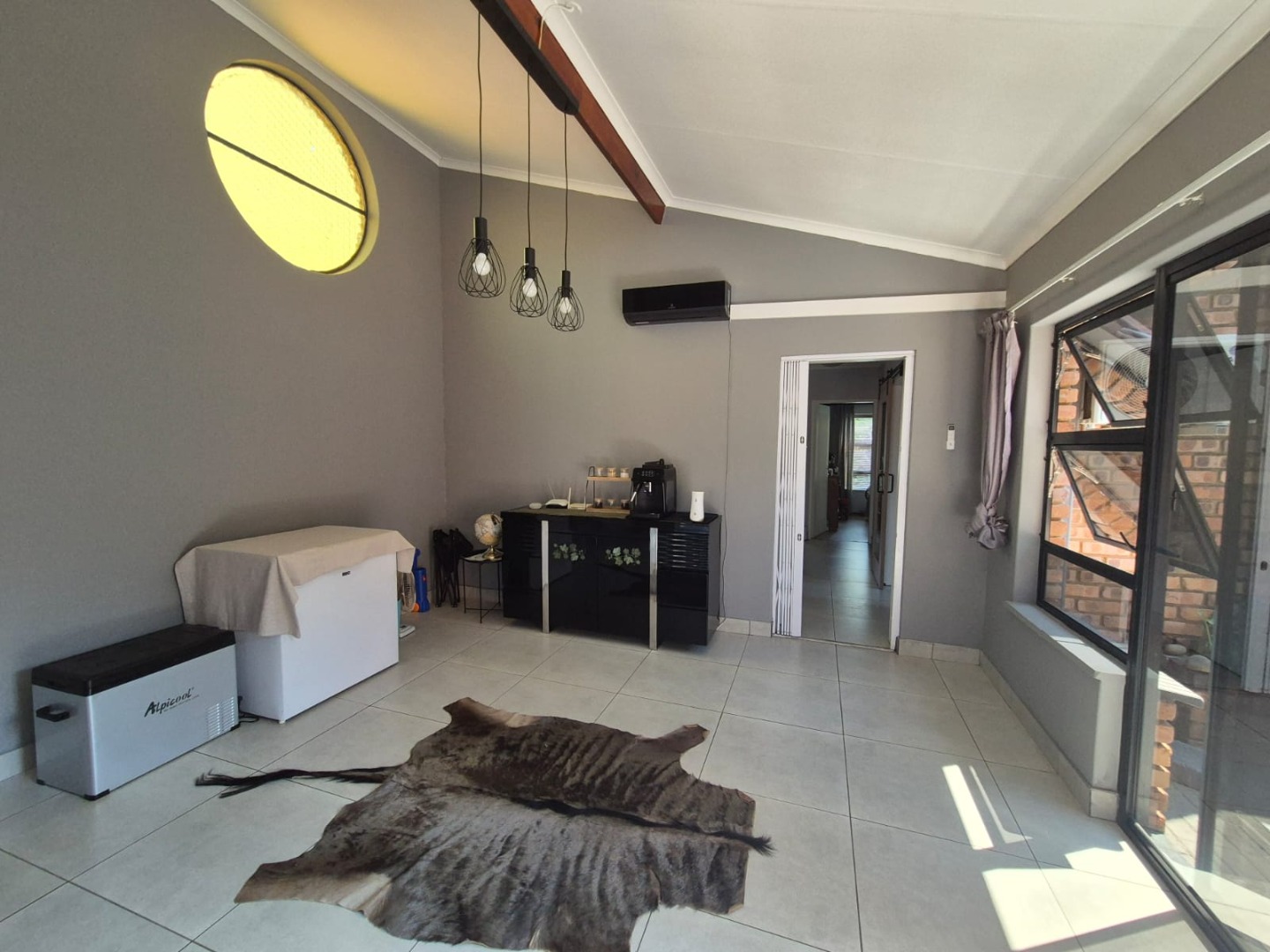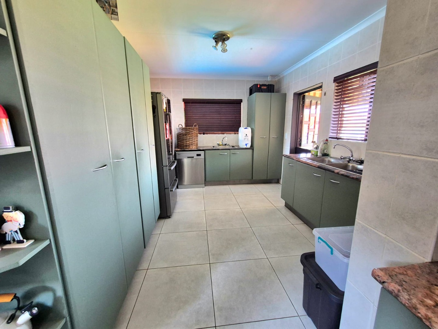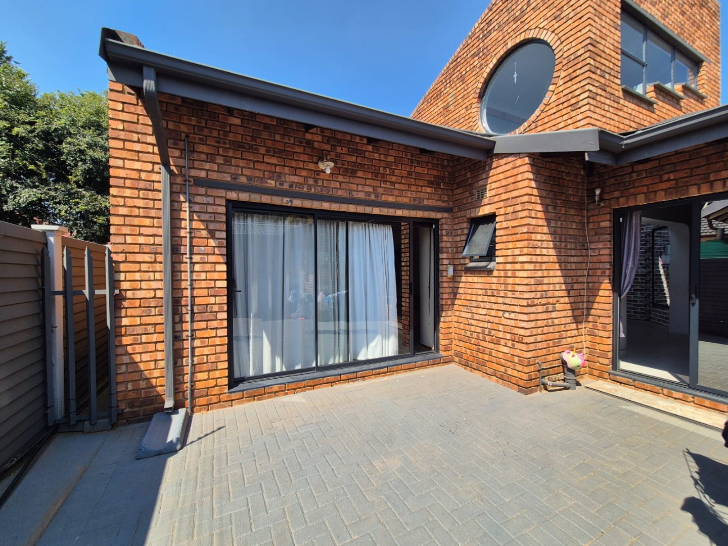Discover this spacious five-bedroom, four-bathroom residence nestled in the suburban heart of Greenhills, Randfontein. This property immediately impresses with its neat front lawn, paved driveway, and a double garage complemented by an additional carport, offering ample secure parking. The durable red brick exterior and security bars on windows provide a sense of robust kerb appeal and safety. Step inside to an expansive open-plan living and dining area, bathed in natural light from high ceilings and architectural windows. Distinctive whitewashed exposed brick arches and accent walls add character, creating a unique aesthetic. The main kitchen boasts modern dark green cabinetry and a granite-topped island, seamlessly flowing into a thatched outdoor entertainment area, perfect for hosting. A second, functional kitchen features extensive sage green cabinetry and built-in appliances, catering to all culinary needs. Beyond the interiors, the property offers an exceptional outdoor lifestyle. A large, clean swimming pool is surrounded by spacious brick paving, inviting relaxation and recreation. The thatched patio, visible from the living area, provides an ideal spot for al fresco dining, further enhanced by a built-in braai. The well-maintained garden benefits from an irrigation system, ensuring lush greenery year-round. Security is a priority, with features including an alarm system, electric fencing, an access gate, burglar bars, and security gates. For modern convenience and sustainability, the home is equipped with solar panels, fibre, and ADSL connectivity. This Greenhills home combines generous living spaces with excellent outdoor amenities and robust security, making it an ideal family haven. Key Features: * 5 Bedrooms, 4 Bathrooms * Double Garage & Carport * Open-Plan Living with High Ceilings * Modern Kitchen with Granite Island * Large Swimming Pool & Thatched Patio * Built-in Braai * Solar Panels & Fibre Connectivity * Alarm System & Electric Fencing * Erf Size: 1236 sqm, Floor Size: 380 sqm