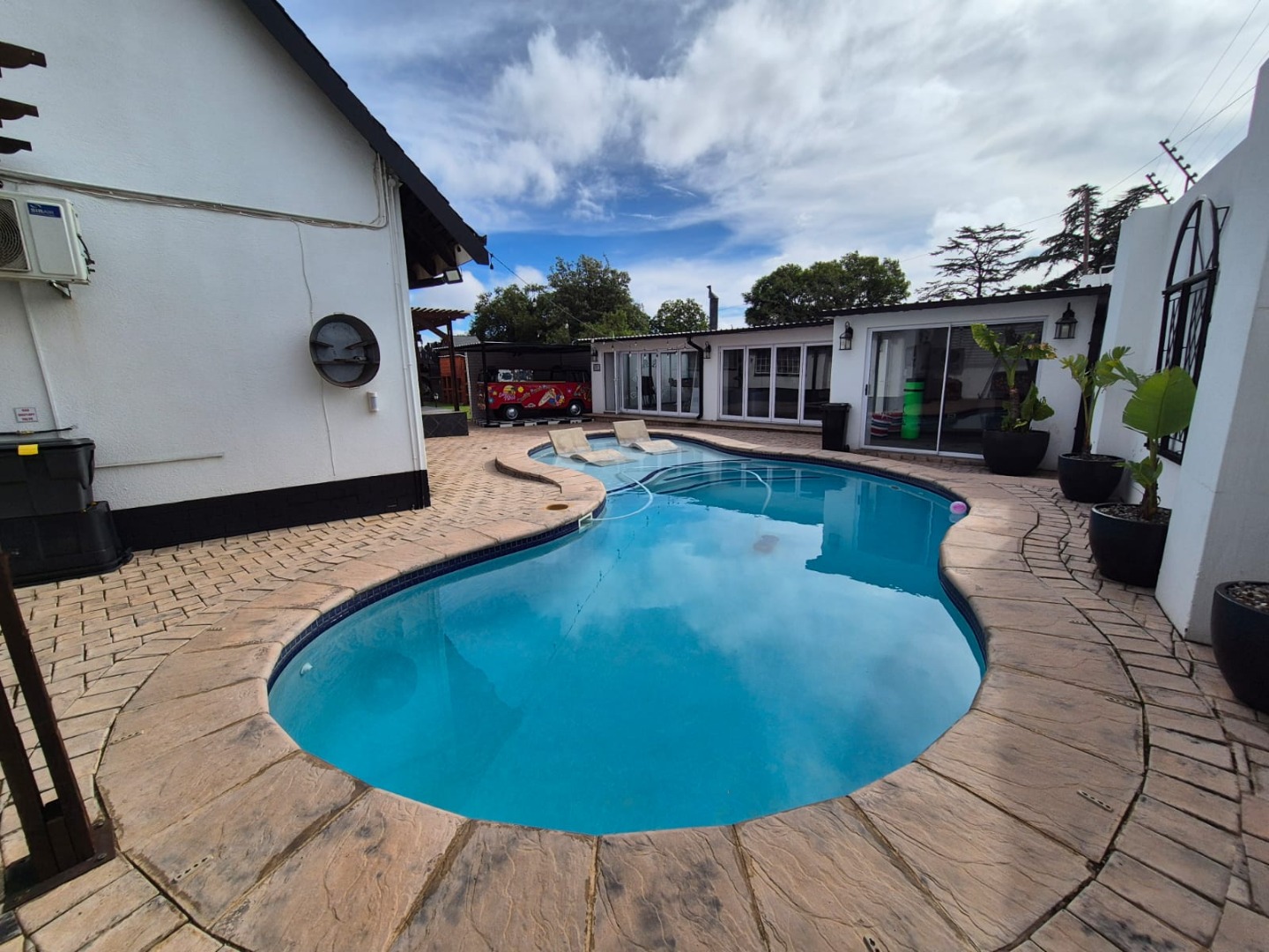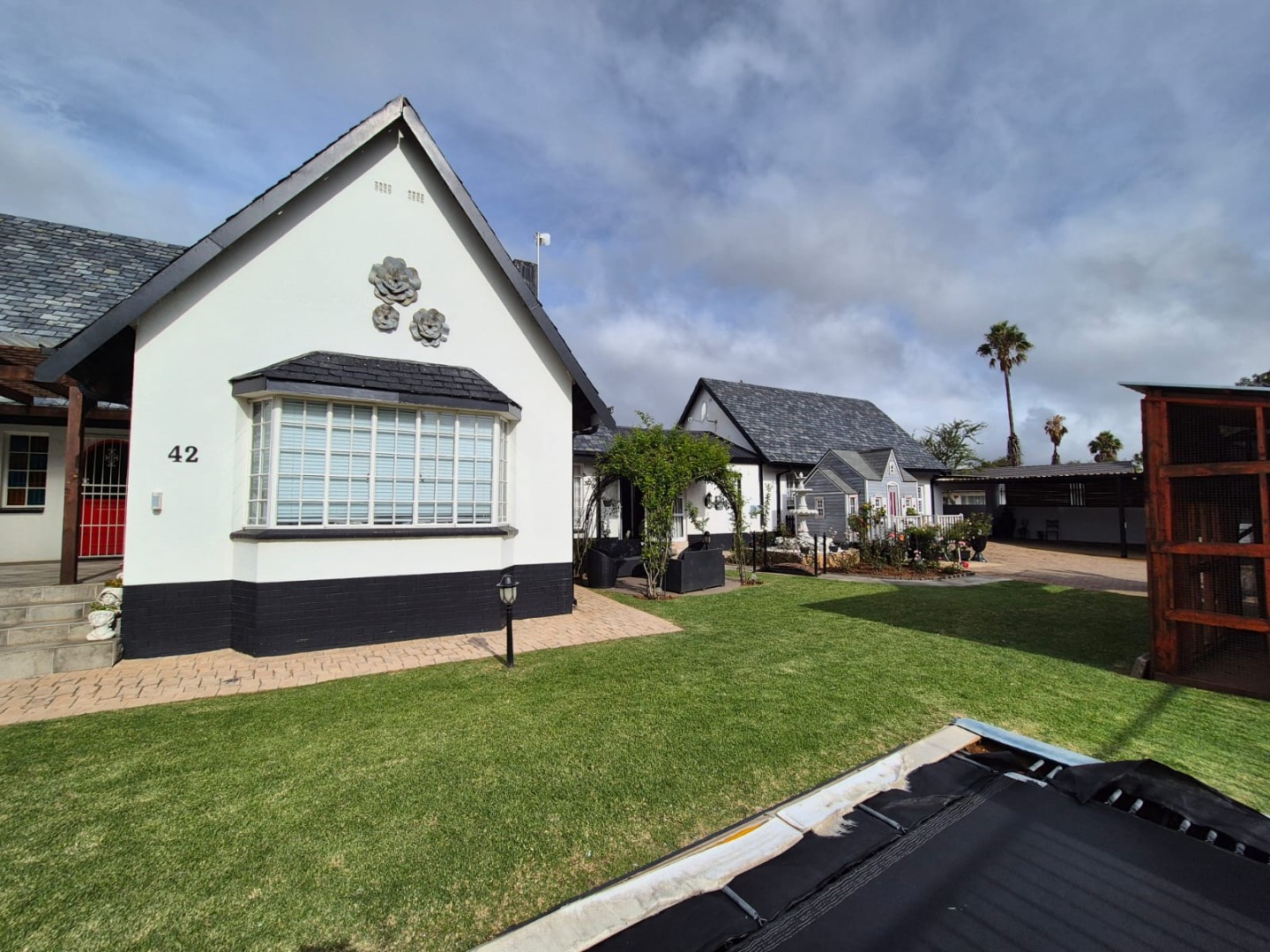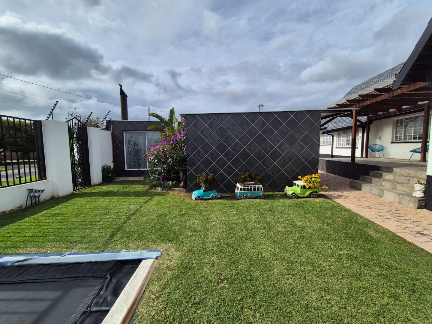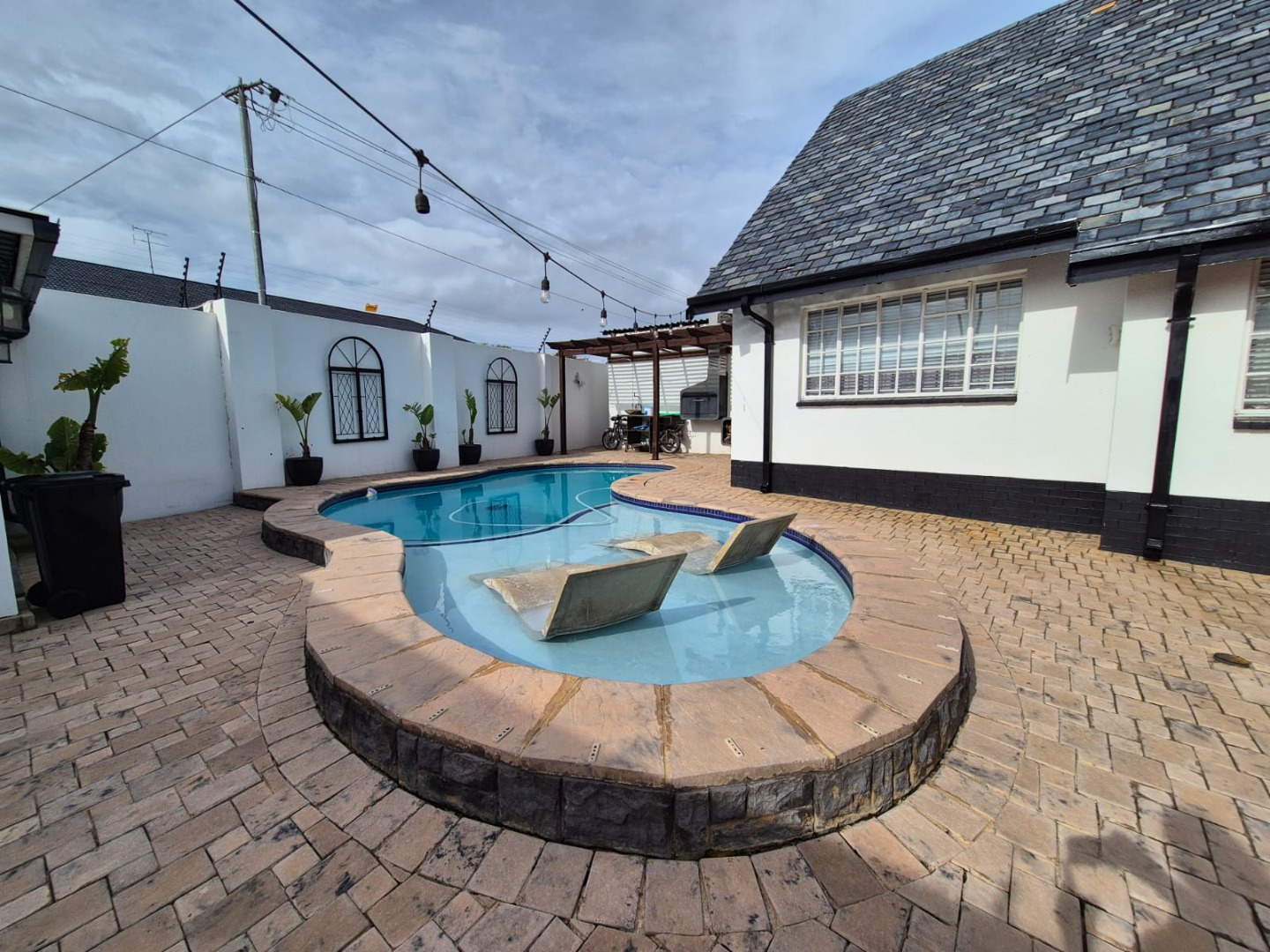 Discover this expansive family home situated on a generous 1518 sqm erf in the suburban heart of Greenhills, Randfontein. Boasting distinctive gabled architecture and a large paved courtyard, this property offers both character and ample space for comfortable living. The well-maintained lawn and charming garden, complete with a children's playhouse, create an inviting outdoor environment.