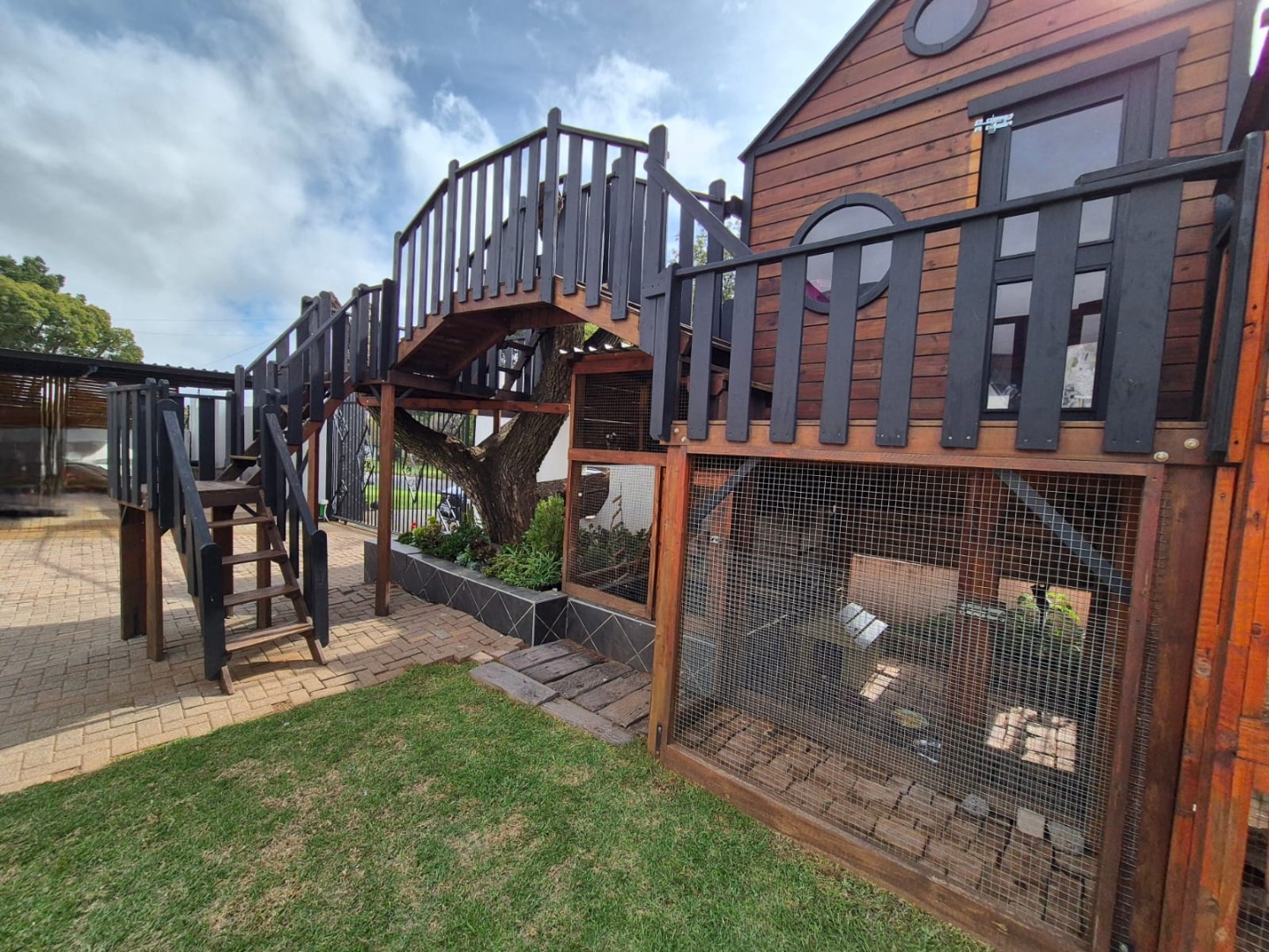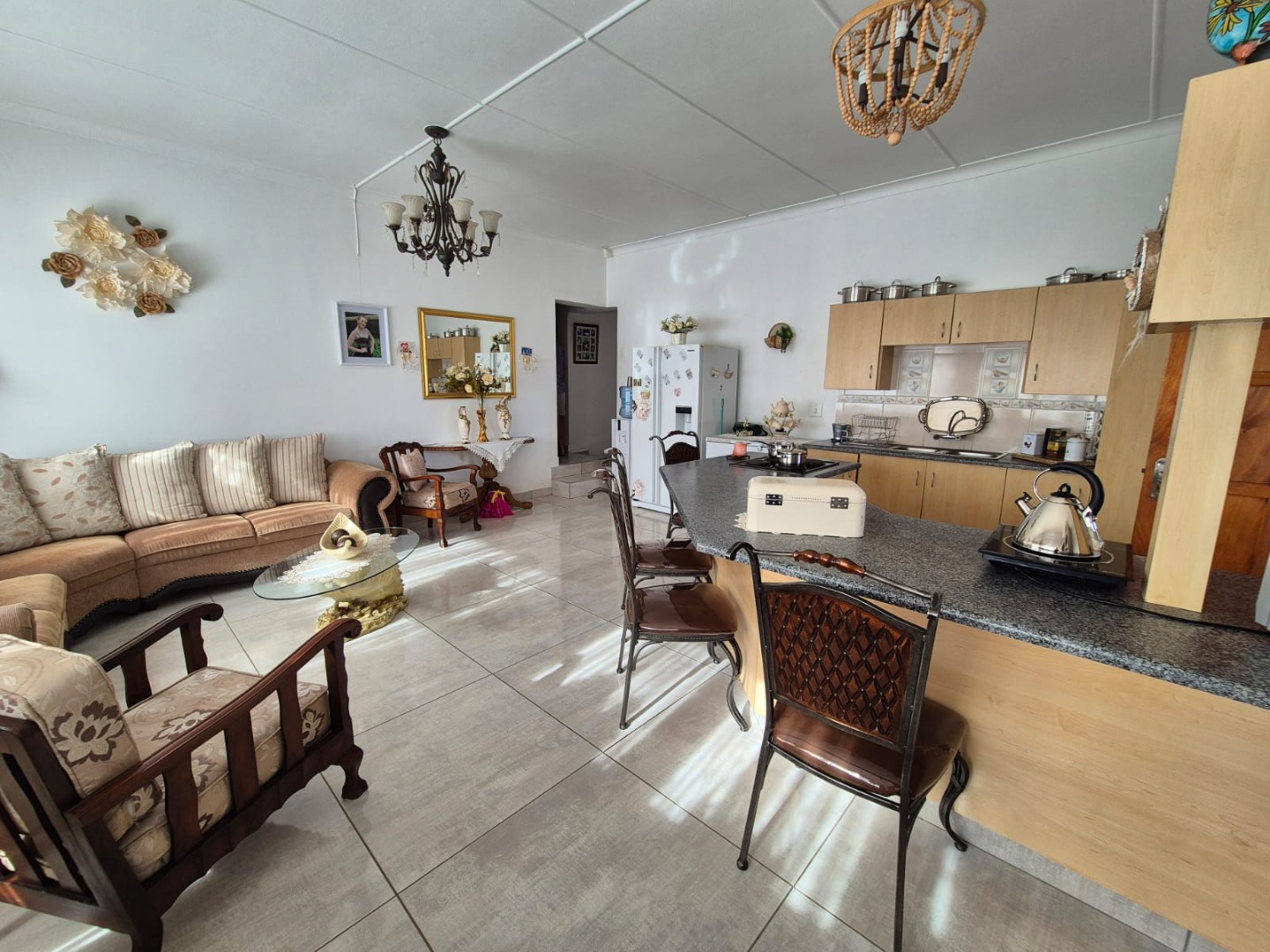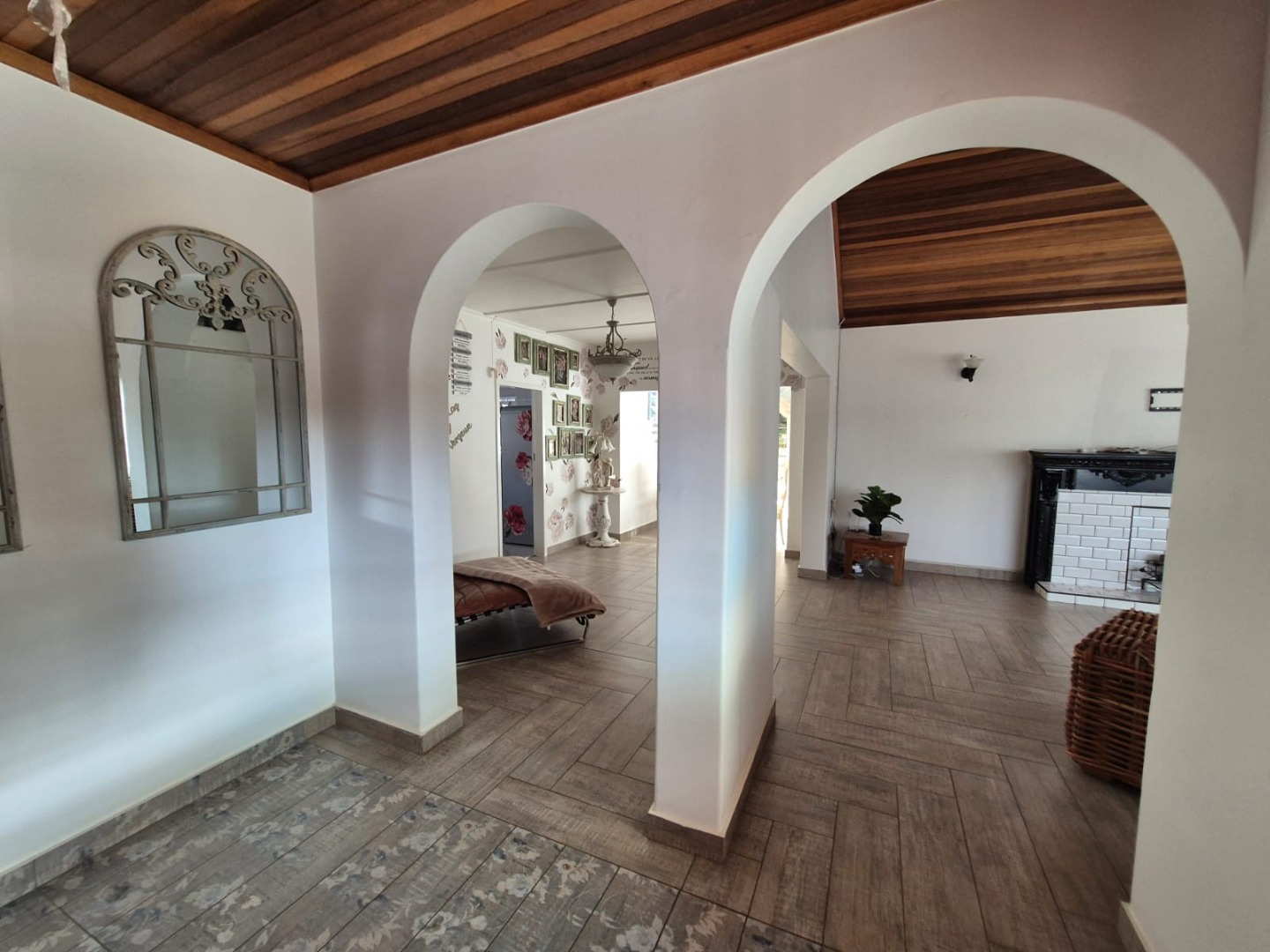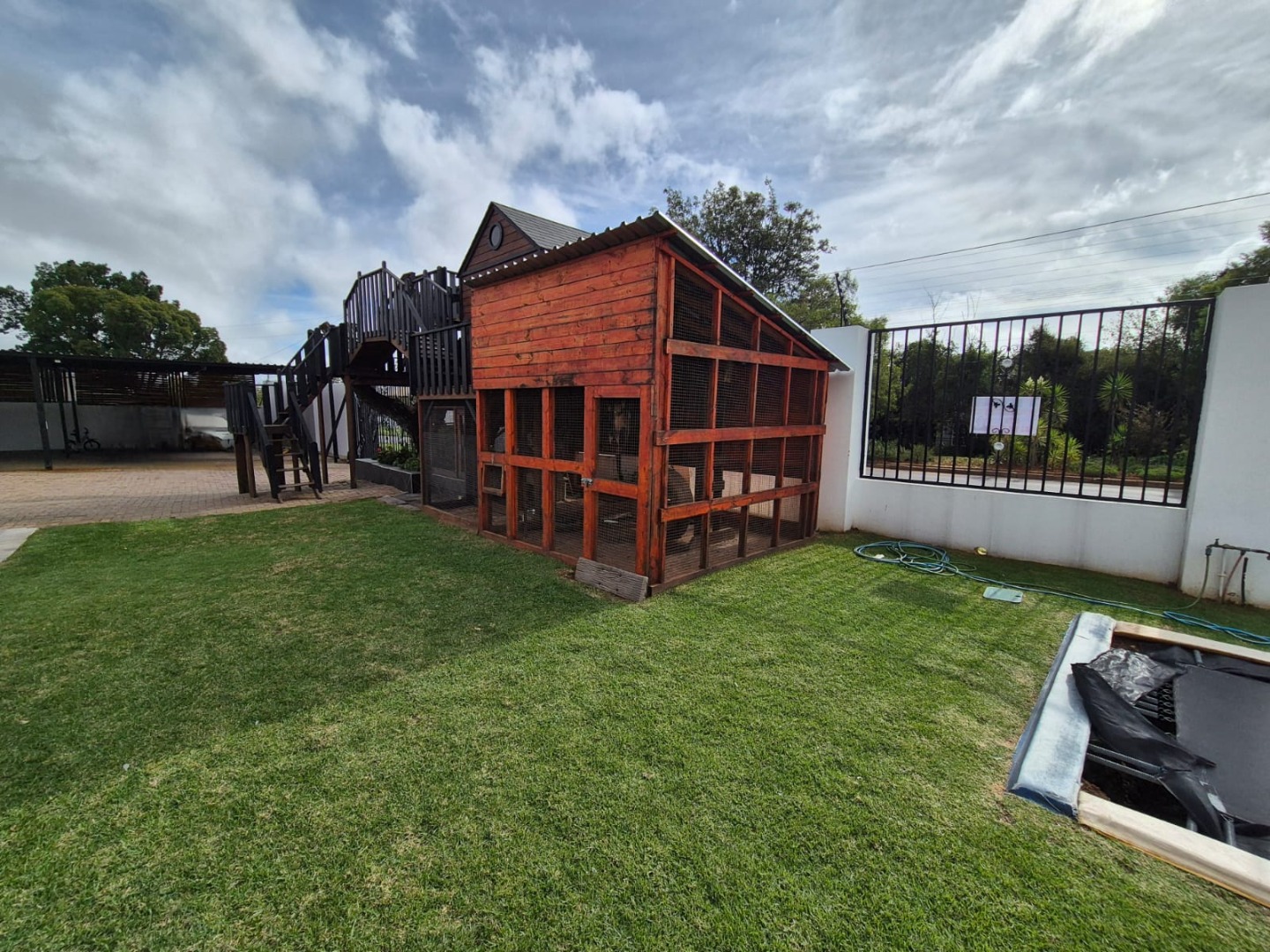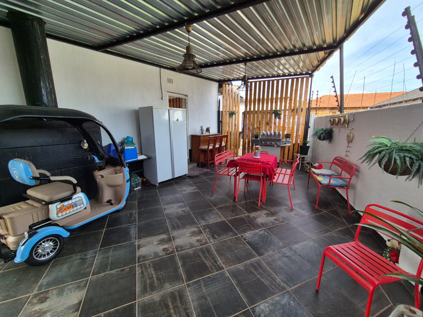 Discover this expansive family home situated on a generous 1518 sqm erf in the suburban heart of Greenhills, Randfontein. Boasting distinctive gabled architecture and a large paved courtyard, this property offers both character and ample space for comfortable living. The well-maintained lawn and charming garden, complete with a children's playhouse, create an inviting outdoor environment.